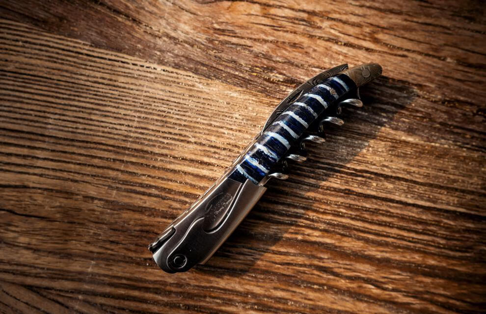 Ochiran alien meteorite French Laguiole wine knife seahorse knife Laguiole mammoth ancient ivory Damascus steel blue mammoth molar (mirror surface). Special bee.