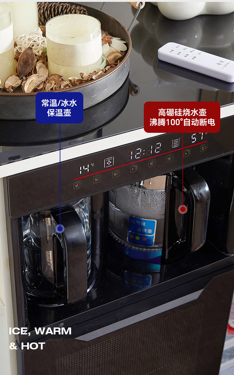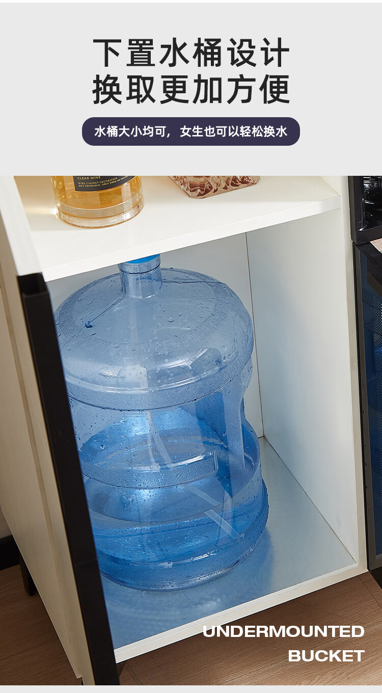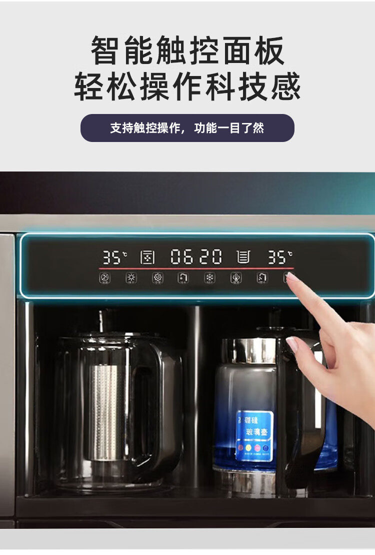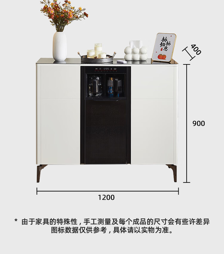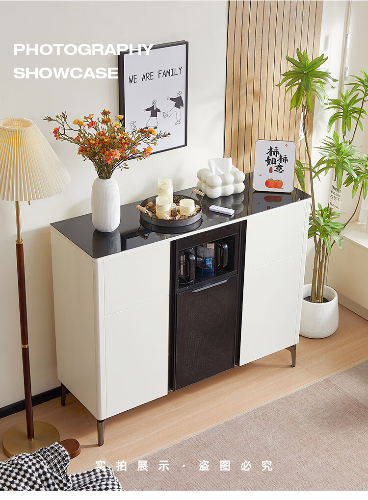 Smart tea bar machine with refrigerator integrated storage cabinet fully automatic sideboard water dispenser for living room and office with voice milk white hot and cold type three doors with refrigerator for disinfection 1170*400*970