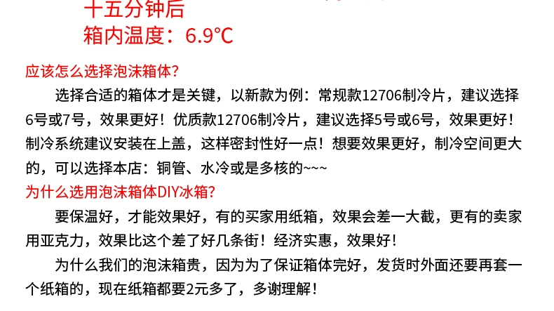 DZYJ semiconductor refrigeration chip kit 12v electronic refrigeration diy radiator small air conditioner refrigerator cooling module set (finished product) 12V single core refrigeration set upgraded version (complete set with foam box)