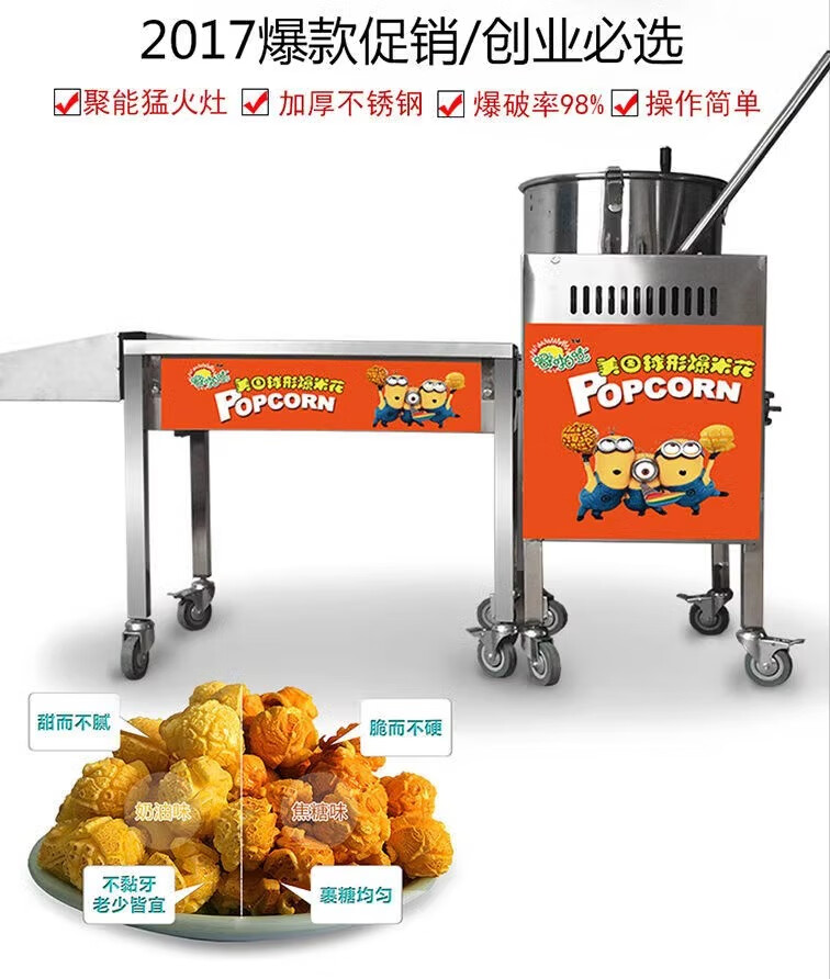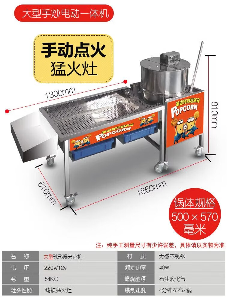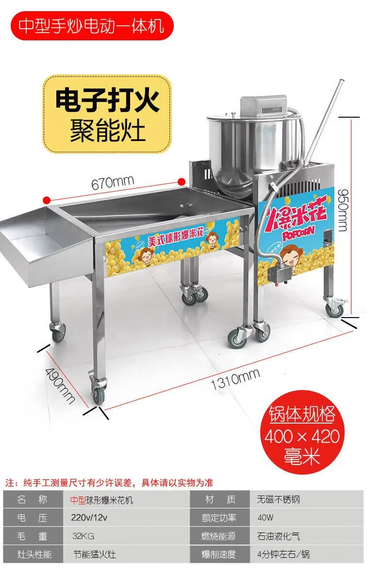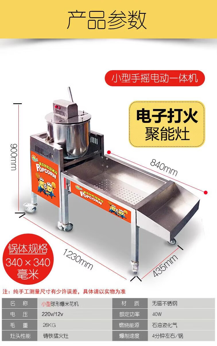 Dekebang's new American-style spherical gas large popcorn machine pot commercial fully automatic electric hand-cranked gas stall stainless steel large electric and hand-cranked dual-purpose spherical popcorn machine (without stepless speed regulation)