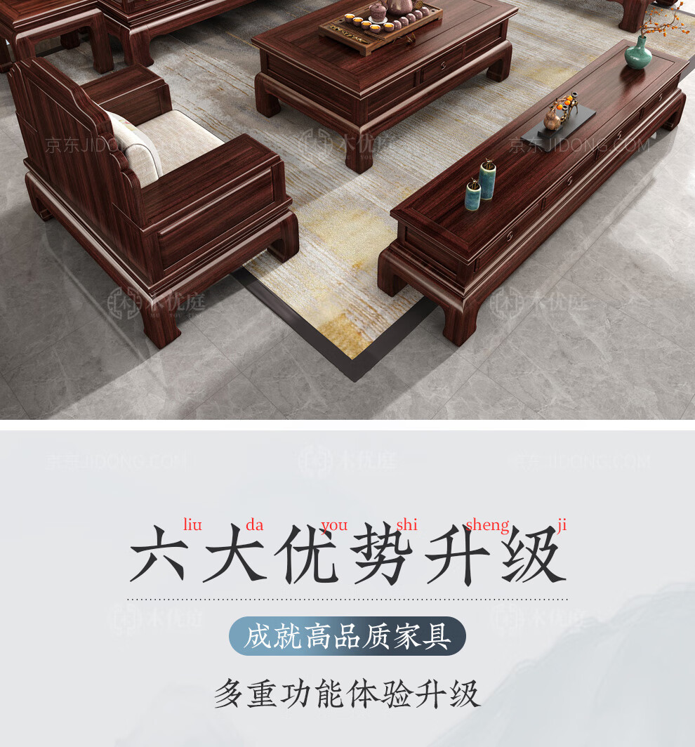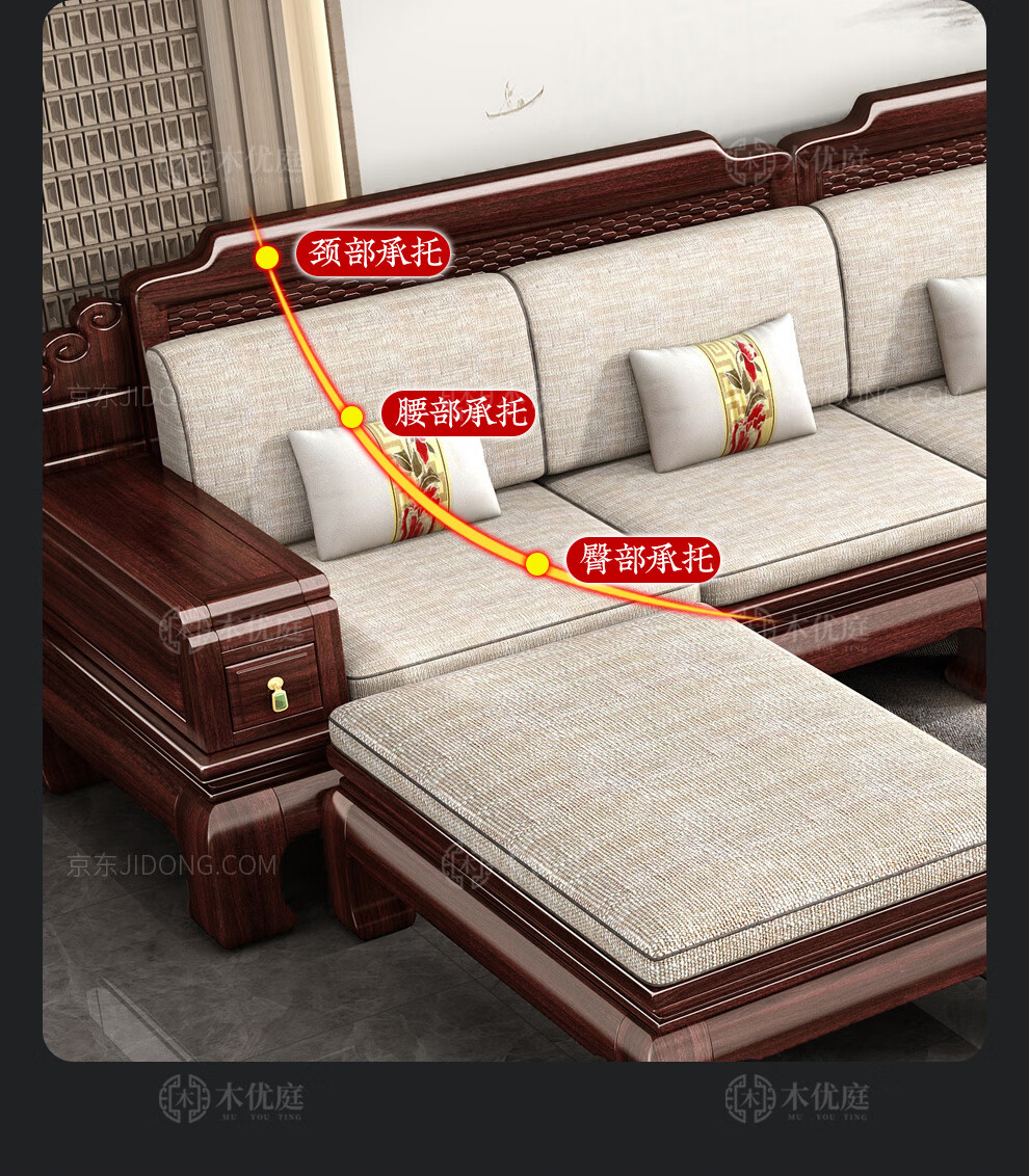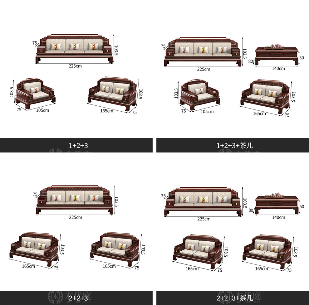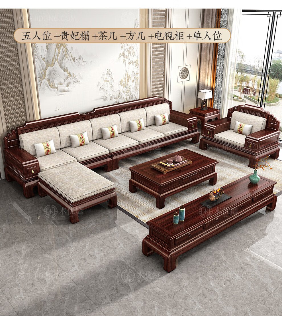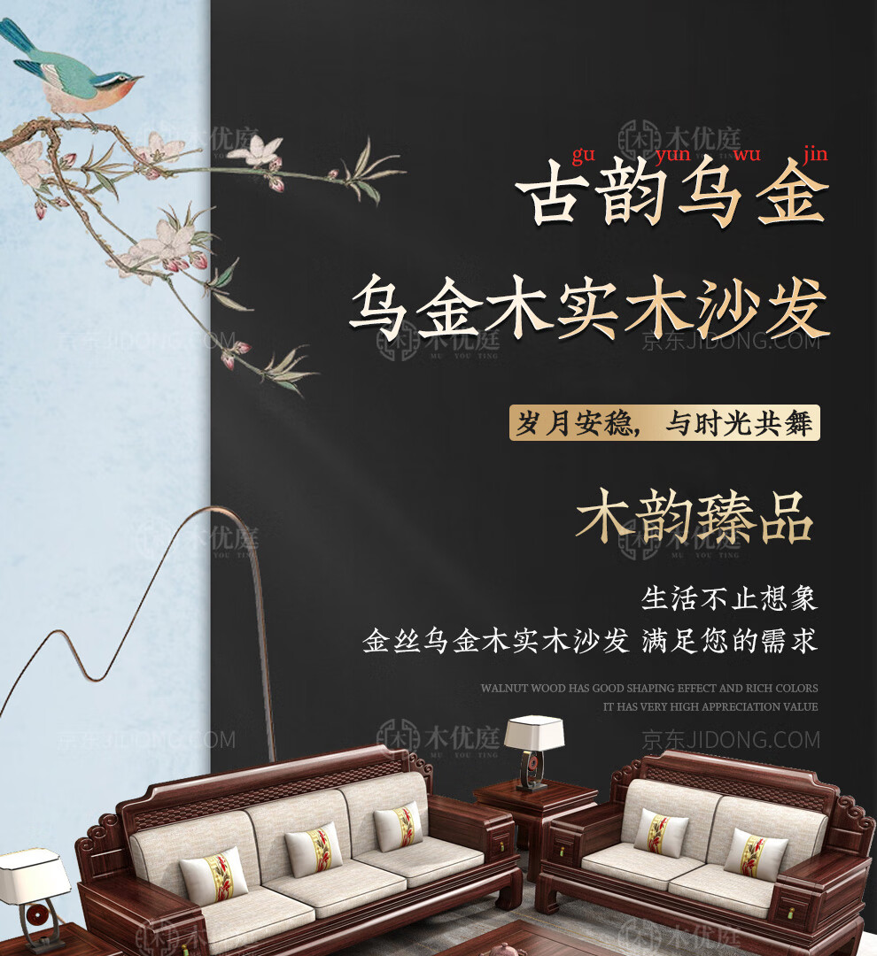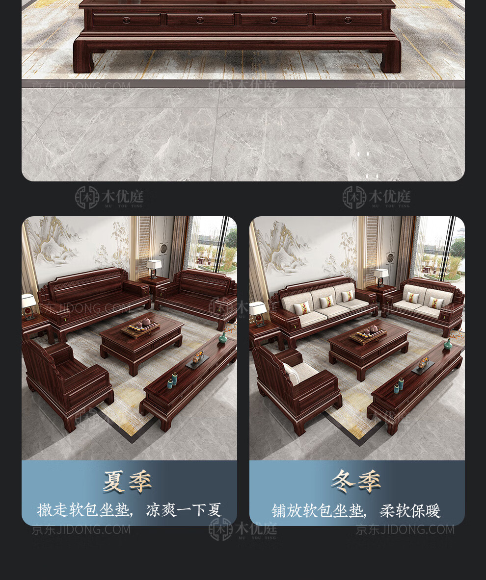 Muyouting Wujin wood new Chinese style all solid wood sofa living room winter and summer dual use simple log sofa small apartment combination set 1+2+3+ coffee table