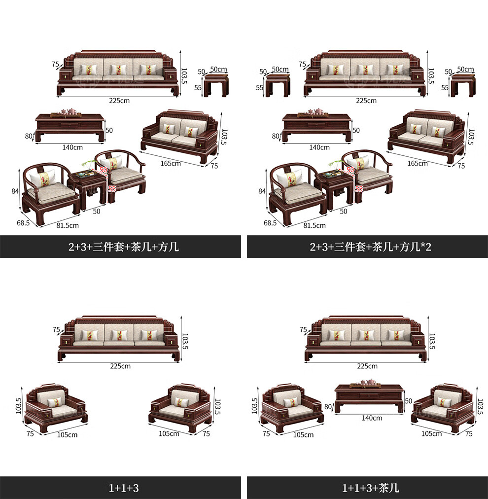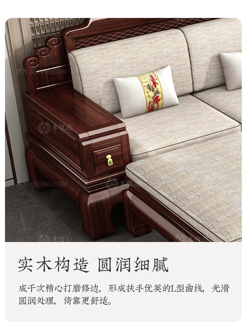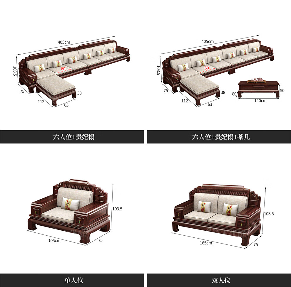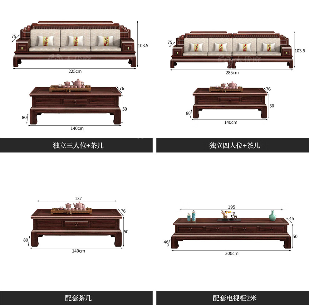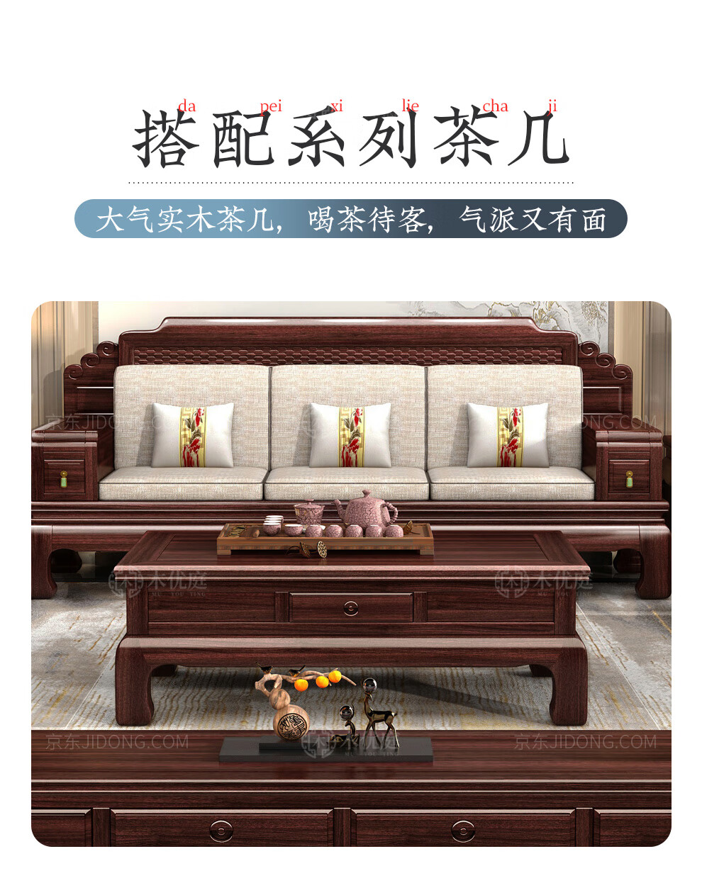 Muyouting Wujin wood new Chinese style all solid wood sofa living room winter and summer dual use simple log sofa small apartment combination set 1+2+3+ coffee table