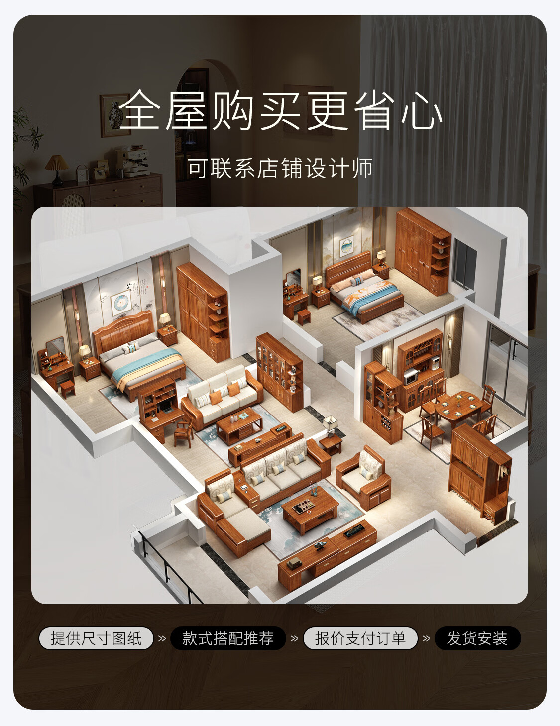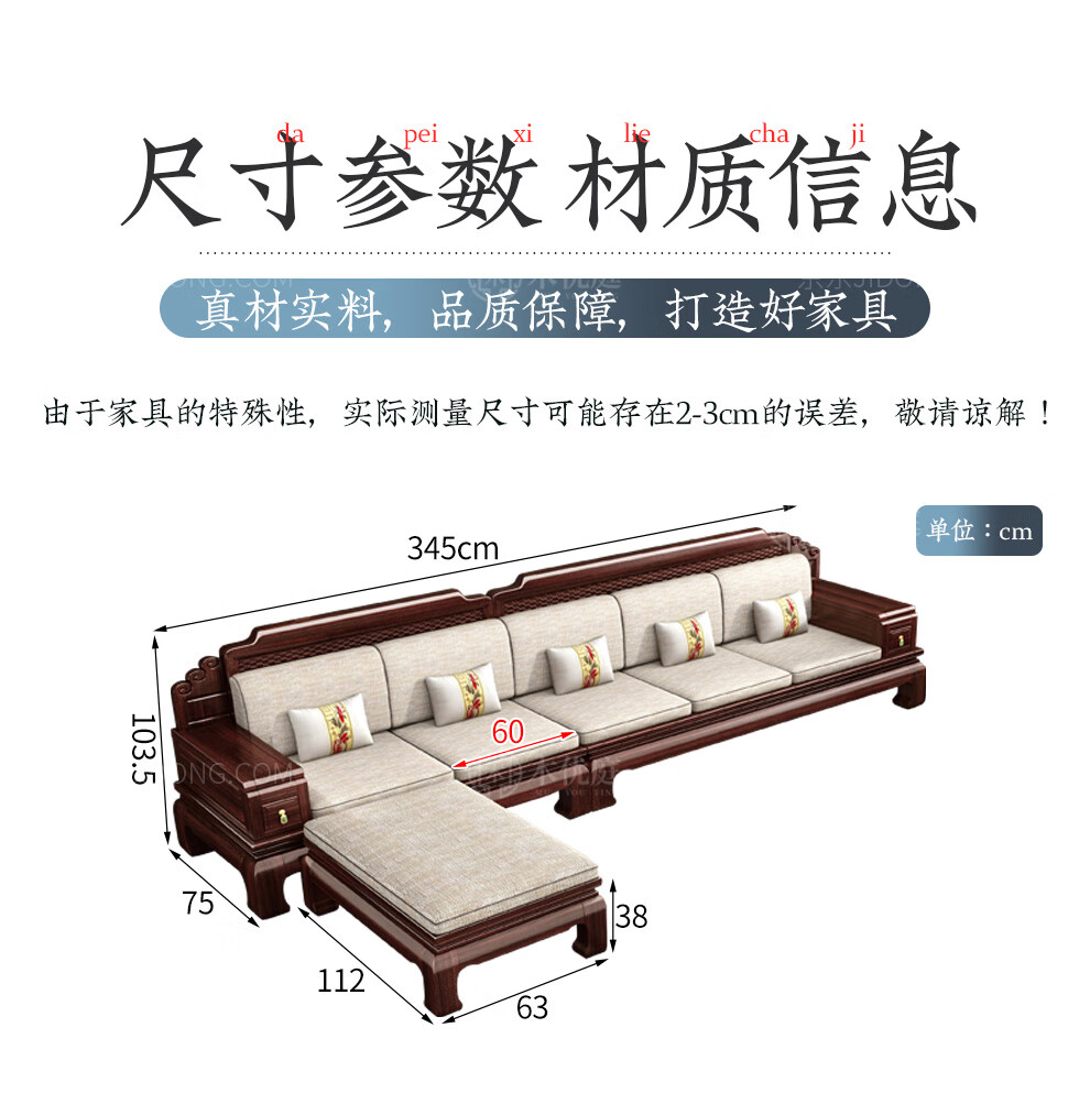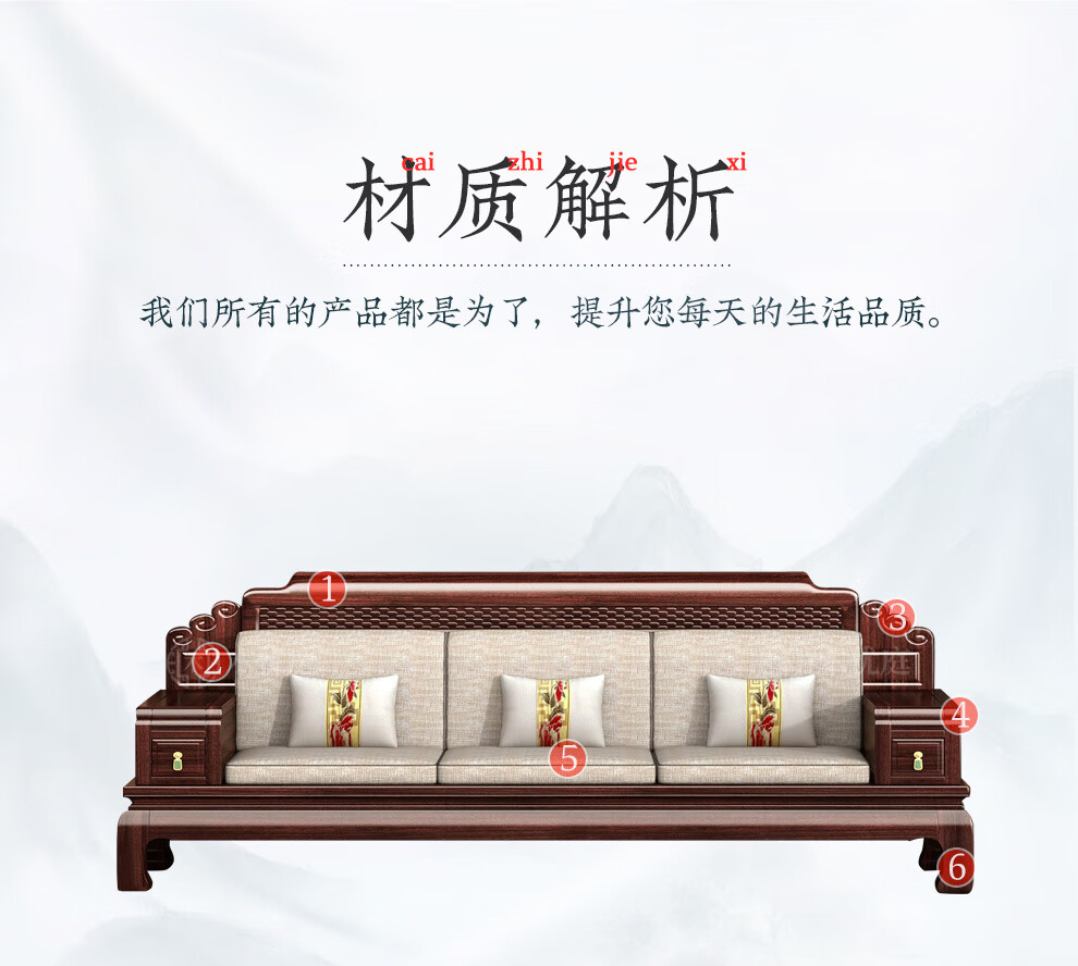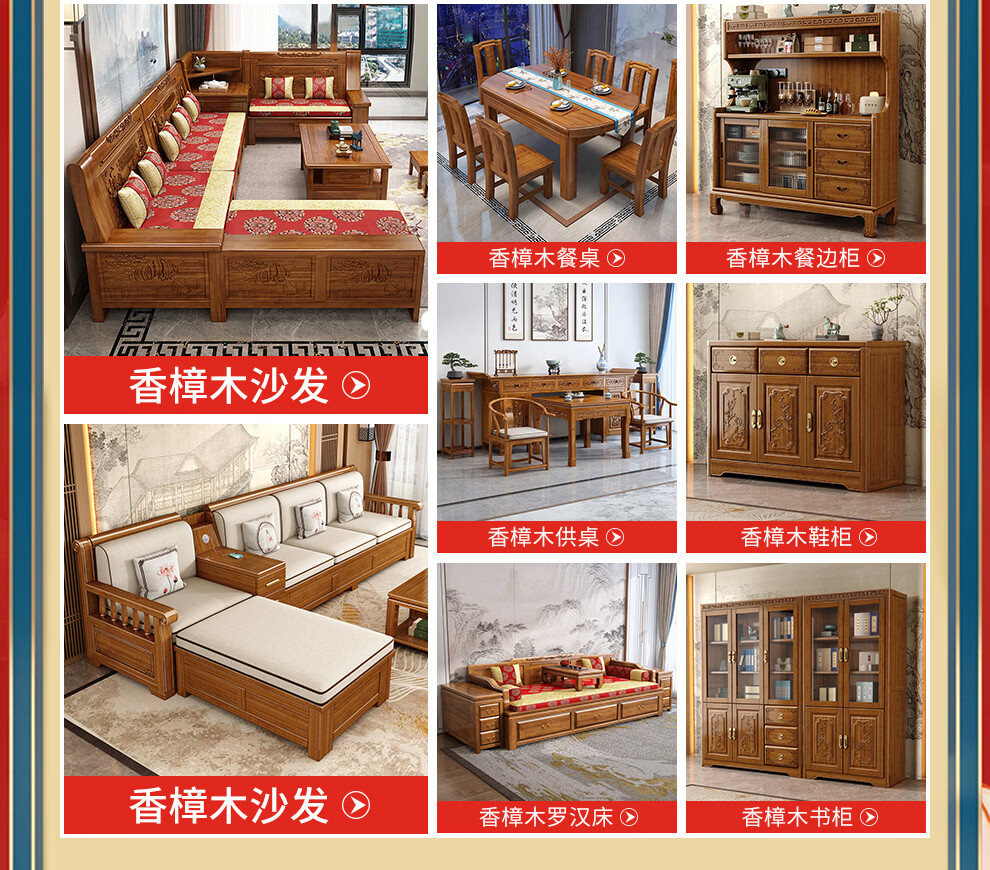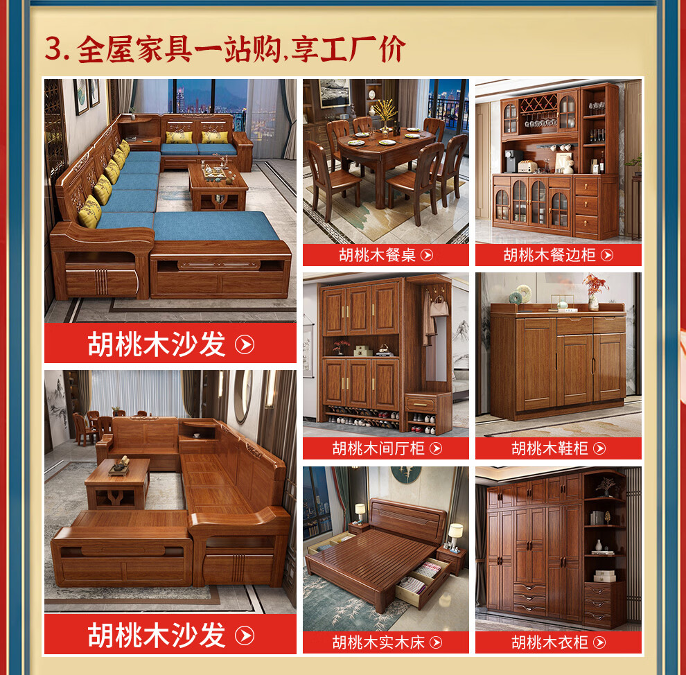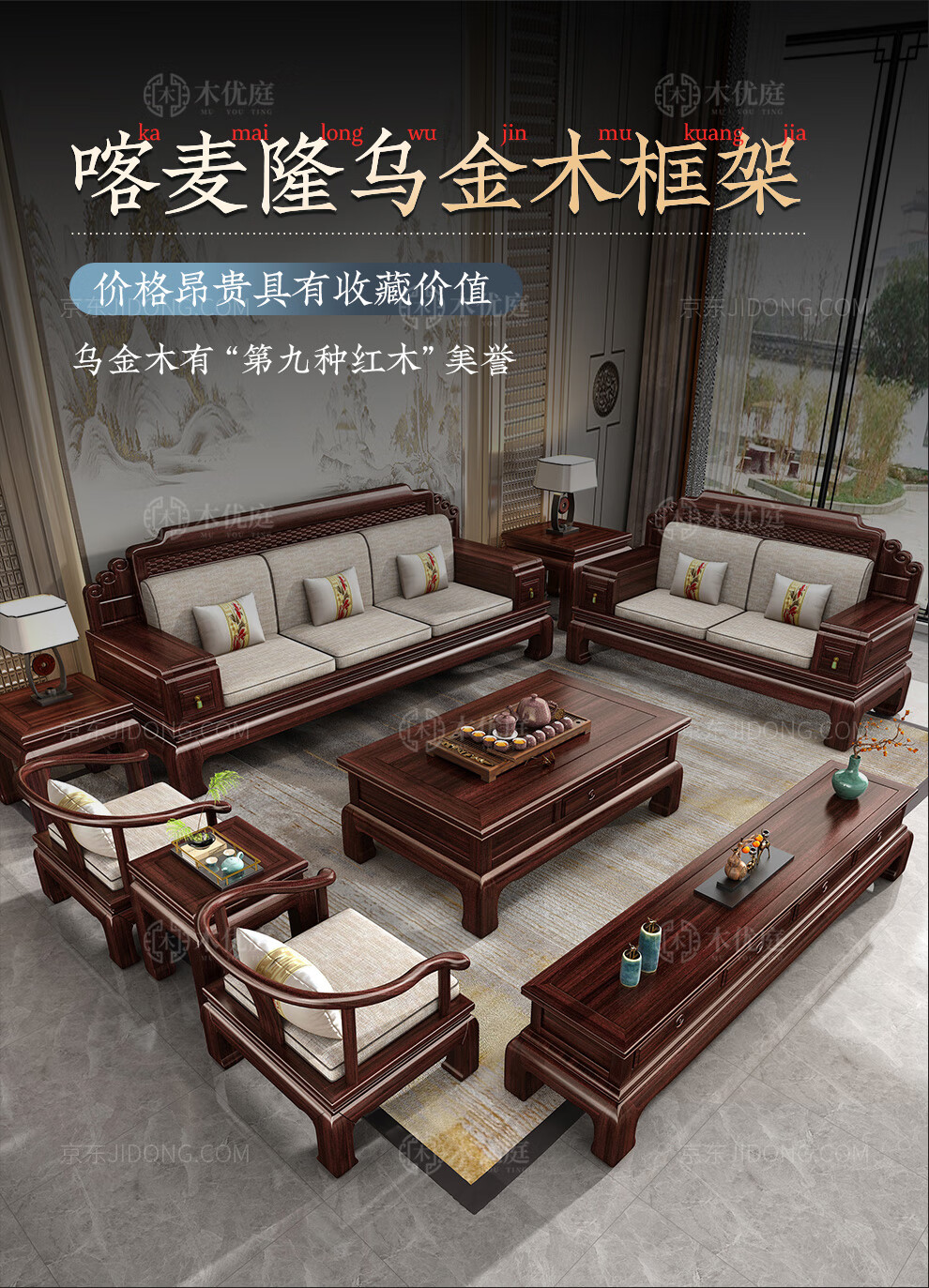 Muyouting Wujin wood new Chinese style all solid wood sofa living room winter and summer dual use simple log sofa small apartment combination set 1+2+3+ coffee table