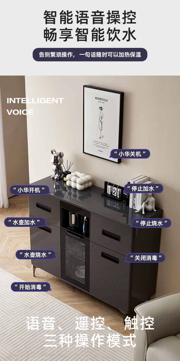 2025 new smart high-end tea bar machine with refrigerator integrated cabinet fully automatic water dispenser for living room and office light luxury gray hot and cold type three doors with refrigerator disinfection 1200*400*980