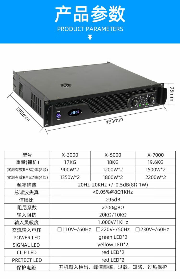JSG high-power stage power amplifier fixed resistance burning audio digital pure power amplifier X-750 900W*2/8 ohm