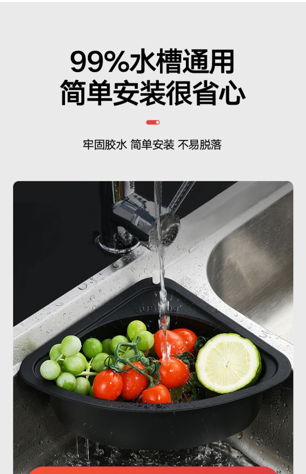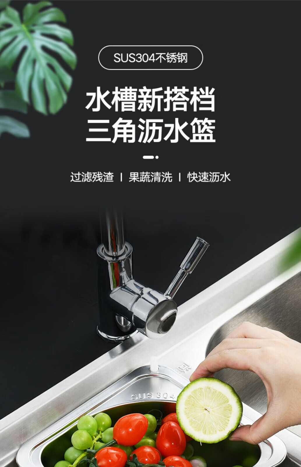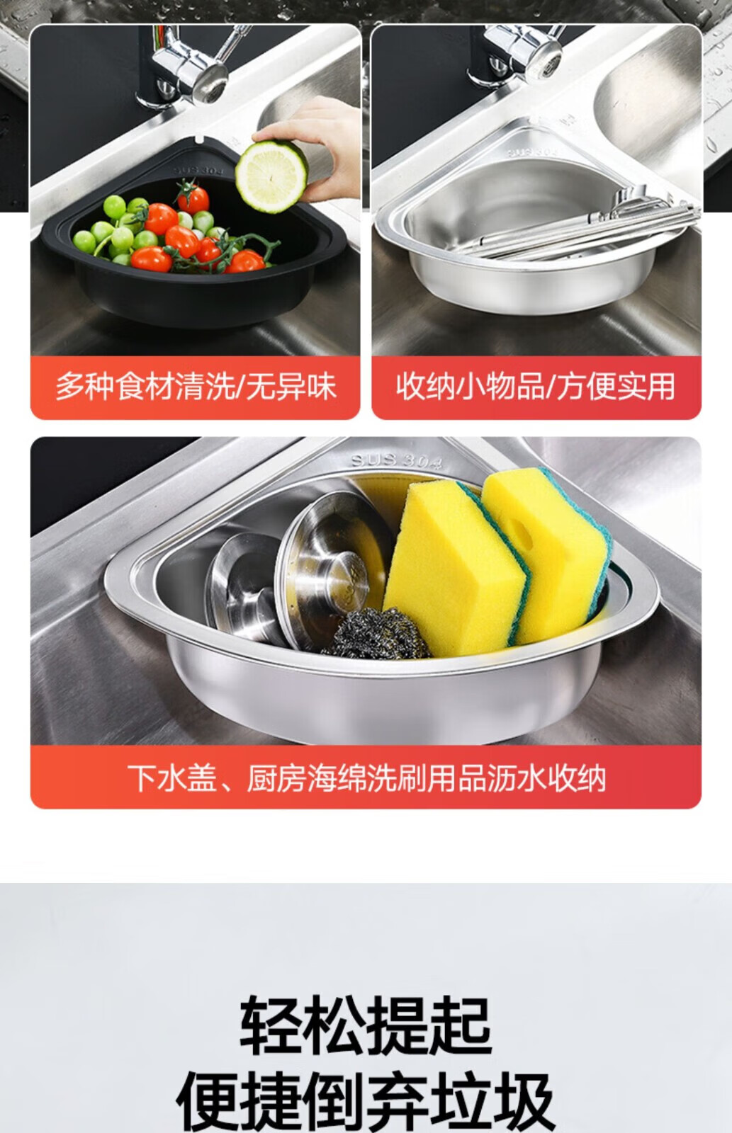 Deer color stainless steel kitchen sink triangle drain rack leftovers filter rag wash basin drain 304 stainless steel triangle drain basket-silver
