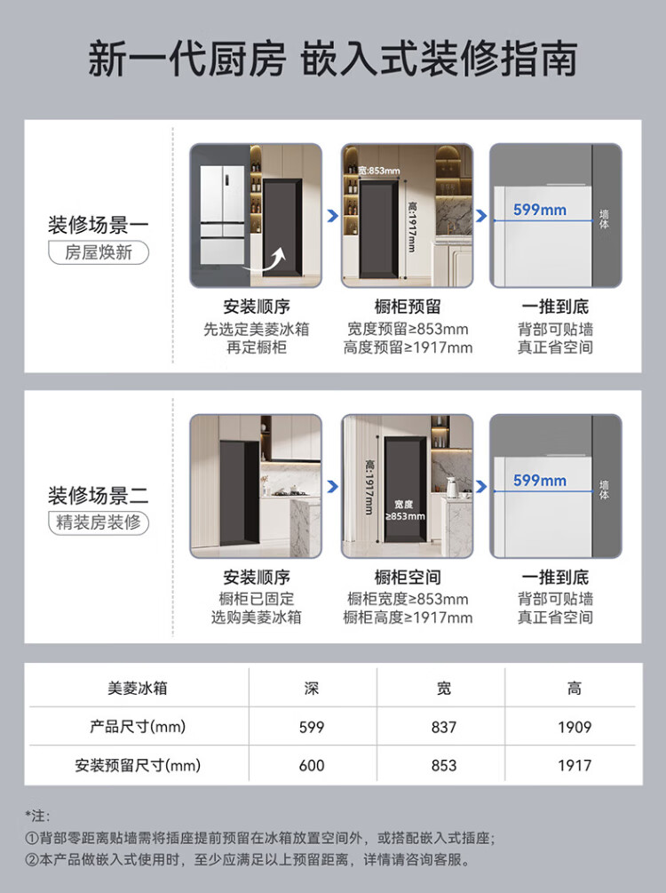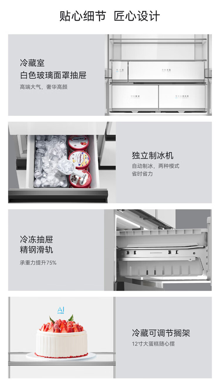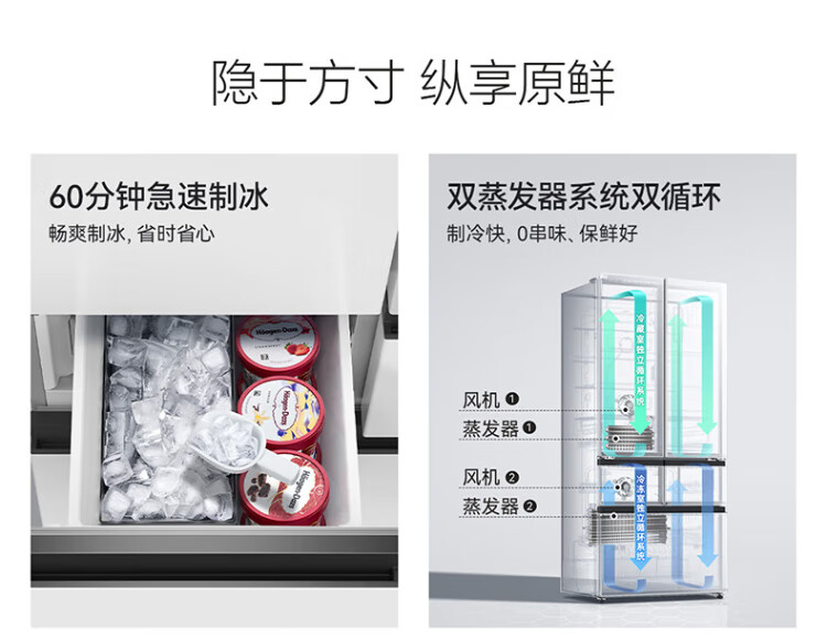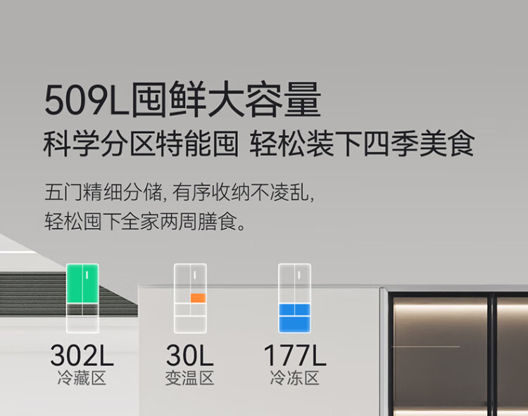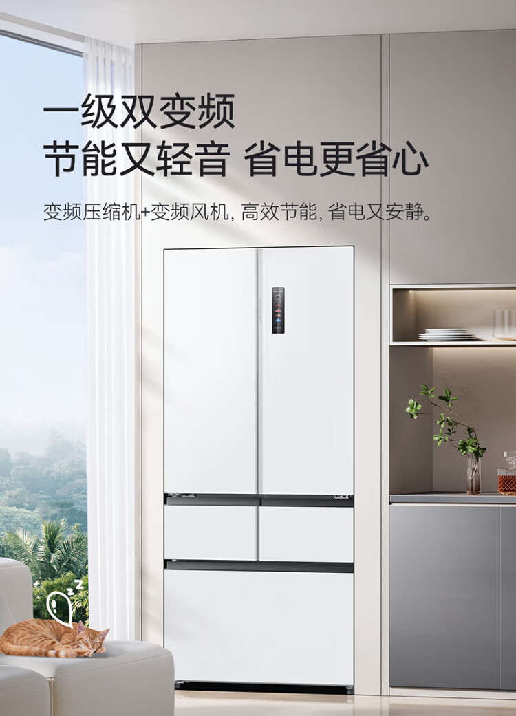 Meiling (MeiLing) Beluga 509 French five-door double-door large capacity 59.9cm ultra-thin zero-flat embedded dual system micro-freezing fully clean automatic ice making first-class air-cooled energy-saving refrigerator subsidy BCD-509WPU9CZX-Glacier White