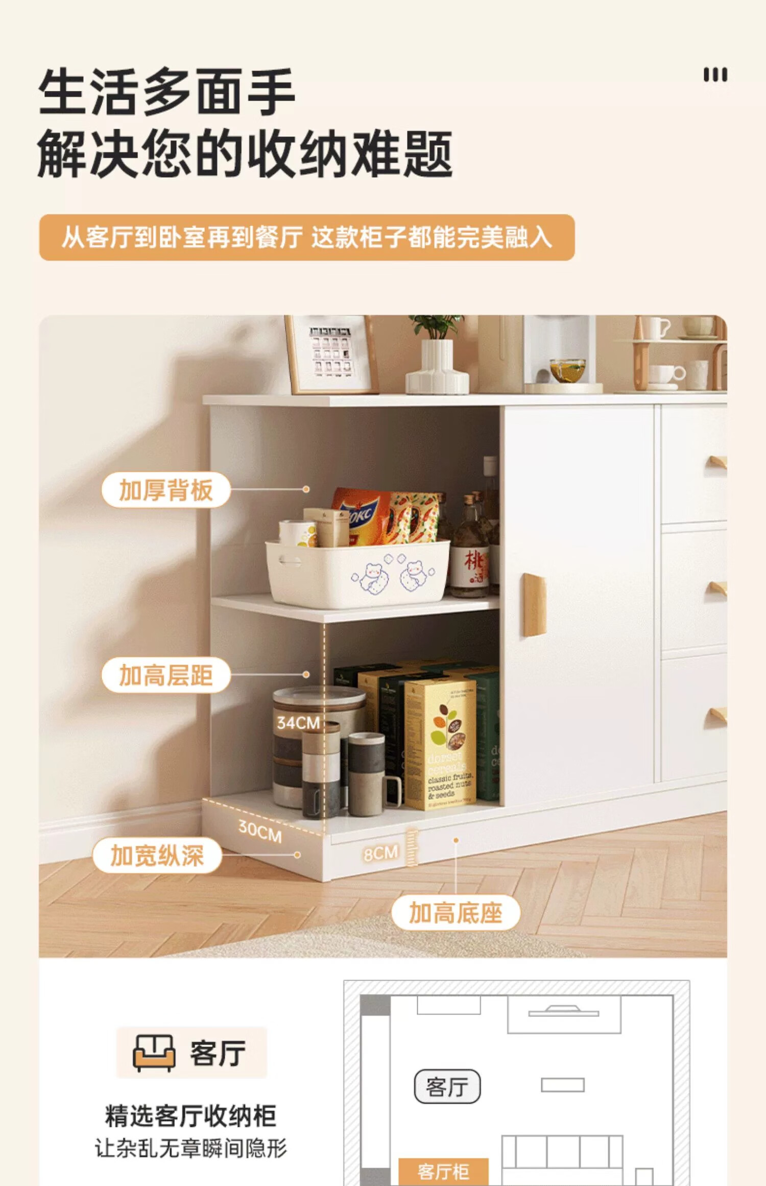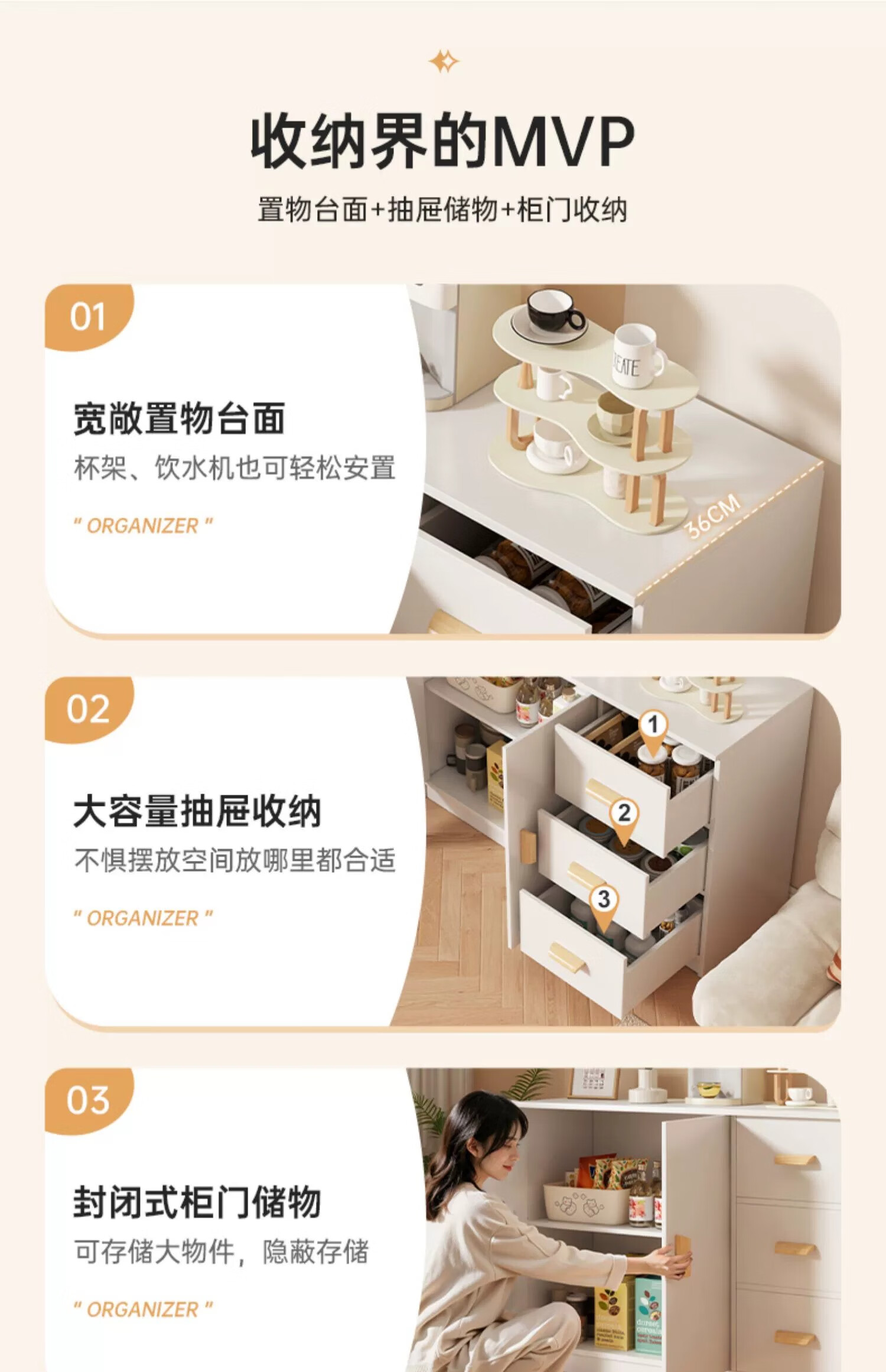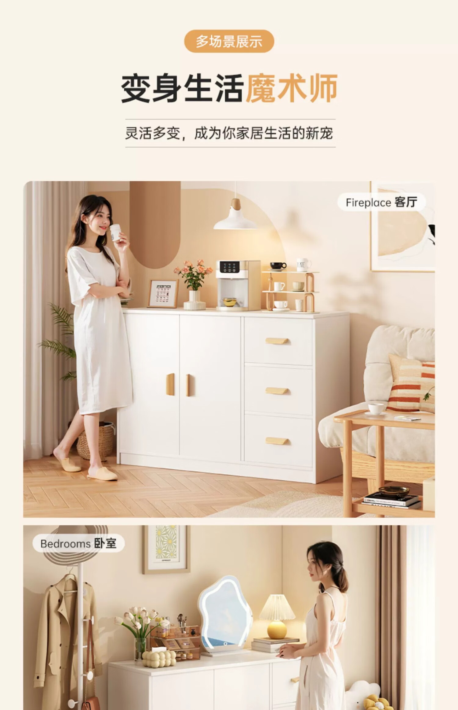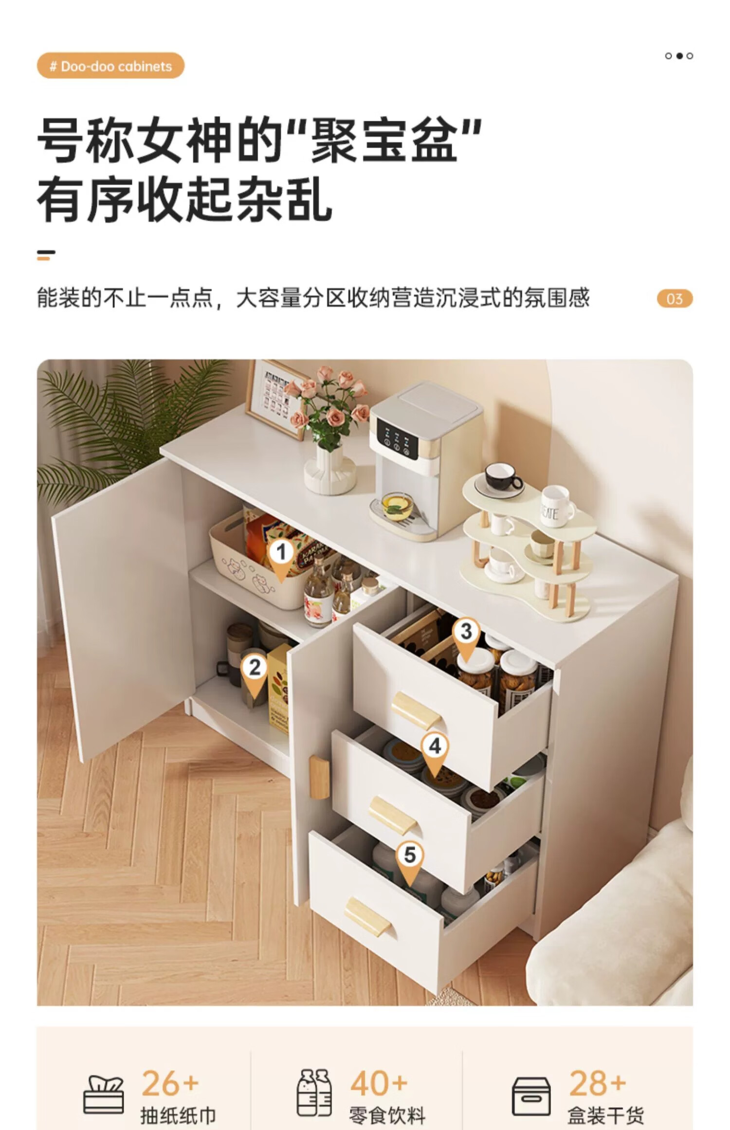 Zhuohe chest of drawers bedroom wall cabinet locker room bedside locker living room storage cabinet drawer chest chest of drawers main picture two doors three drawers warm white 100cm