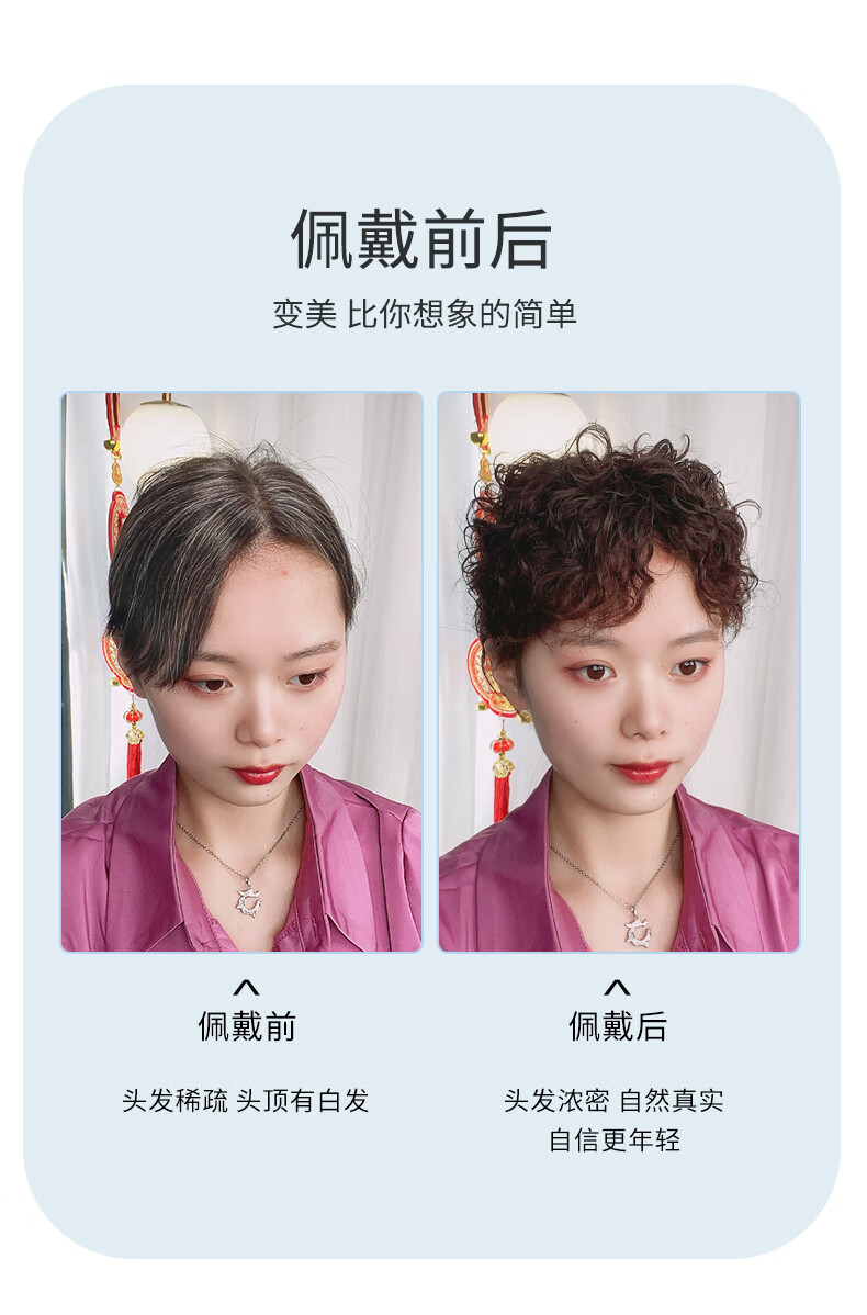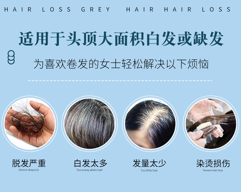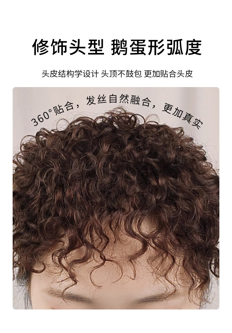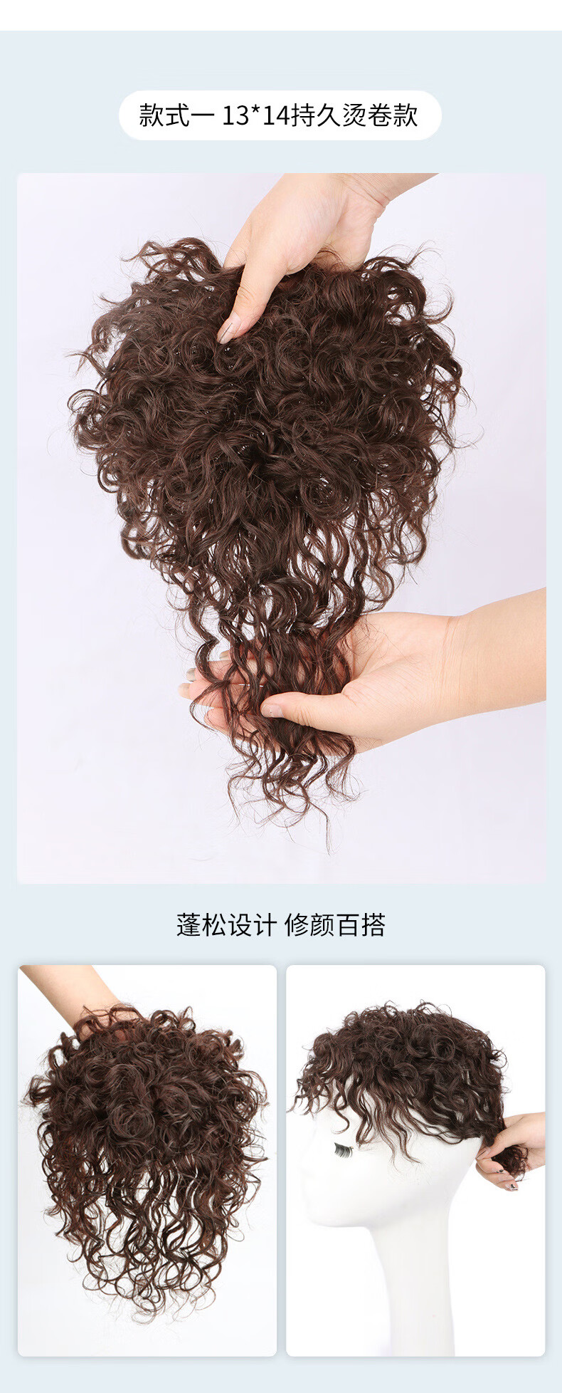 Covering white hair curly wig, real hair top replacement hair piece for women, seamless fluffy, thin wool, small curly hair replacement, long-lasting hot perm, 13*14 curls, hair tail extension, dark brown