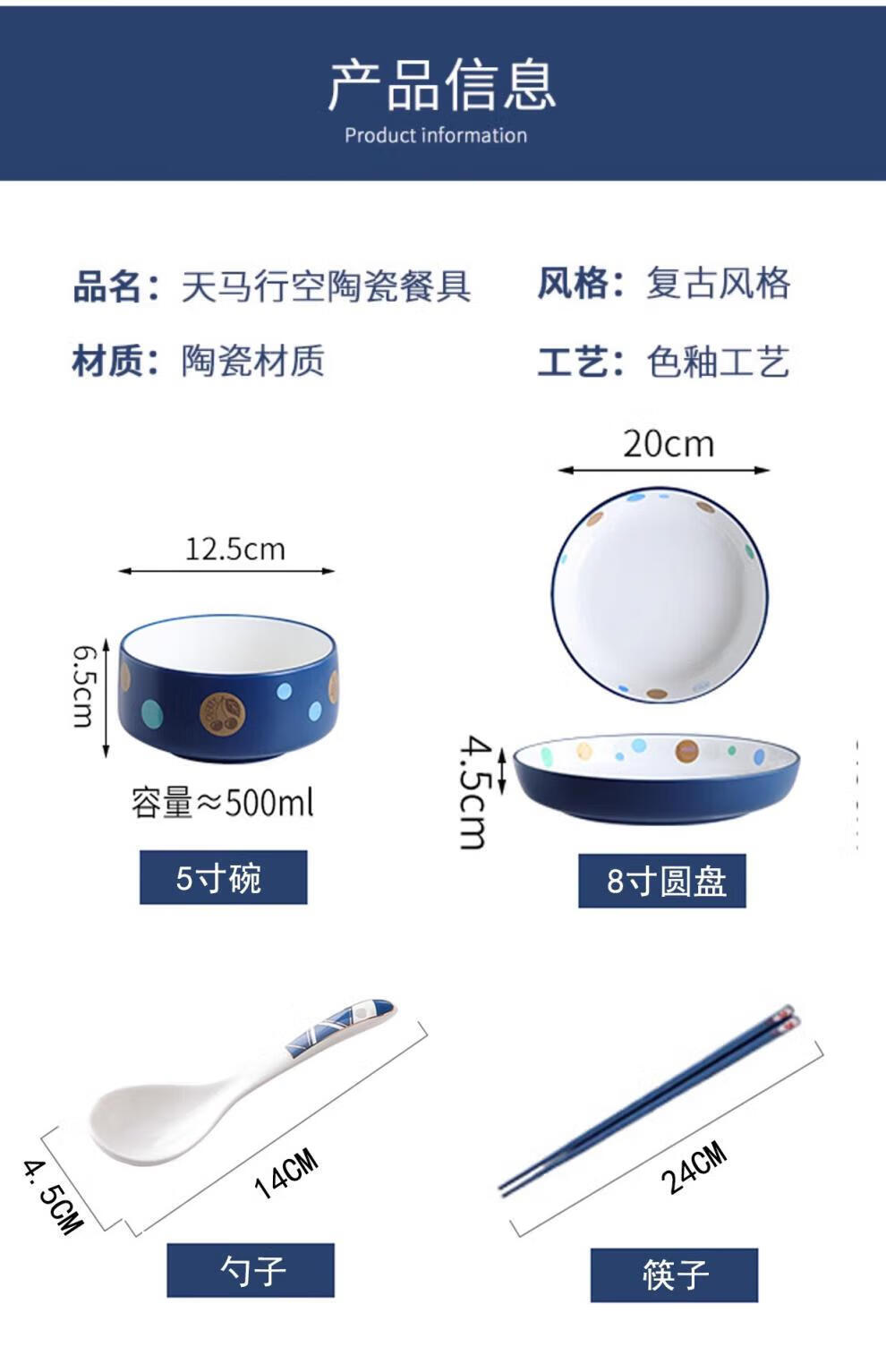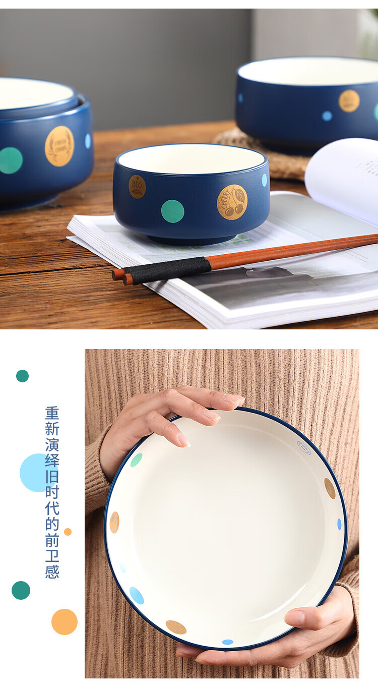 Qian Dong bowl and chopsticks set for one person, special bowls and chopsticks for couples, new exquisite and high-looking ceramic set, single bowl, bowl, chopsticks and spoon (dark blue) 3-piece set