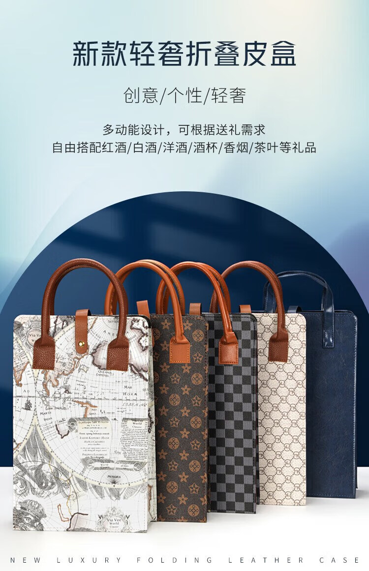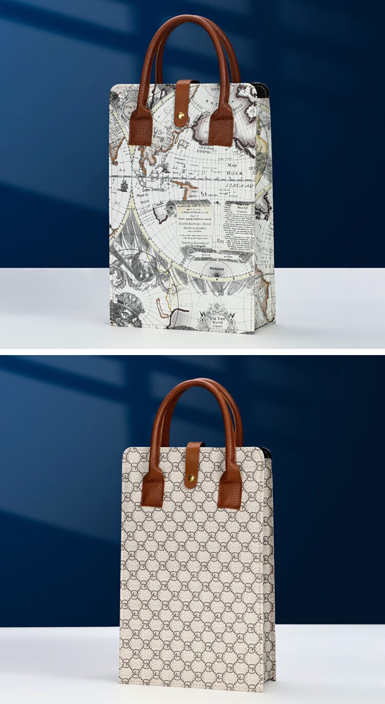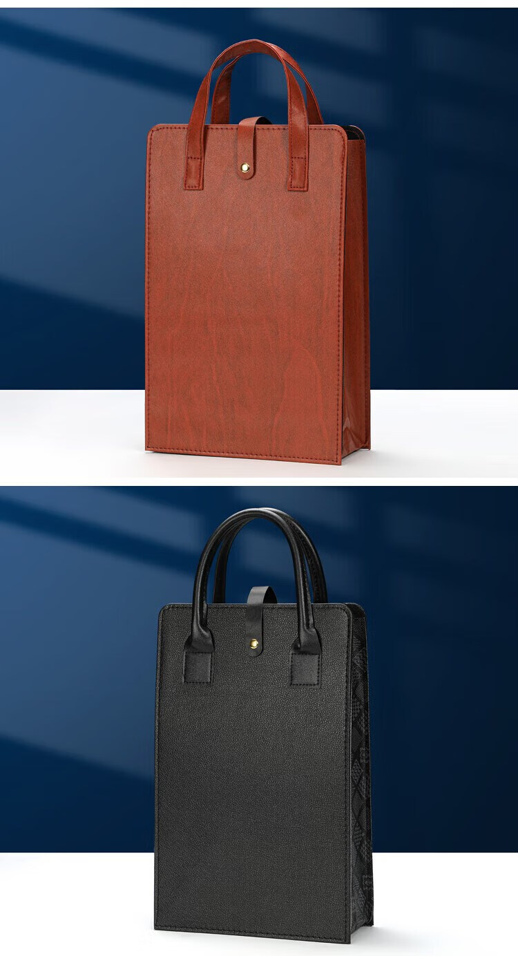 Huazi New Red Wine Packaging Gift Box Empty Box Handbag 2 Wine Double Pack Universal Leather Box Wine Set + Five-Pointed Star Color Double Tote Bag Hard Handle Wine Set +