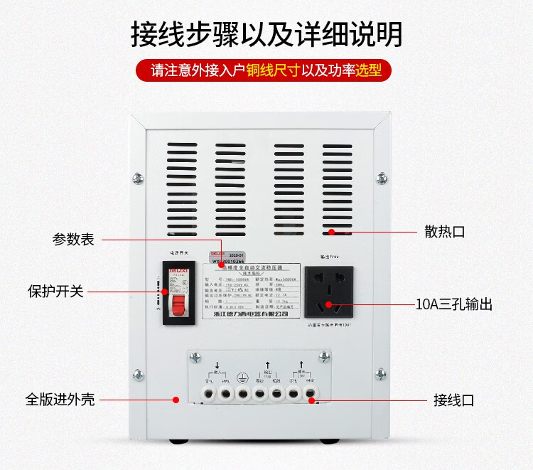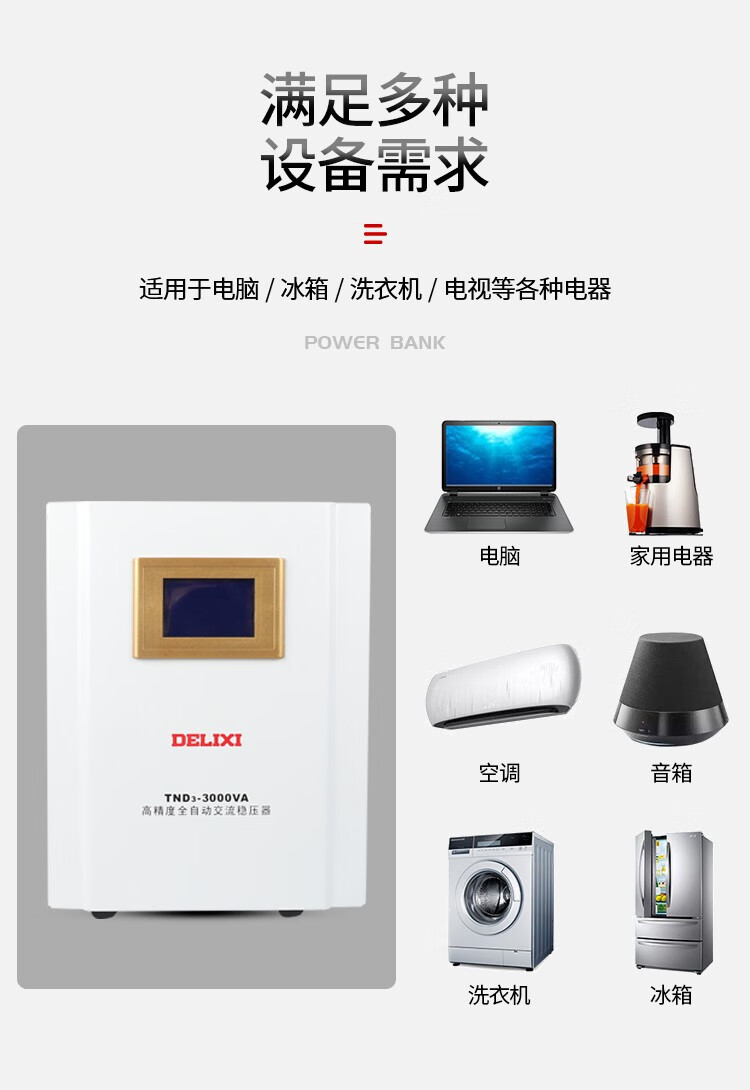 DELIXI ELECTRIC voltage regulator 1KW-20KW household air conditioner single-phase 220v high-power fully automatic voltage regulator TND3 1KVA