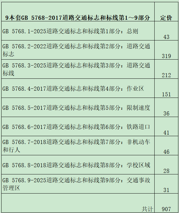 Complete set of 9 books GB 5768 Road Traffic Signs and Markings Part 1 9 Operation Zone Speed Limit Railway Crossing Non-motor Vehicles and Pedestrians Traffic Signs and Markings School Zone 5768.3-2025 Part 3 Road Traffic Markings