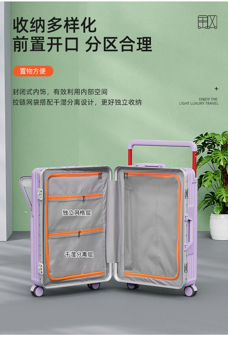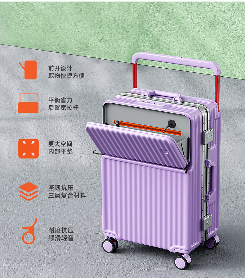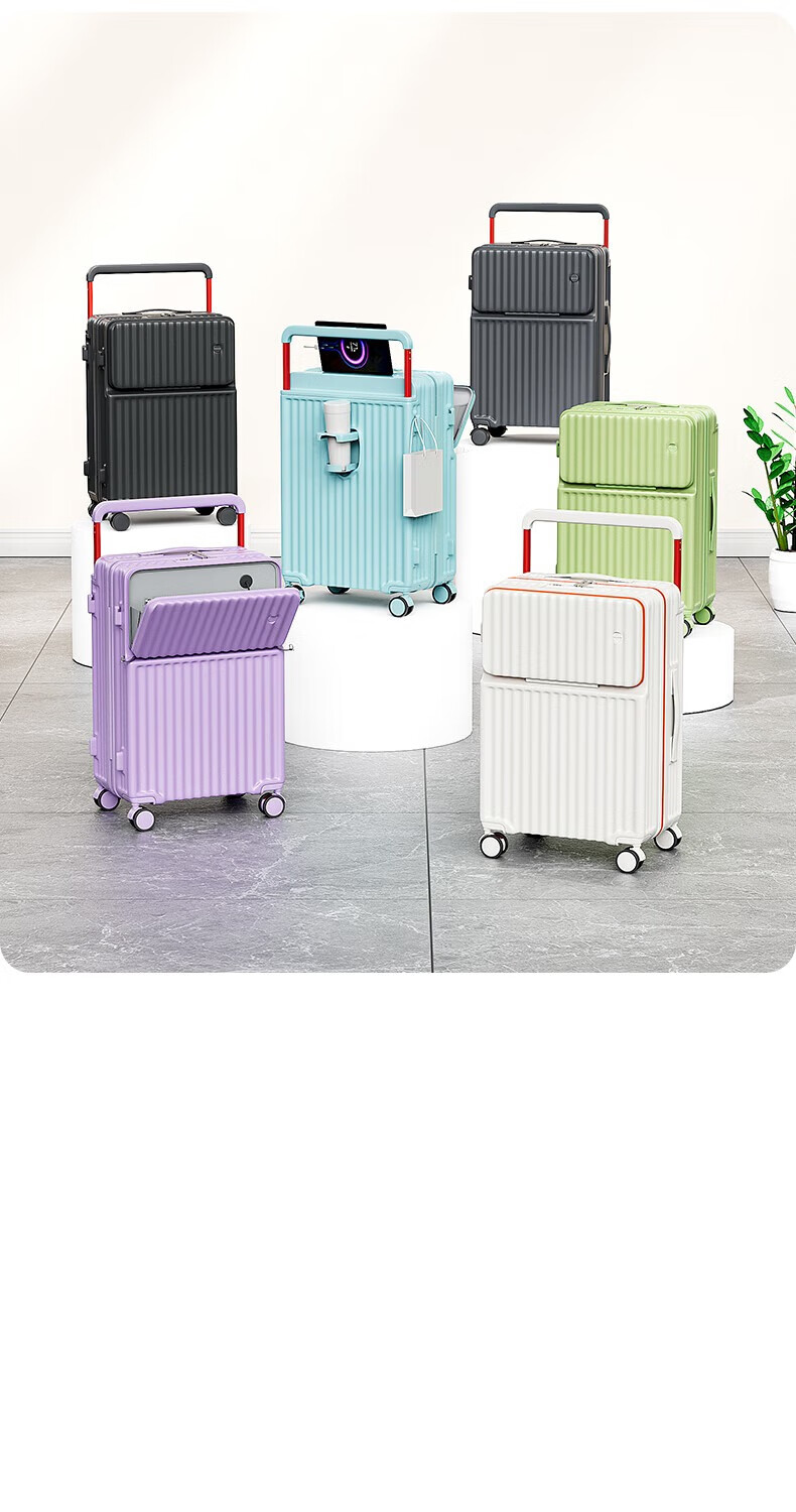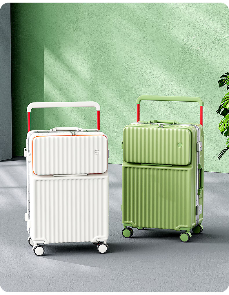 MCHNA KTCC wide trolley aluminum frame suitcase multi-functional trolley case PC material suitcase business trip boarding case student password box pearlescent white zipper charging port + cup holder + hook 20 inches short-distance travel can board the plane