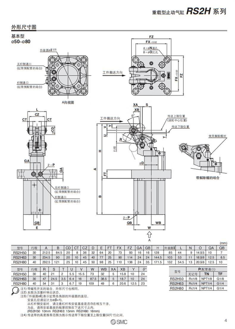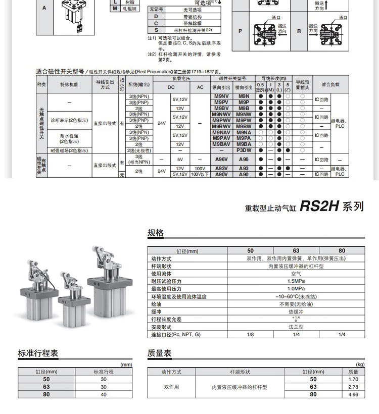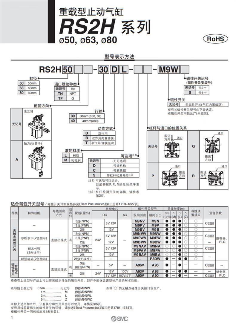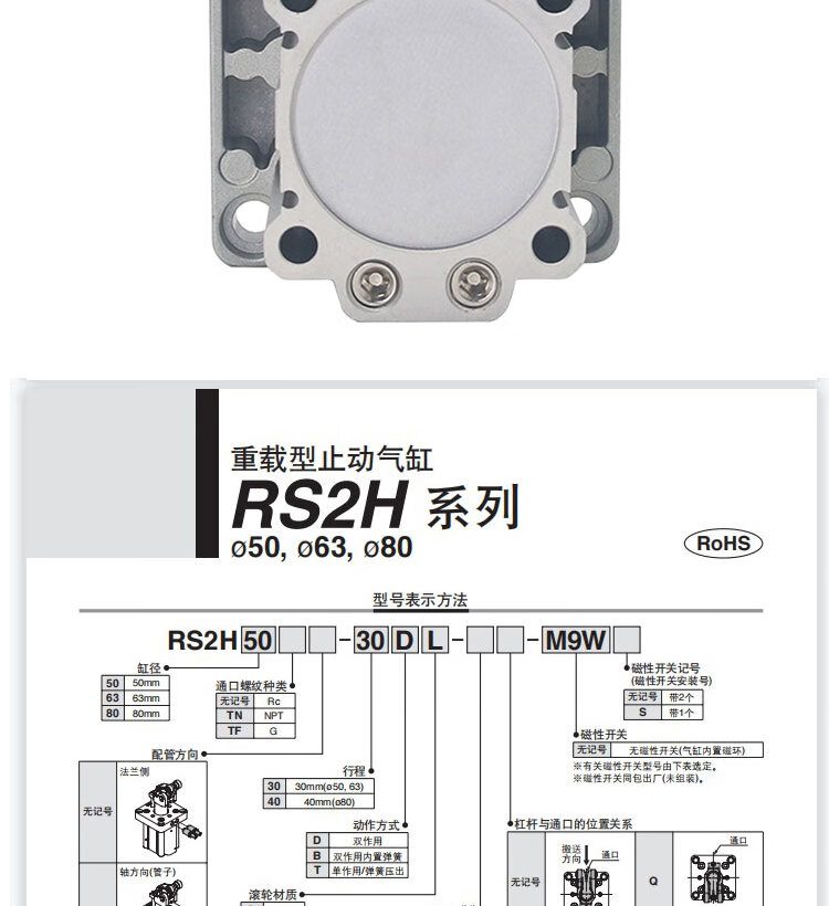 SMC blocking cylinder RSH RS2H RS1H RSA50-30DL DM BL BM TL TM-D-C RS2H50-30DL