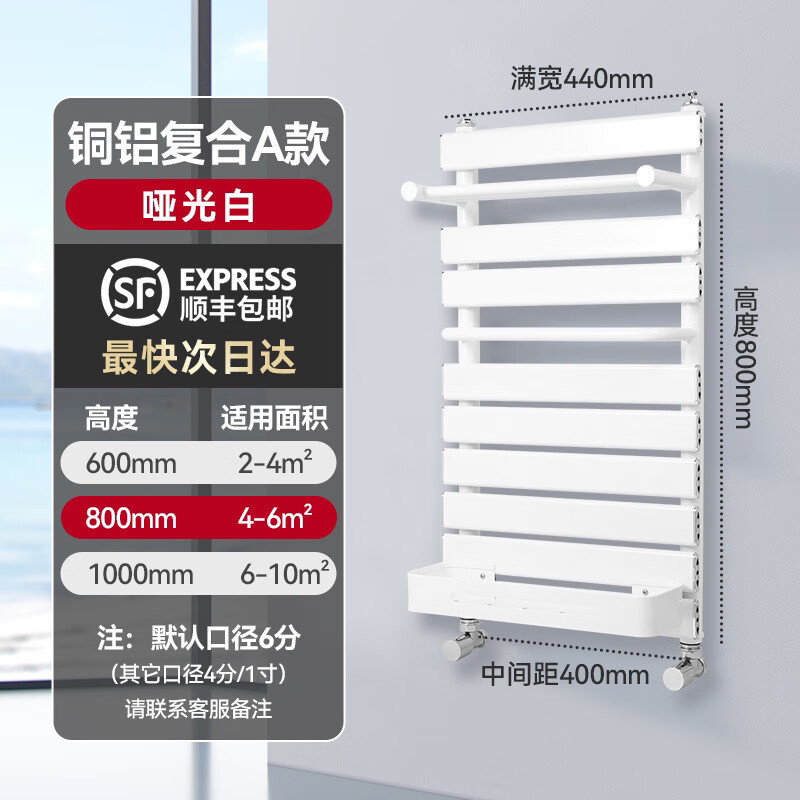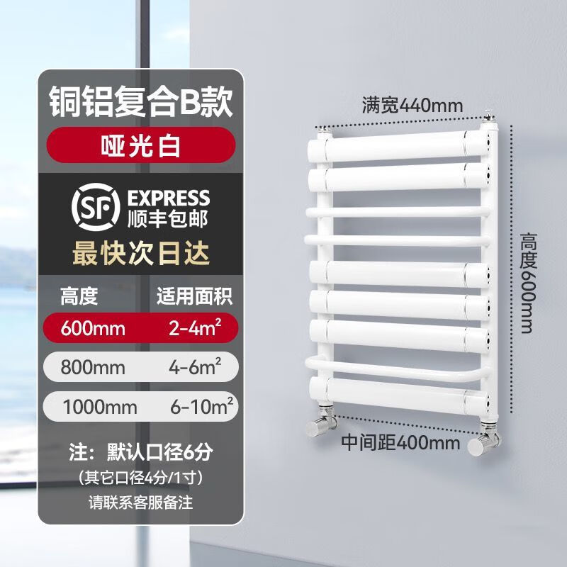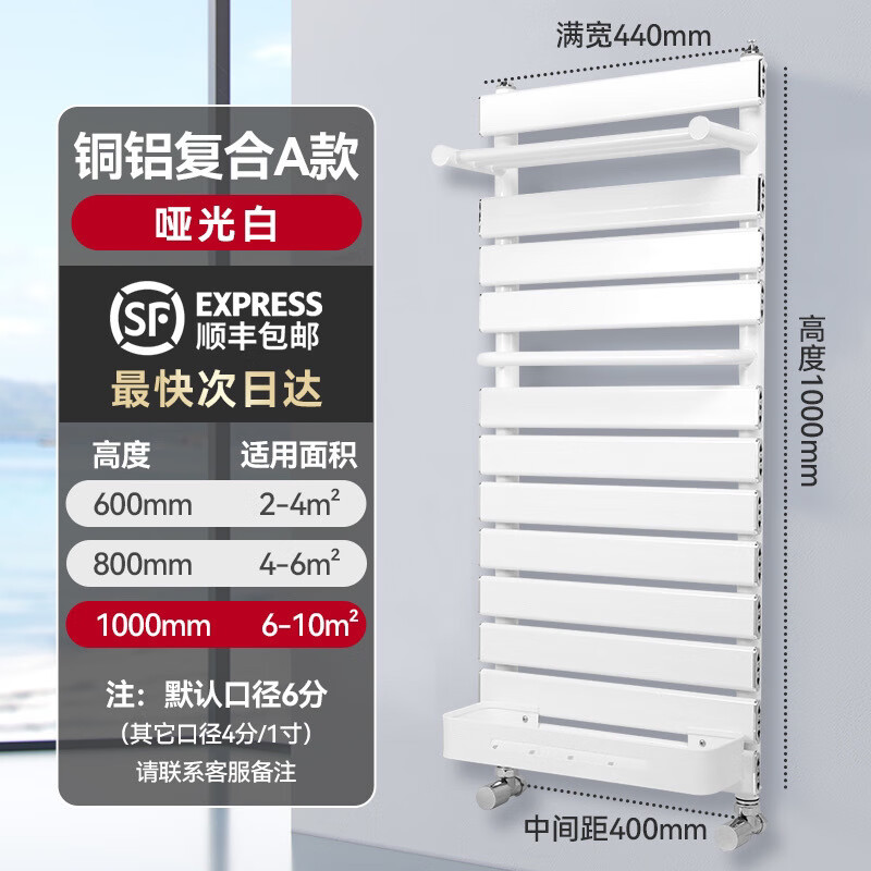 Qinkai copper-aluminum composite small basket bathroom radiator household central heating bathroom storage rack plumbing towel rack copper-aluminum basket B style white - height 600mm