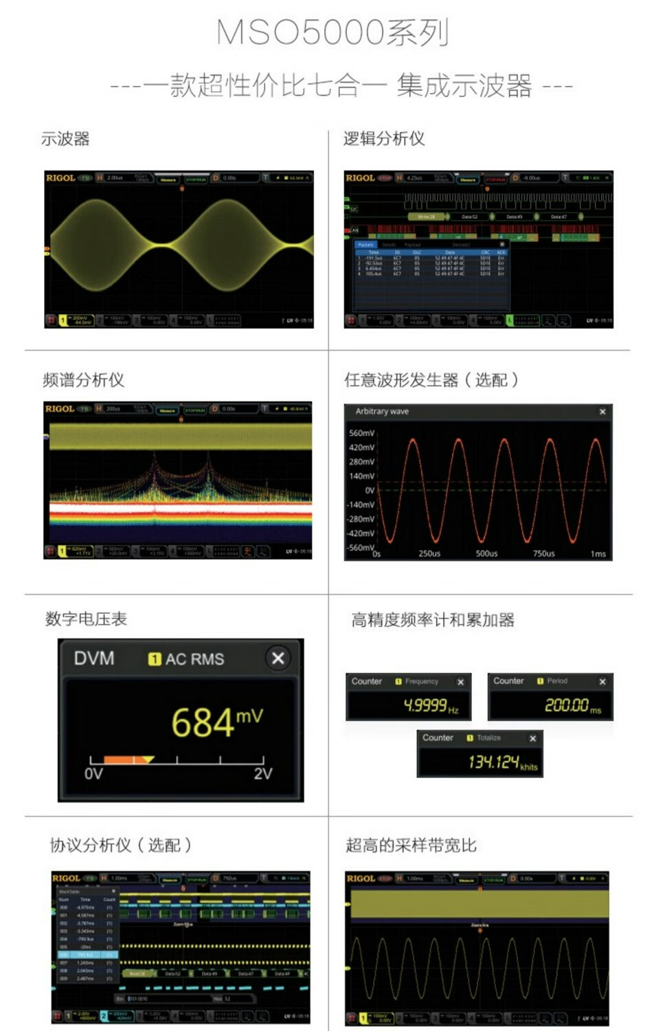 Puyuan Precision MSO5104/5102/5204 digital oscilloscope 100M bandwidth 8G sampling rate MSO5072/5074 MSO5072 (70M bandwidth two channels)