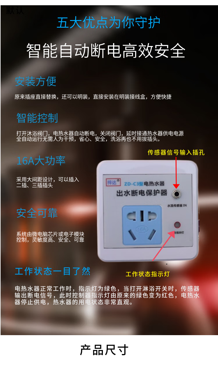 Water storage electric water heater automatic power-off and anti-leakage protector Household 16A smart socket power-off switch A) Orange