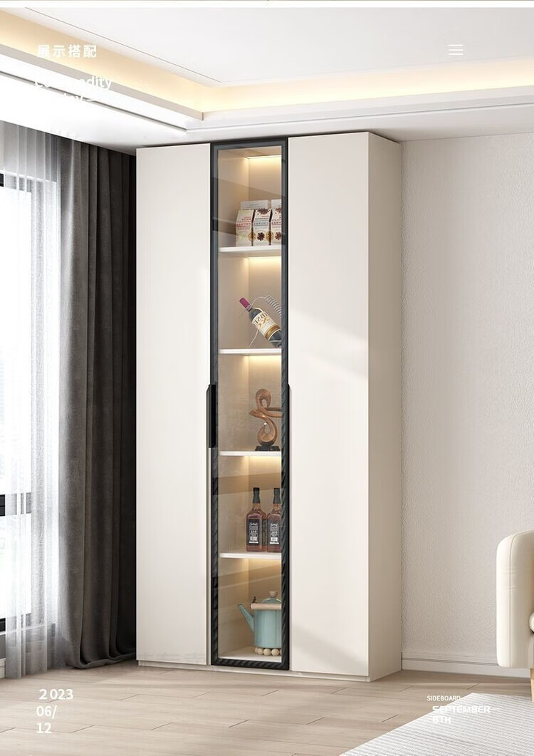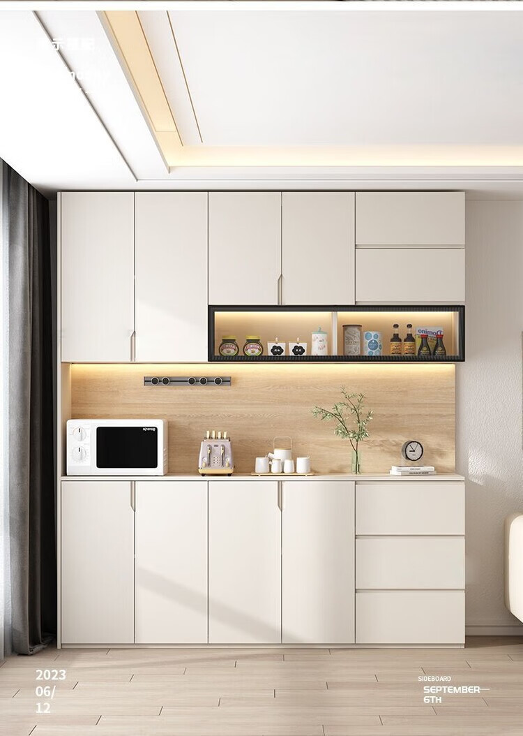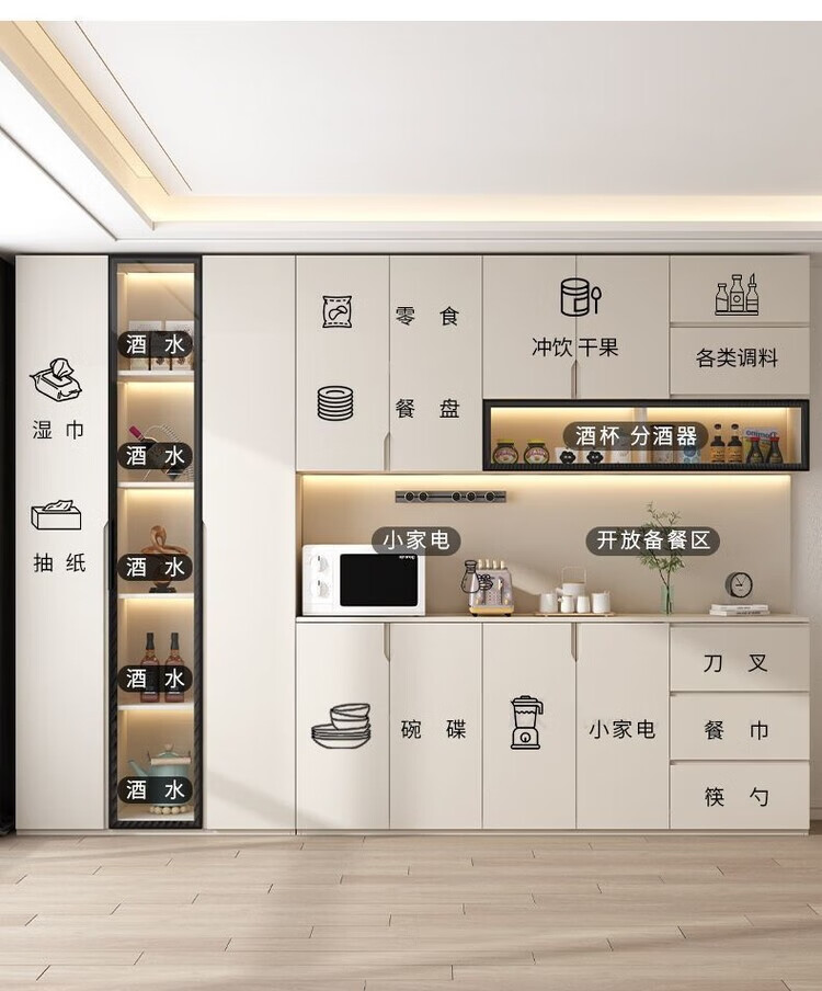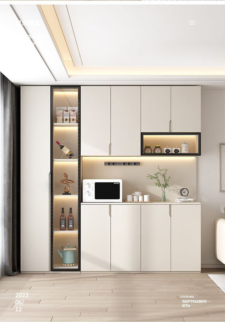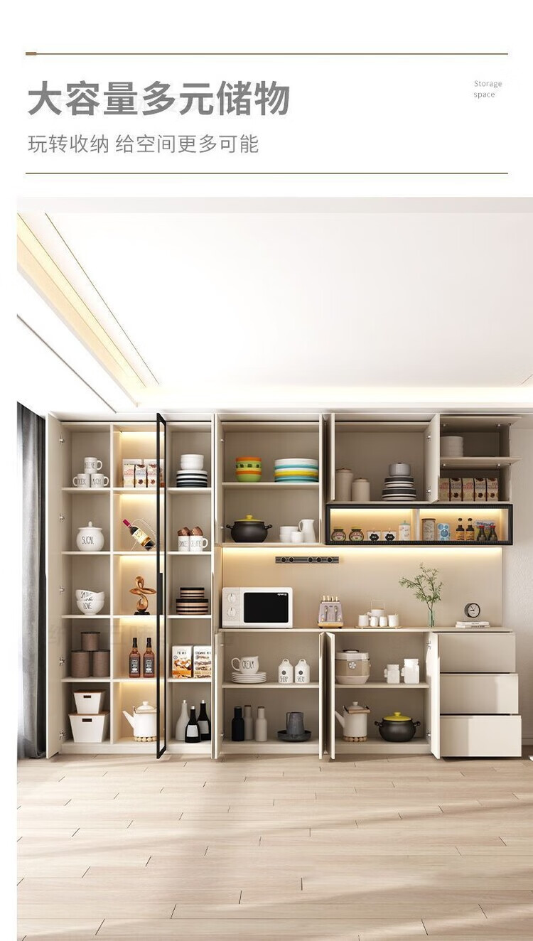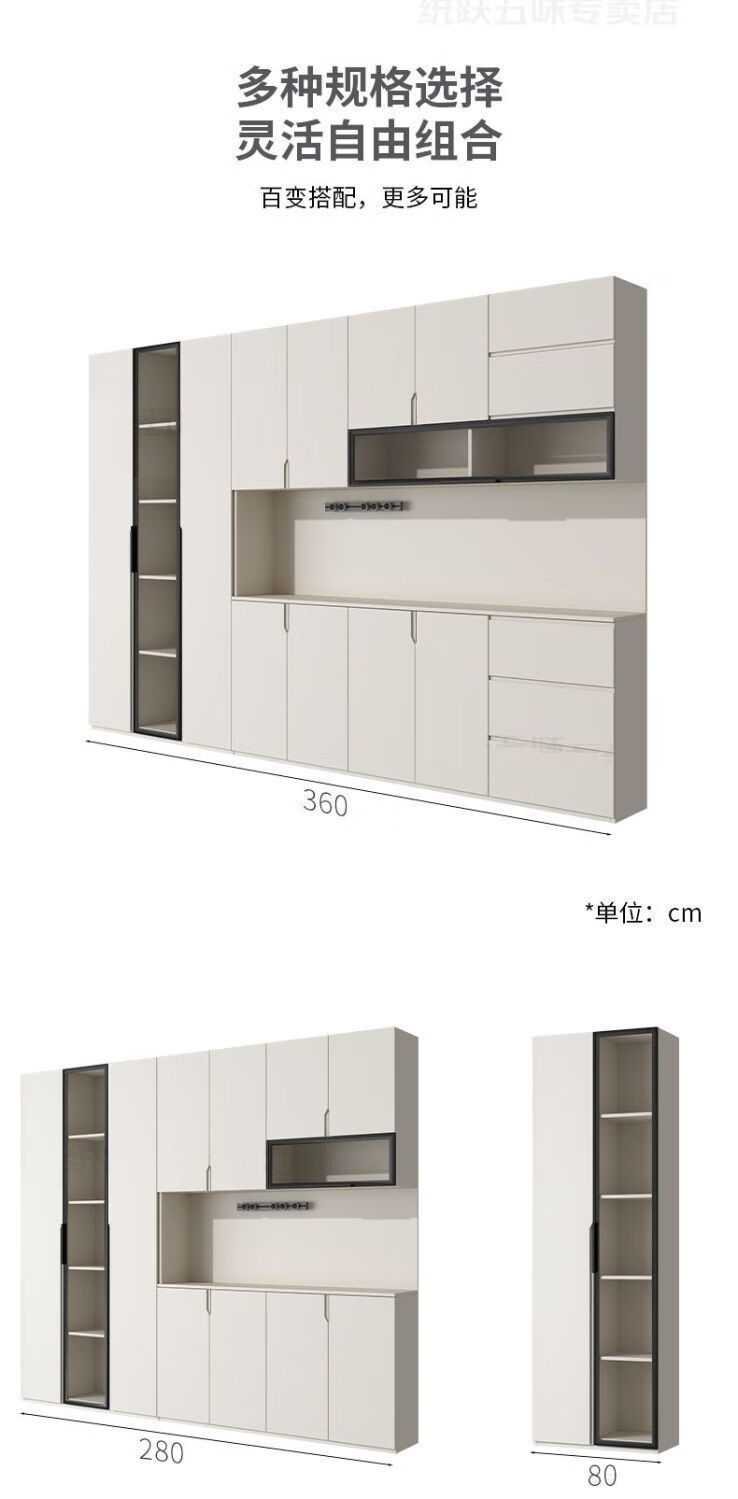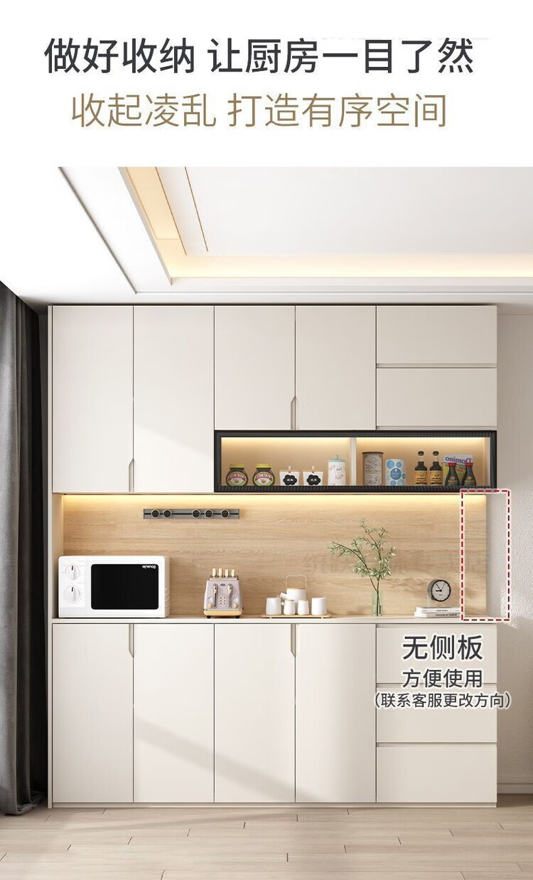 Fuhu cream style solid wood sideboard against the wall integrated living room wine cabinet multi-functional storage kitchen cabinet customization thickened T1 80*40*240cm delivery to home package installation
