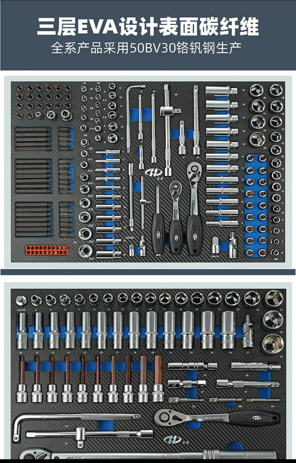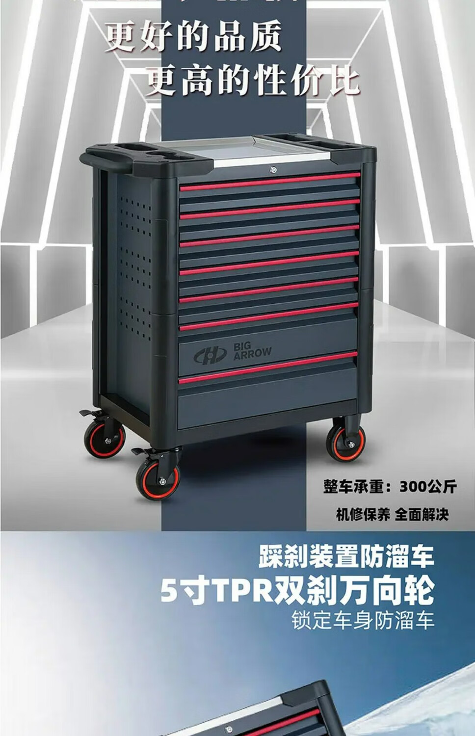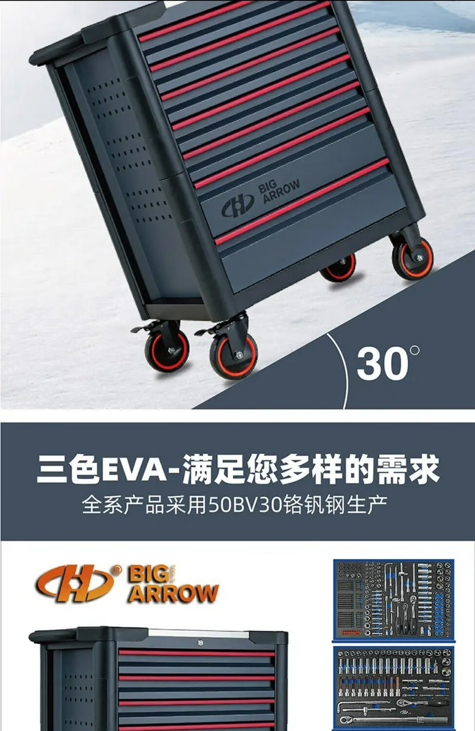 HUAFENG BIG ARROW multifunctional 352-piece tool trolley set, industrial-grade auto repair set, seven-layer drawer tool cabinet trolley, 396-piece tool trolley set