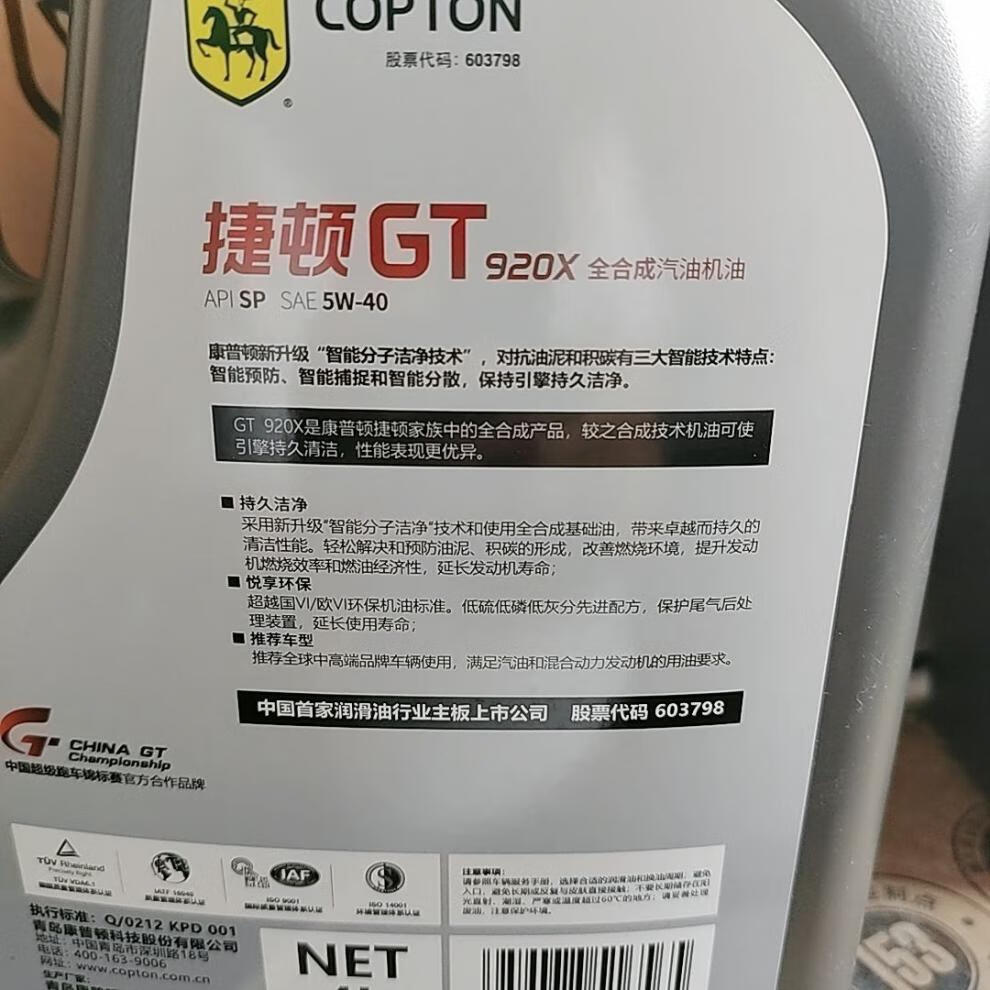 COPTON full gasoline engine oil Jieton 920X5w-40 car gasoline engine oil four liters 2.0t to 5w40 1L