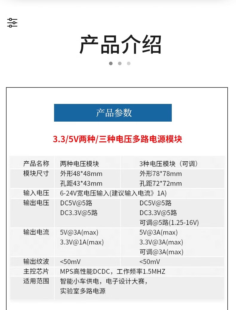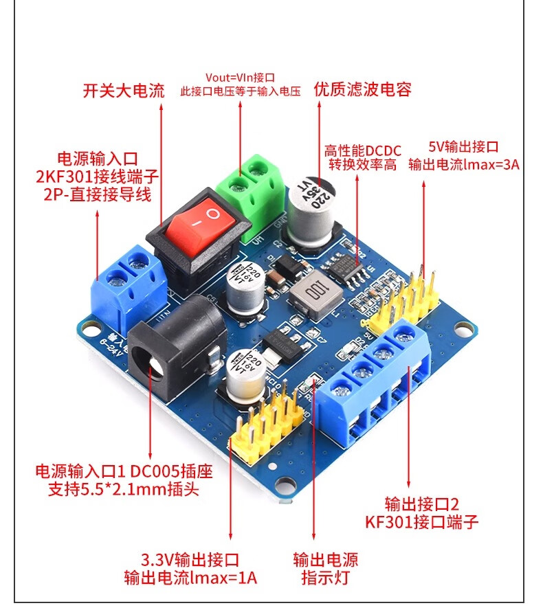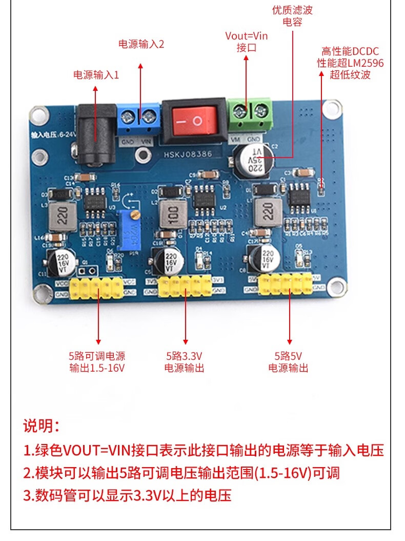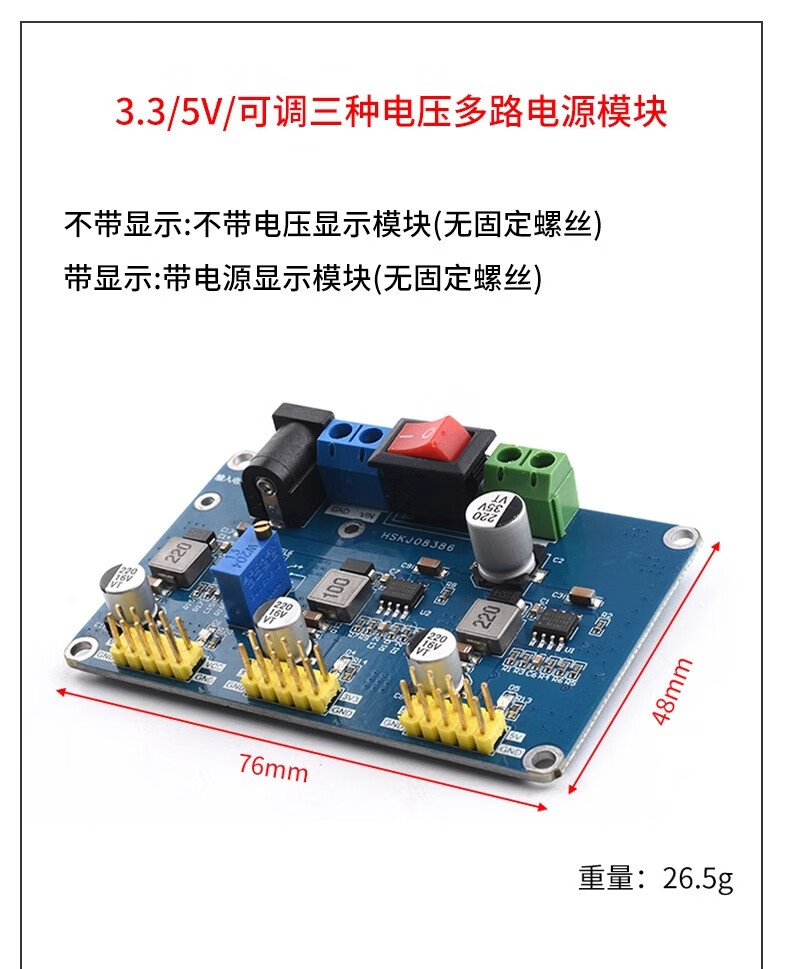 3.3V/5V multi-channel output power supply module DC-DC voltage conversion module Smart car power supply board 3.3/5V/adjustable three voltage multi-channel power supply module