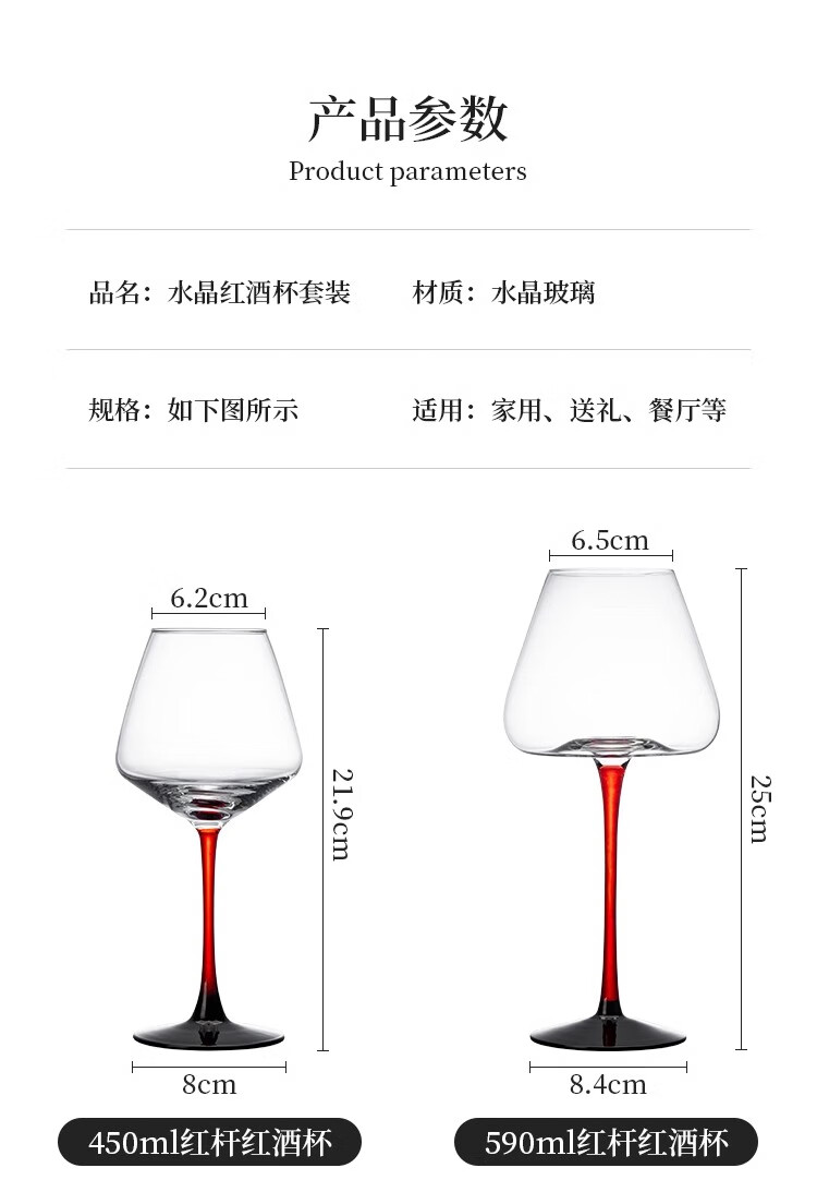 MARTIGUES European luxury crystal red wine cup, high-end household integrated burgundy goblet decanter wine set, eight-piece set of transparent red wine cups 450ml