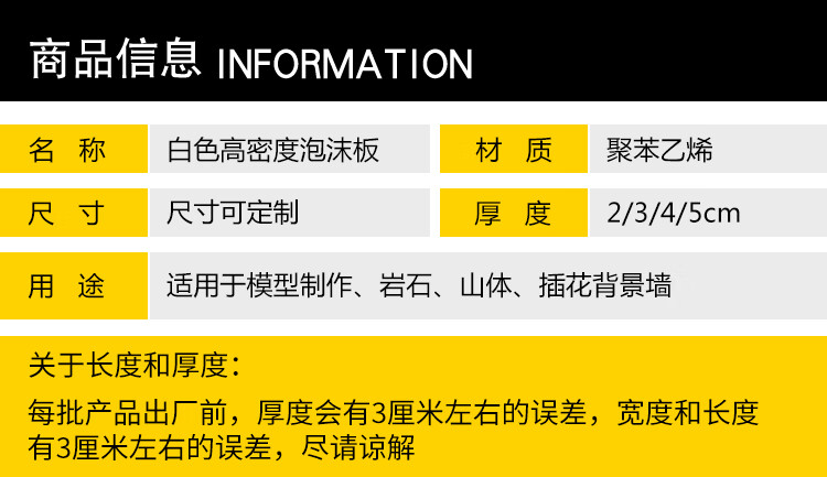 Kindergarten environmentally friendly high-density foam board hard board carving model material scene production model foam block building blocks white 2 cm 30*60cm 4 pieces
