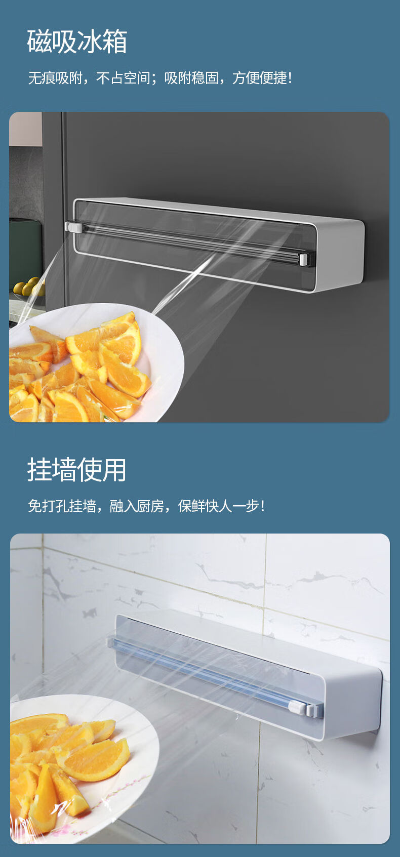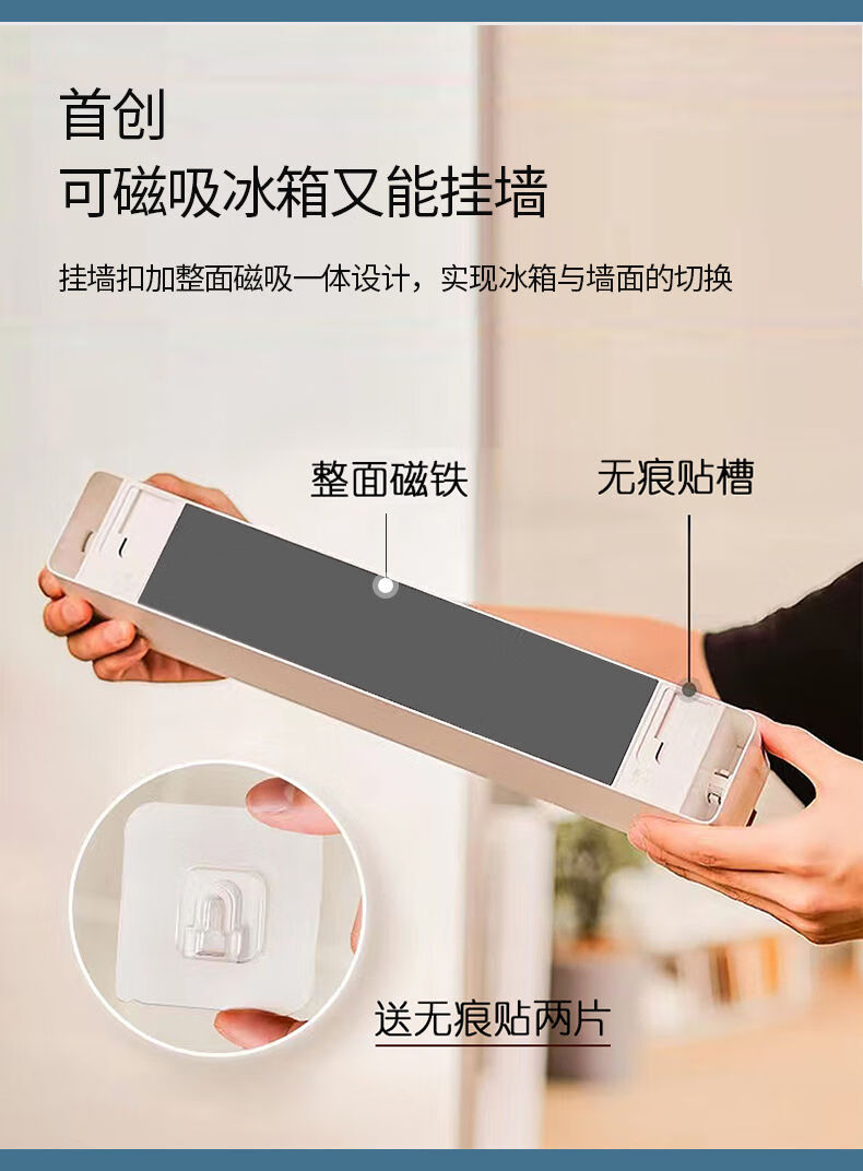 Ling Yuxun's adhesive wall-mounted cling film cutter PE film large-capacity magnetically absorbable container kitchen artifact new product E1 gray cutter MAX