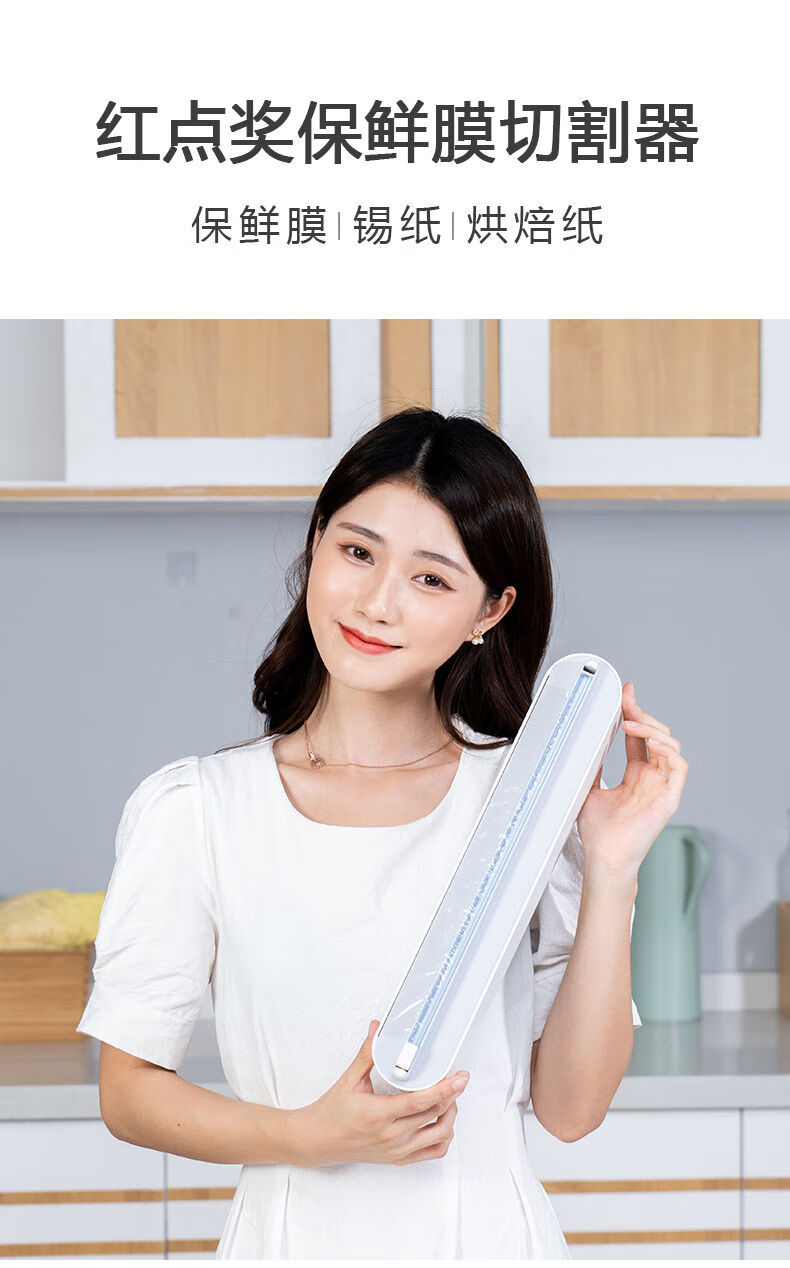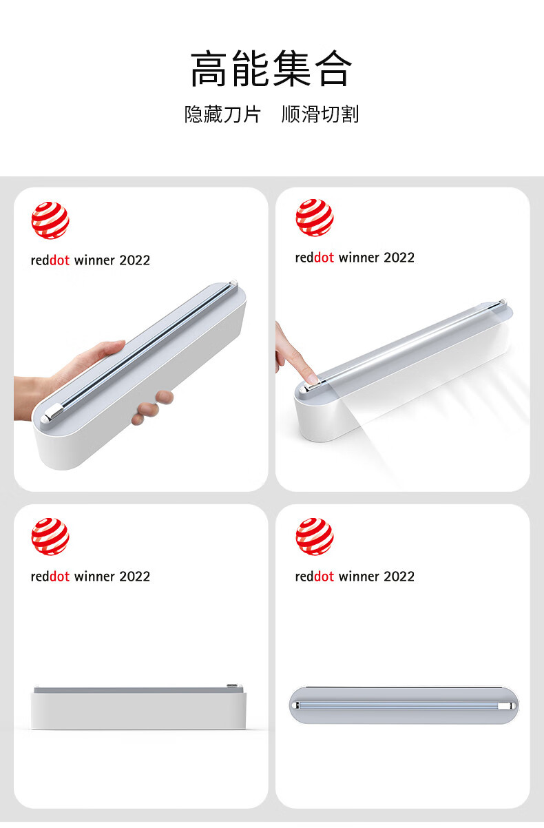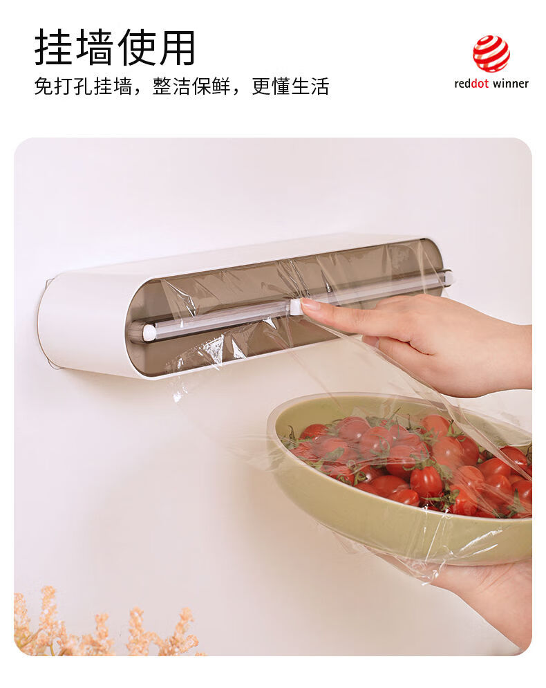 Ling Yuxun Red Dot Award cling film cutter can be magnetically absorbed and wall-mounted, large capacity, compatible with universal two-way cutting, CX style gray + 100 meters of film