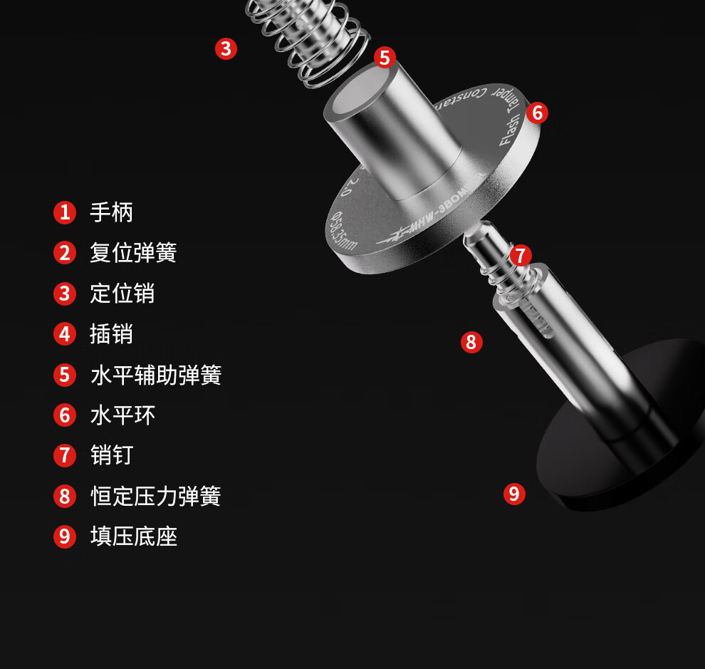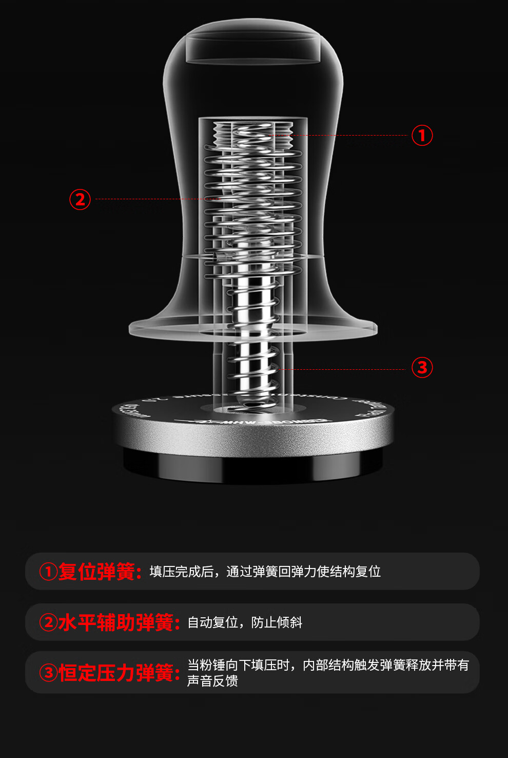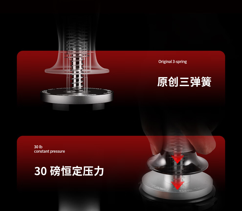 MHW-3BOMBER Bomber Streamer Powder Hammer Italian Coffee Powder Press 30 lbs. Constant Force Pressing Powder Hammer Three Spring Horizontal Constant Design Streamer Series-Set C