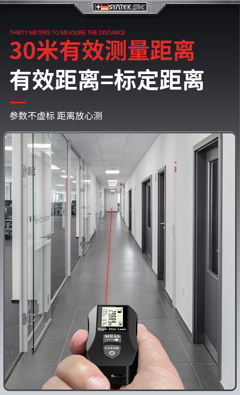 SYNTEK laser range finder electronic ruler infrared measuring instrument handheld high-precision measuring room instrument small distance measuring instrument mini trumpet laser range finder 30 meters laser