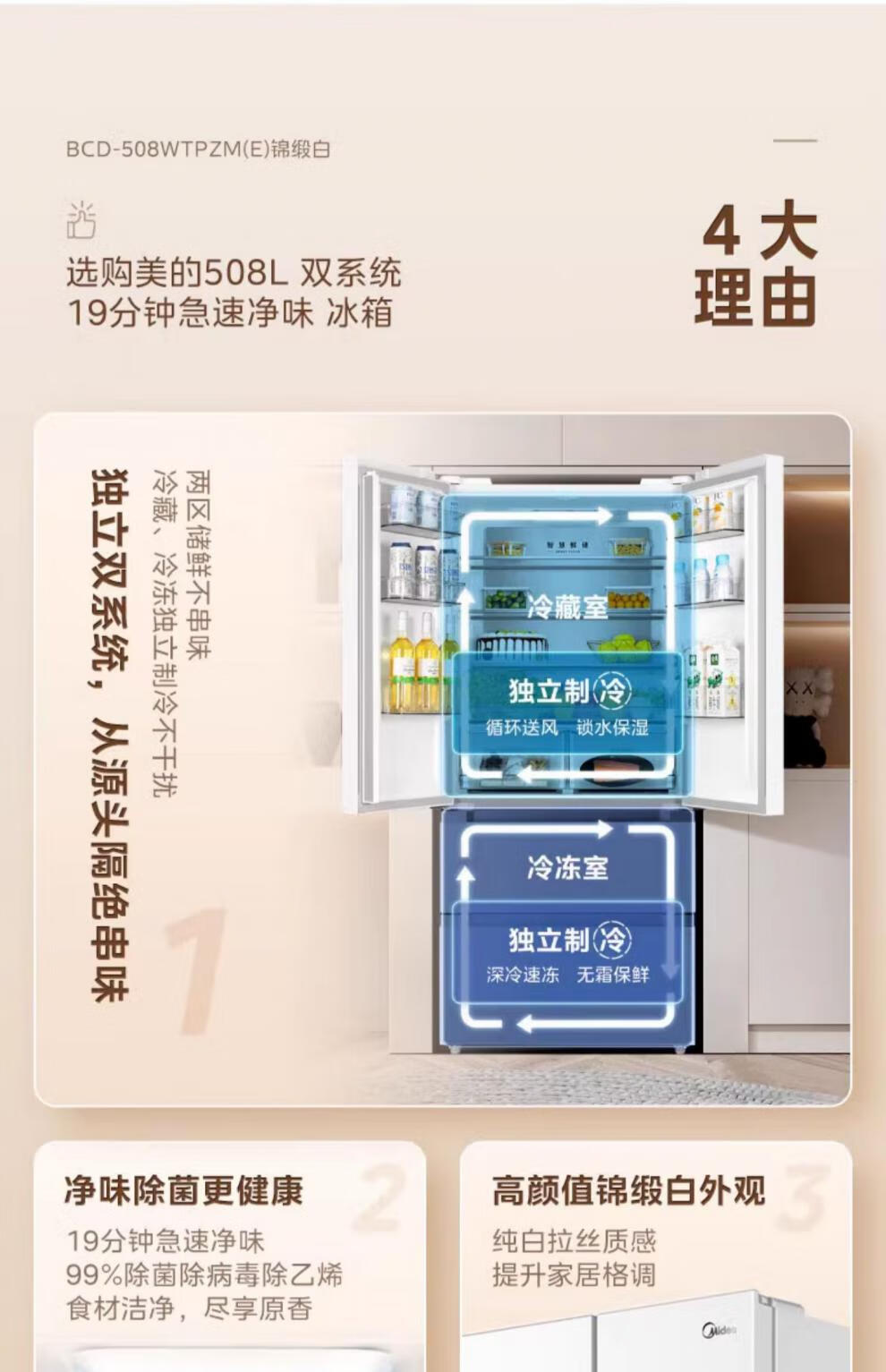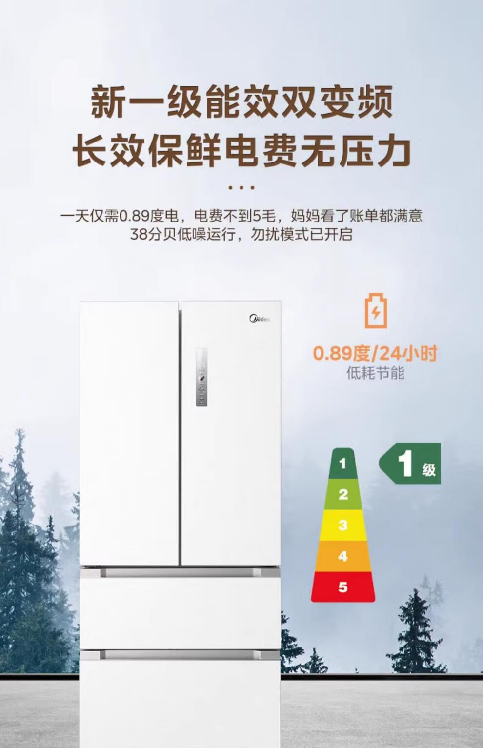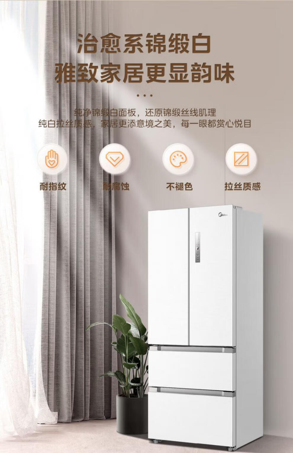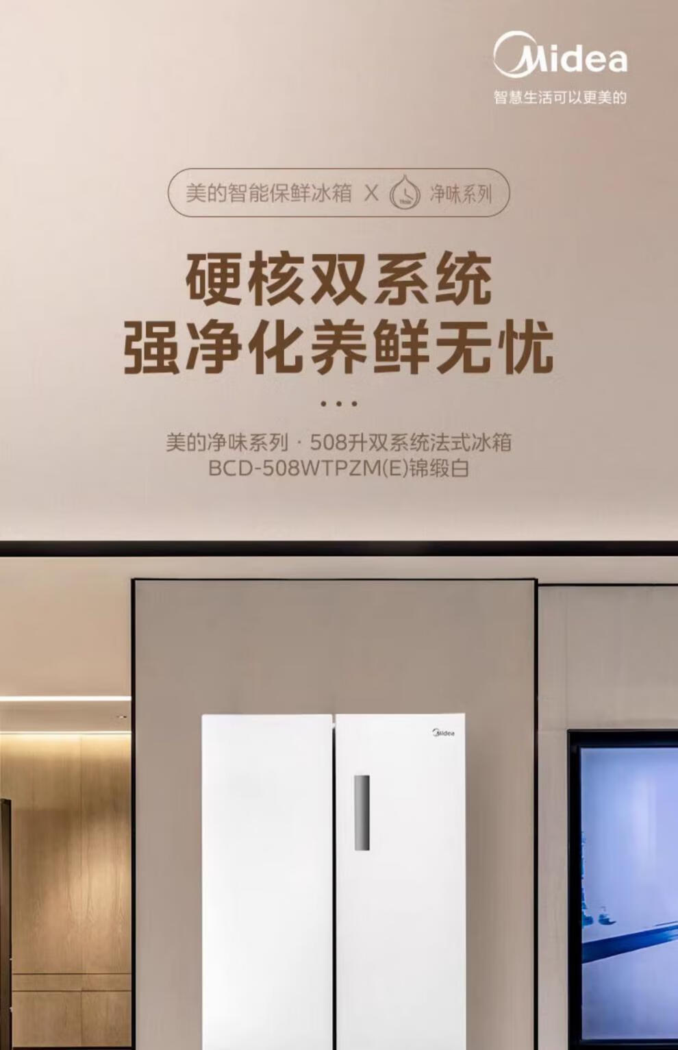 Midea Midea 508L white French double-door multi-door household refrigerator sterilization and odor dual quality tail goods white 508L | dual refrigeration | PST + active odor purification