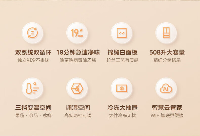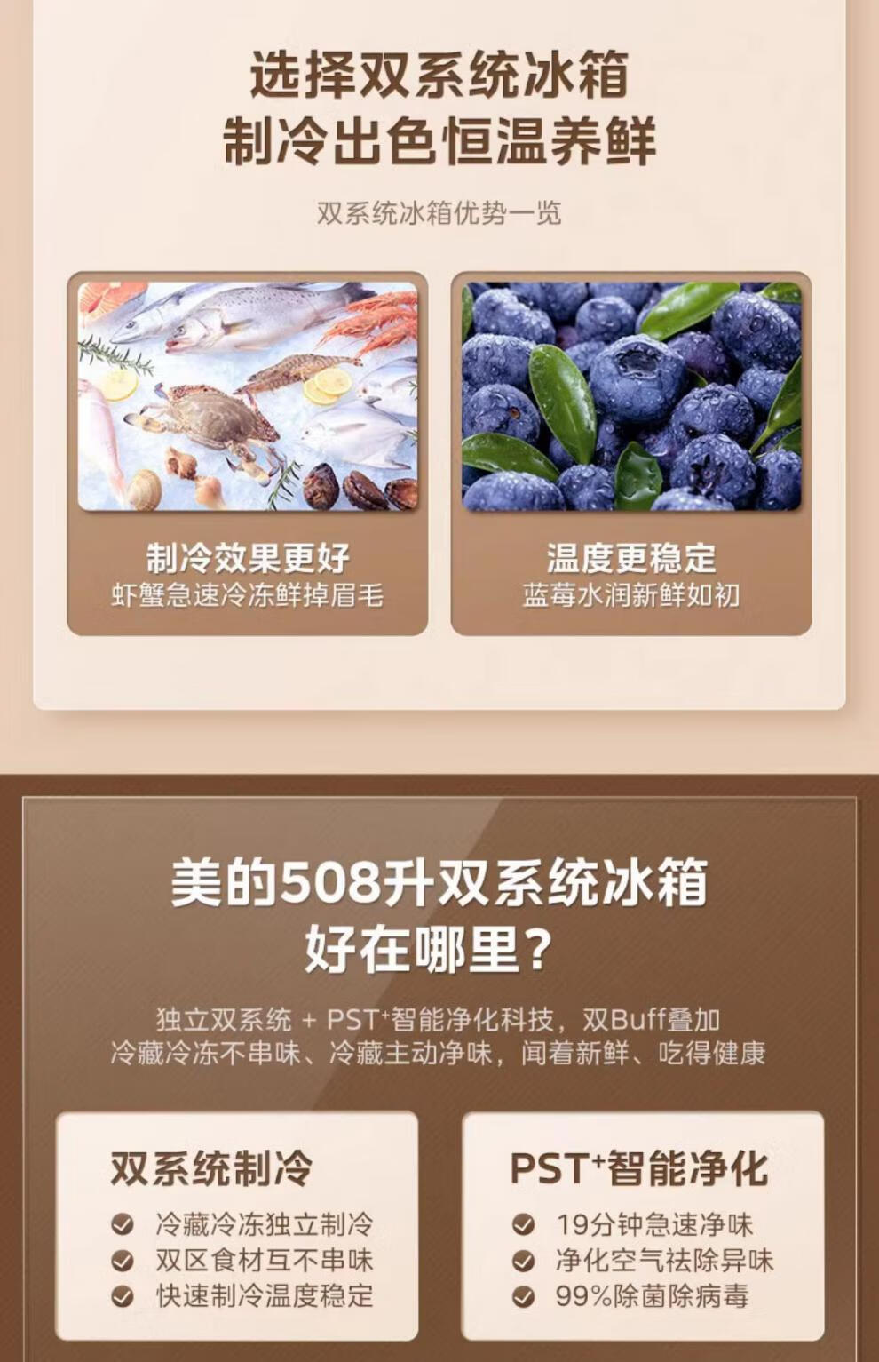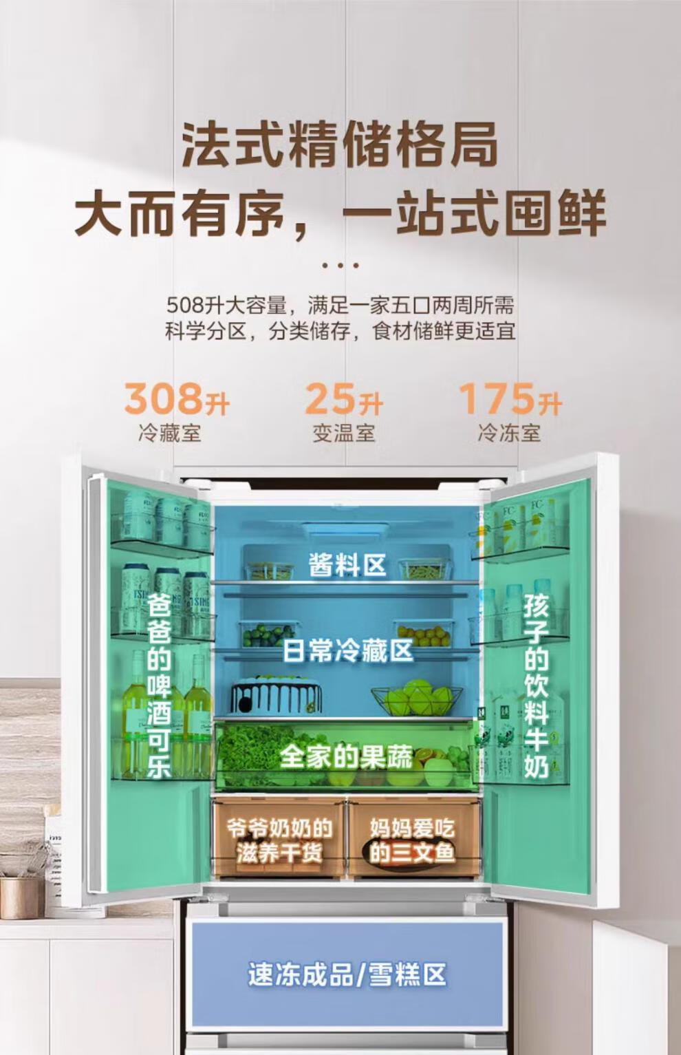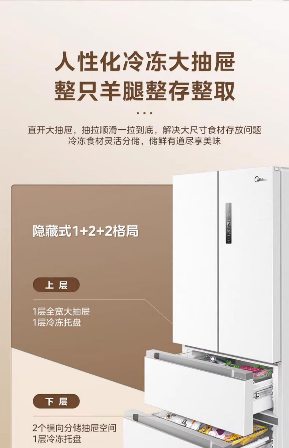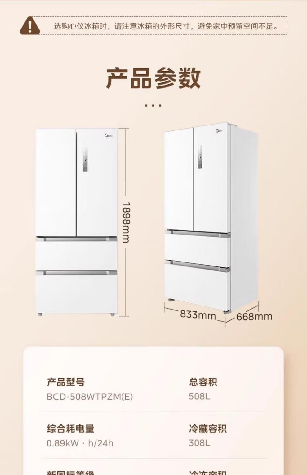 Midea Midea 508L white French double-door multi-door household refrigerator sterilization and odor dual quality tail goods white 508L | dual refrigeration | PST + active odor purification