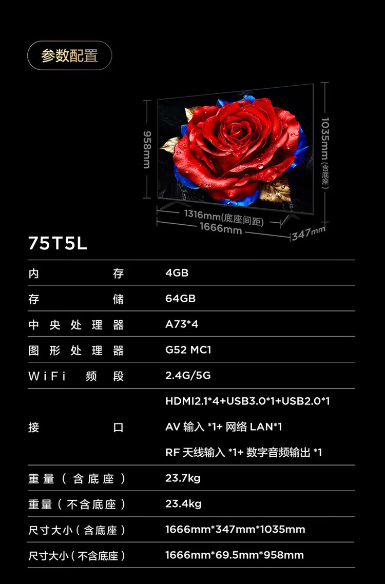 TCL TV 75T5L 75-inch 288Hz high refresh QLED quantum dot deepseek AI TV ultra-thin HD flat-panel TV trade-in government subsidy 75-inch standard version standard base