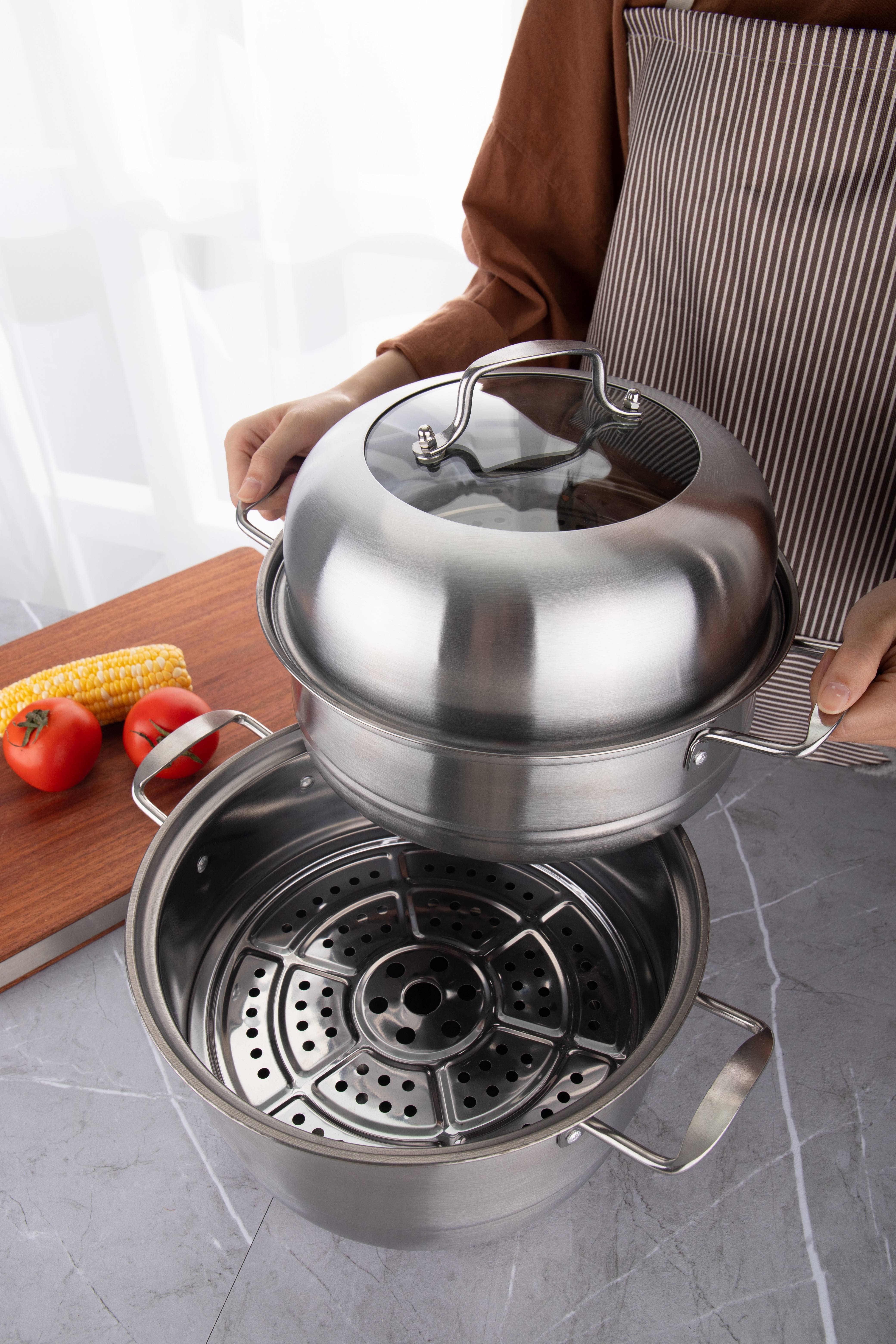 Thickened stainless steel steamer household multi-layer steamer stew steamer steamer fish pot steamed buns induction cooker gas stove special thickened soup steamer three layers 28cm