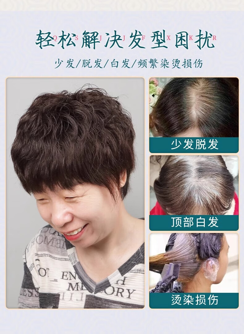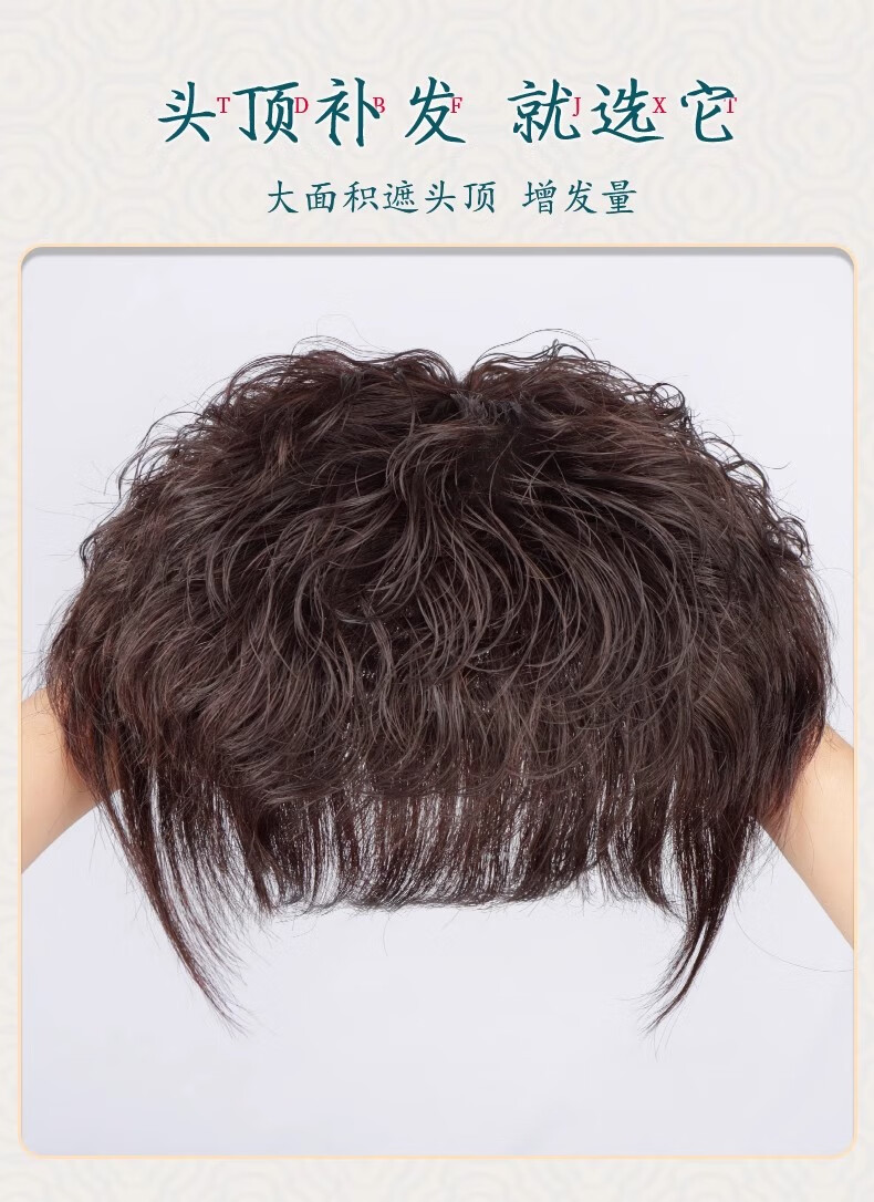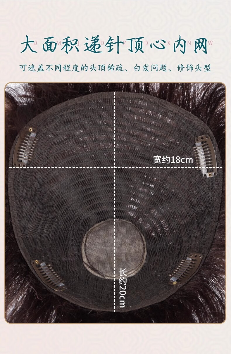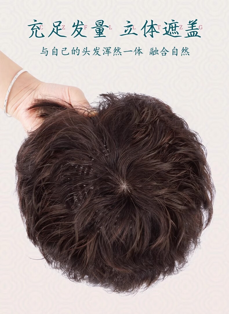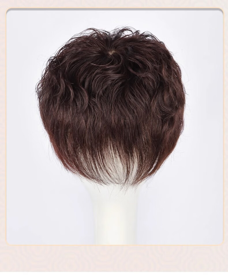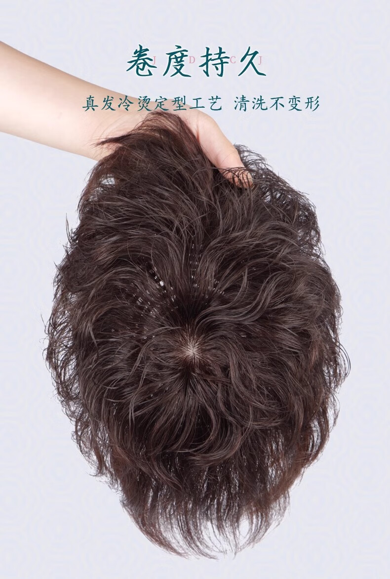 Wig piece for women with real hair on the top of their head, full real hair, middle-aged and elderly ladies, moms and girls with short hair to cover white hair, natural curly hair, hand-twisted hair, textured perm 18*20, dark brown