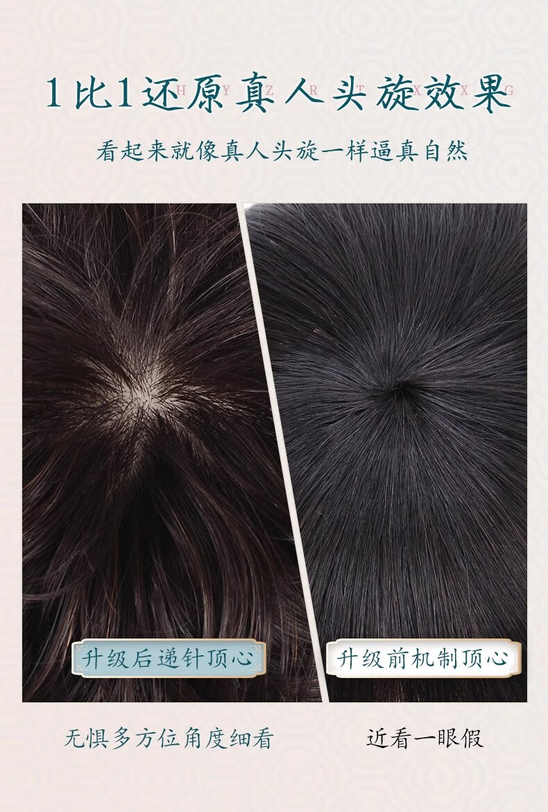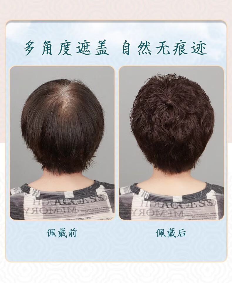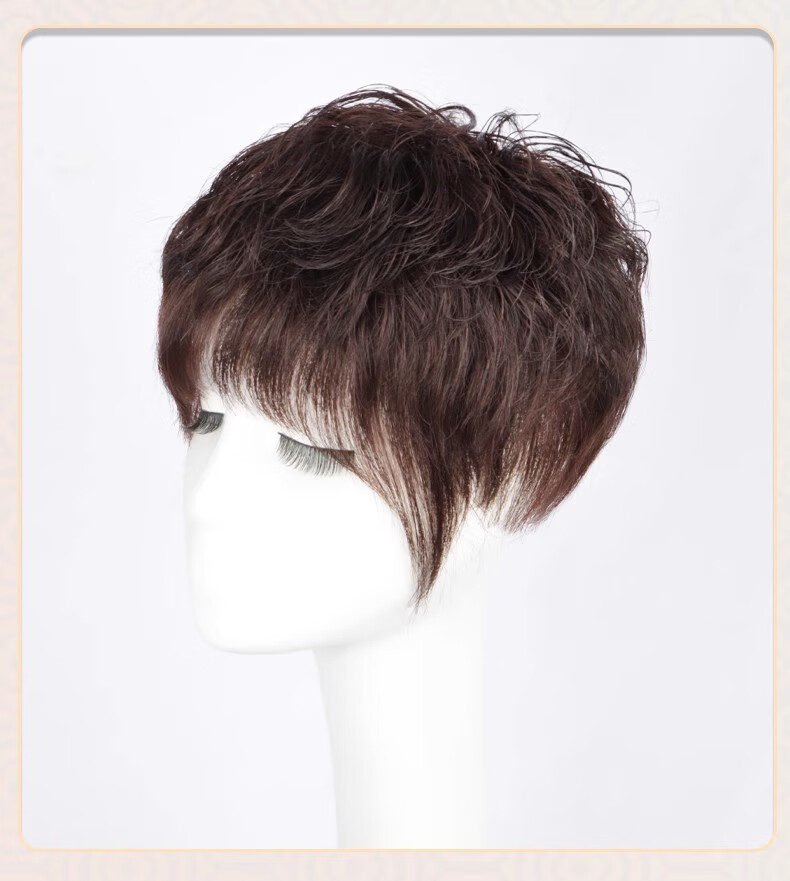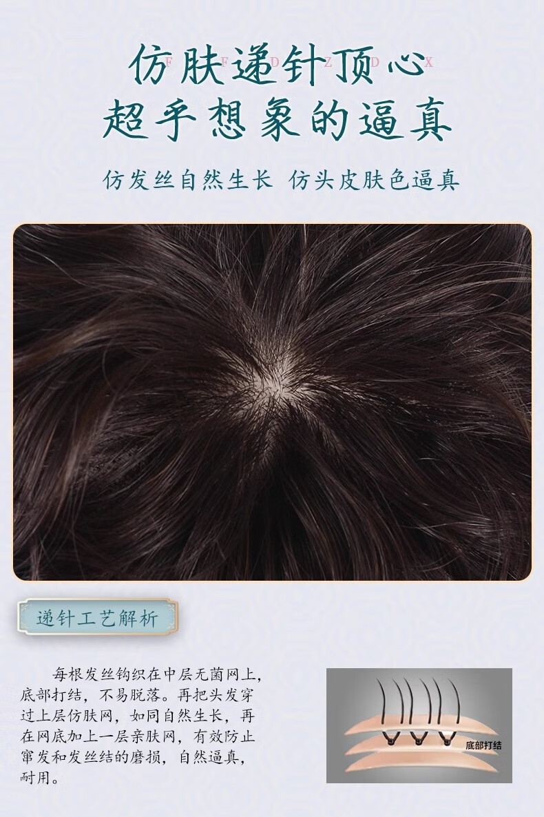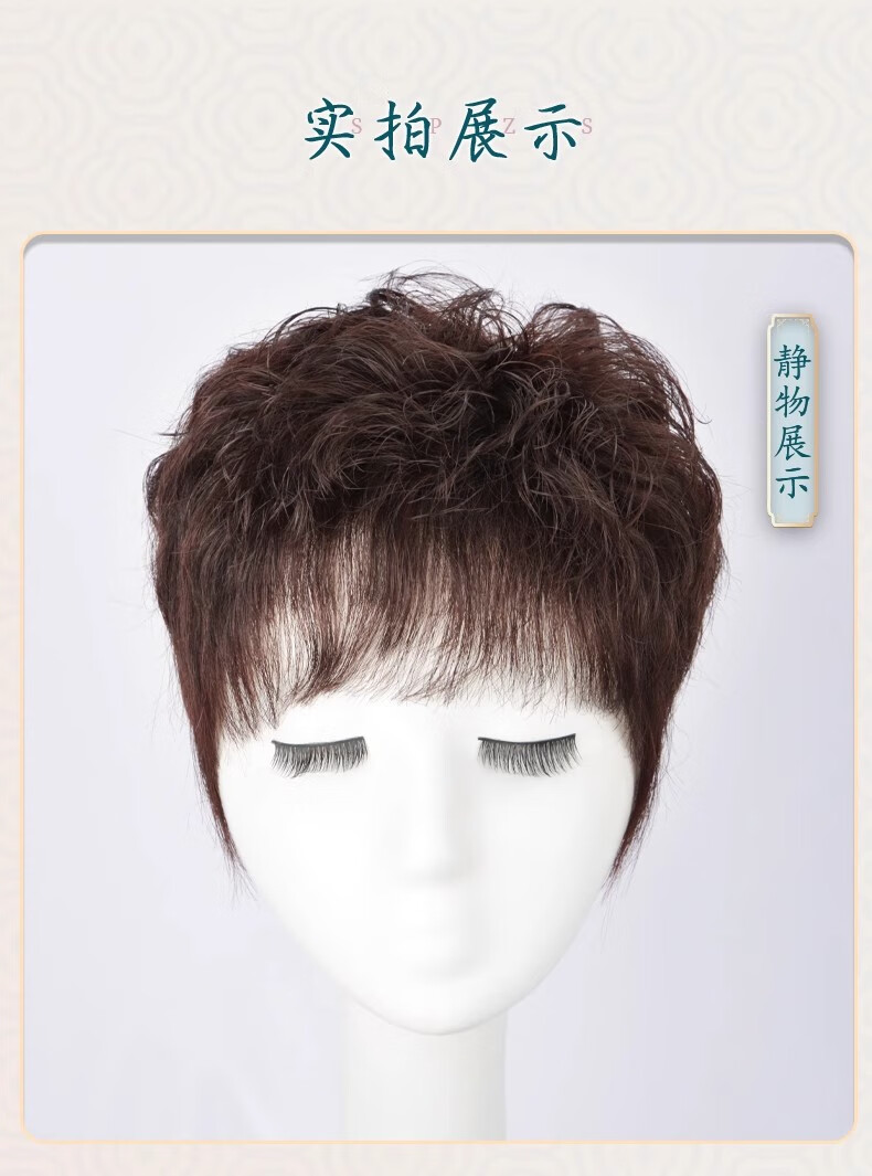 Wig piece for women with real hair on the top of their head, full real hair, middle-aged and elderly ladies, moms and girls with short hair to cover white hair, natural curly hair, hand-twisted hair, textured perm 18*20, dark brown