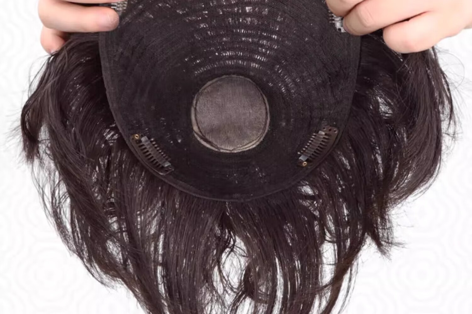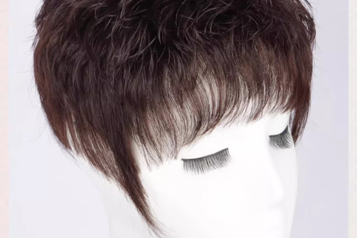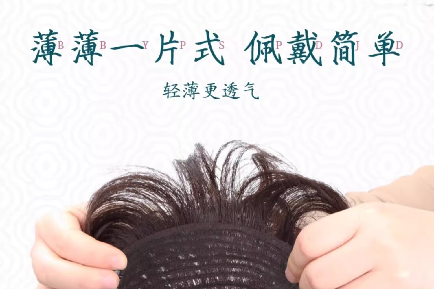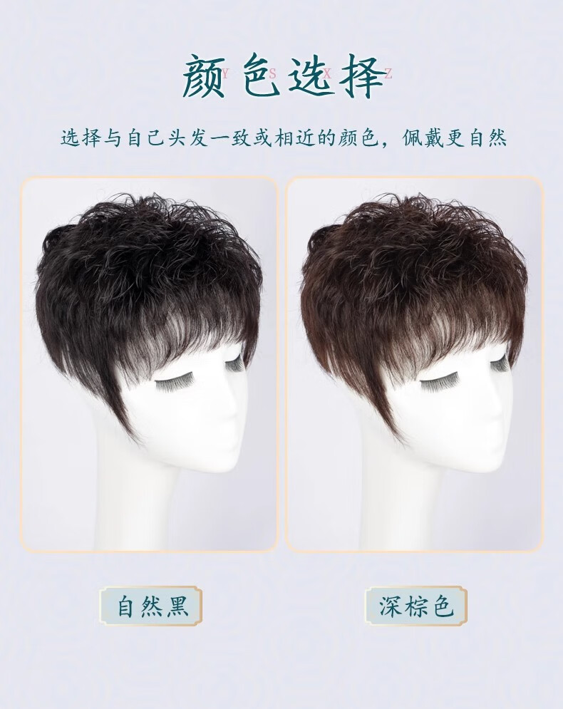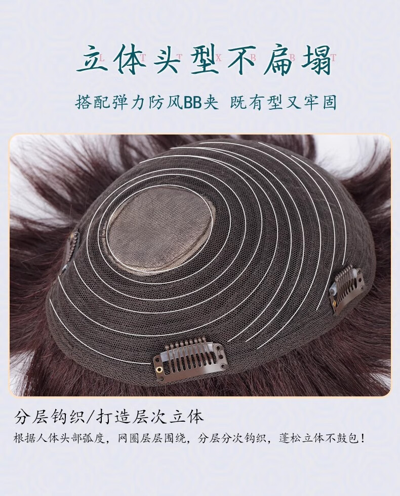 Wig piece for women with real hair on the top of their head, full real hair, middle-aged and elderly ladies, moms and girls with short hair to cover white hair, natural curly hair, hand-twisted hair, textured perm 18*20, dark brown