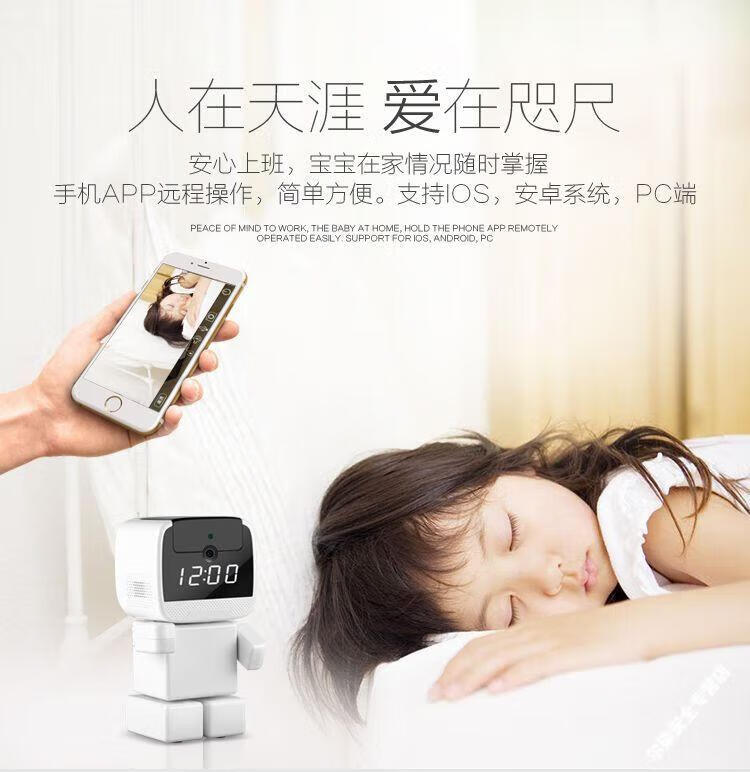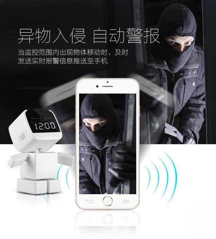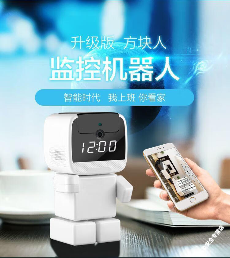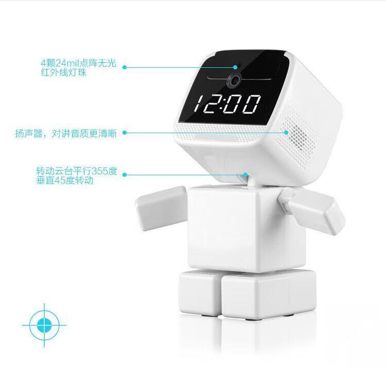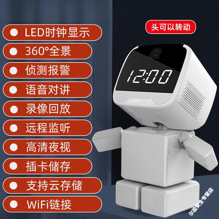 Camouflage camera bedside built-in desktop ornaments monitoring robot ornaments built-in battery wifi remote with clock LED clock display Square Man Rechargeable 5MP+ no memory