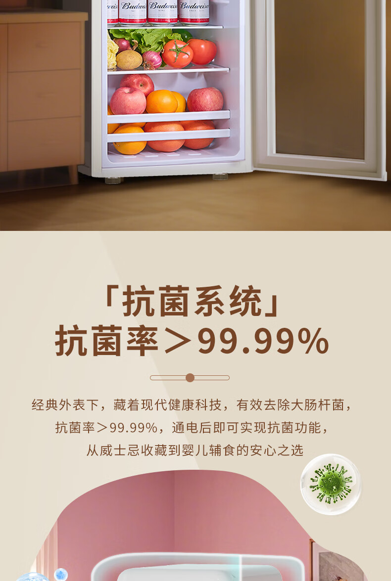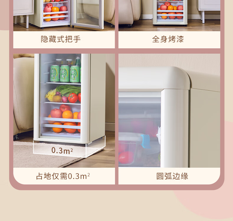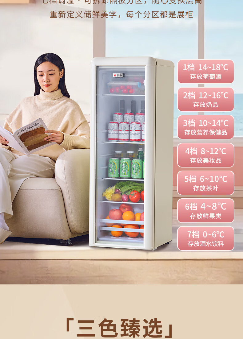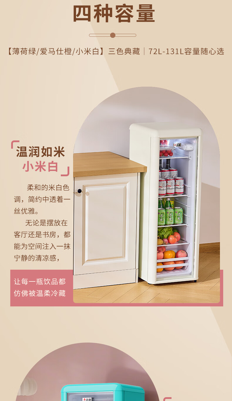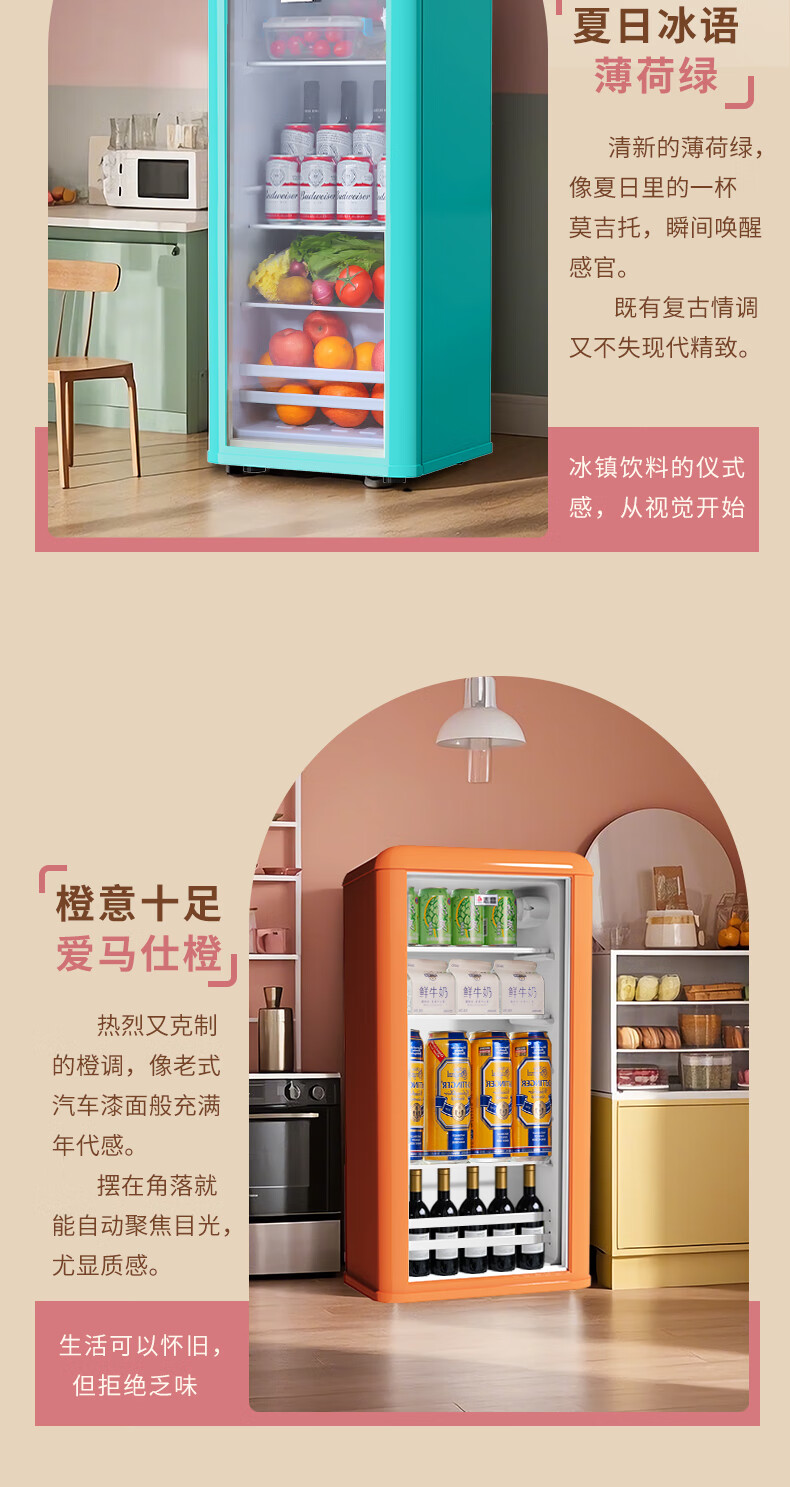 CHIGO Ice Bar Internet celebrity Meng Meng Bar household small retro refrigerator living room office mini transparent refrigerator beverage wine cabinet high-looking tea preservation Hermes Orange Meng Meng Bar (72L | fully refrigerated) first-class energy efficiency