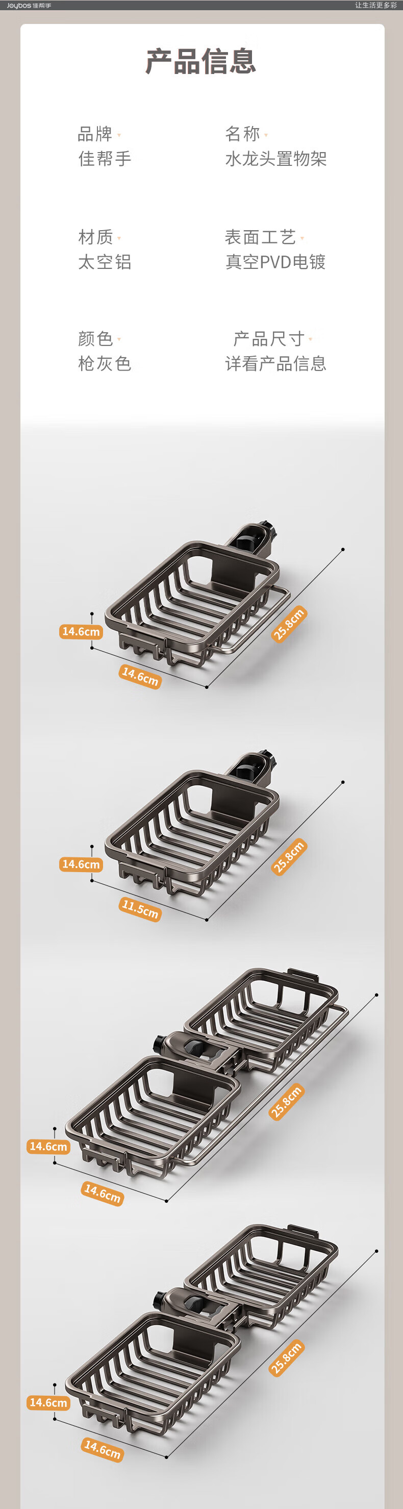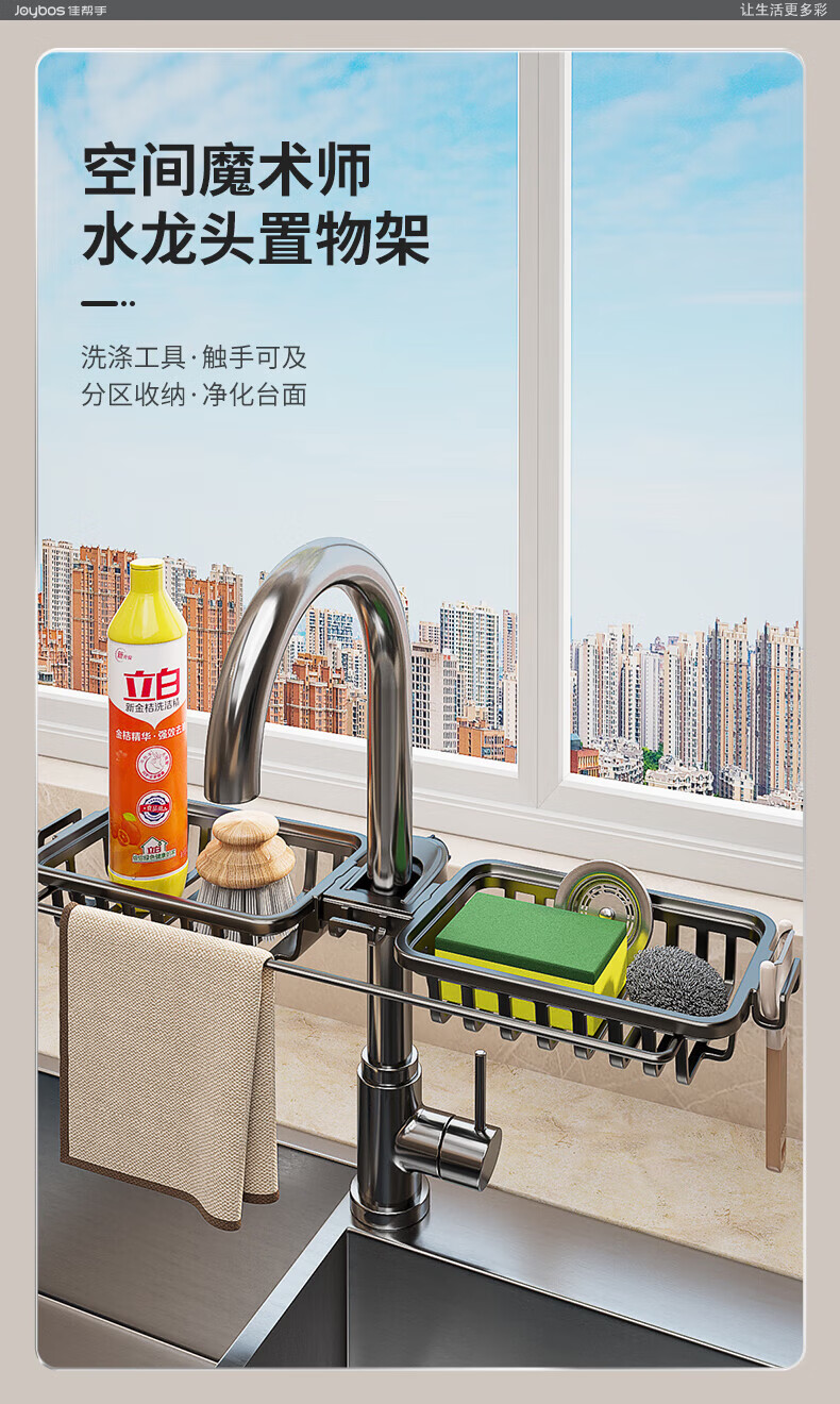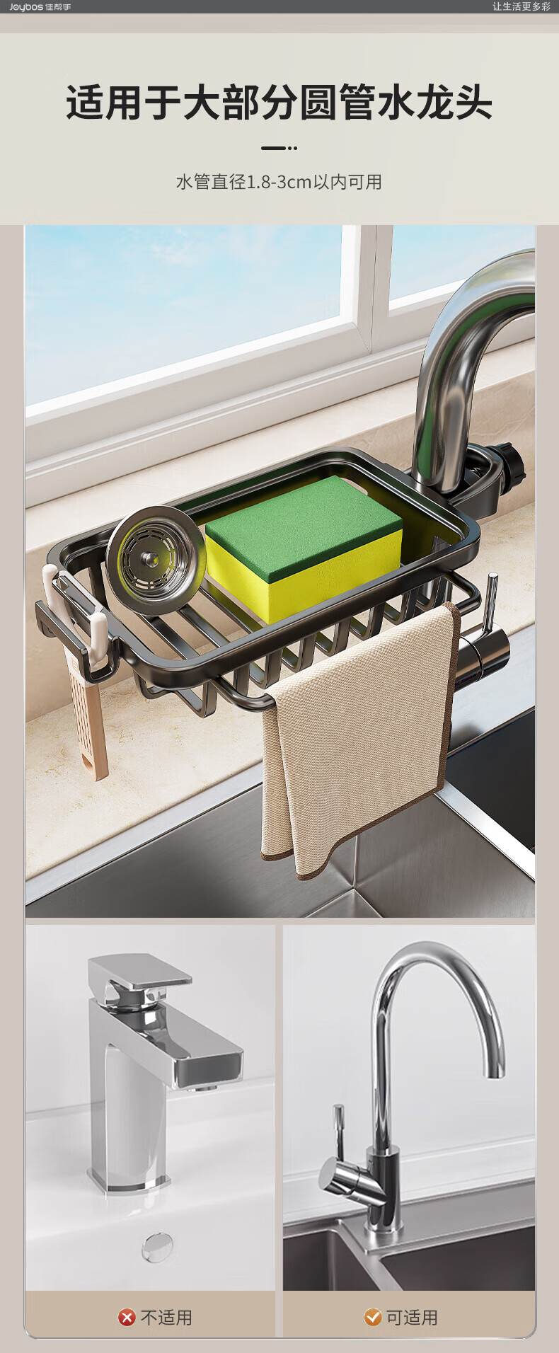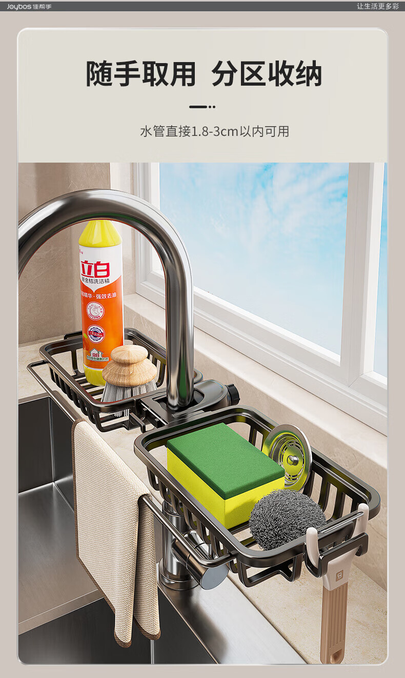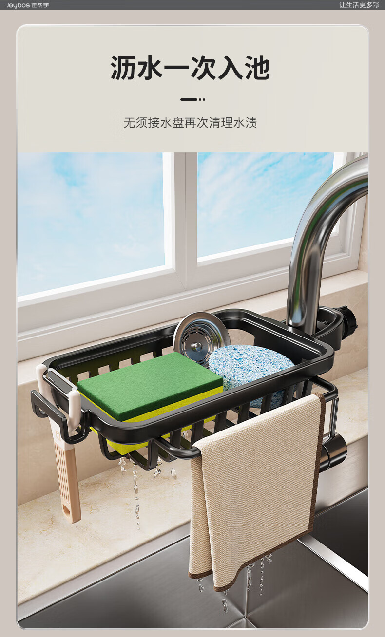Best helper kitchen faucet rack sink dishwashing dishwashing pool rag steel ball sponge storage drain basket left single side with rod space aluminum one-piece die-cast water