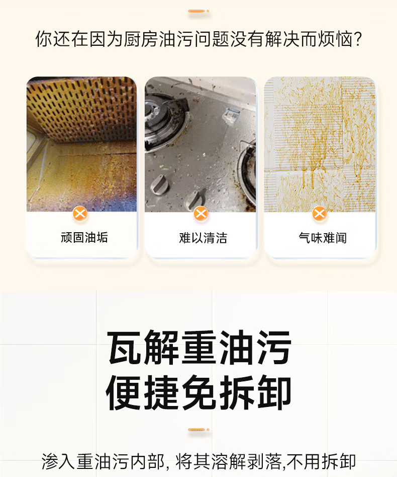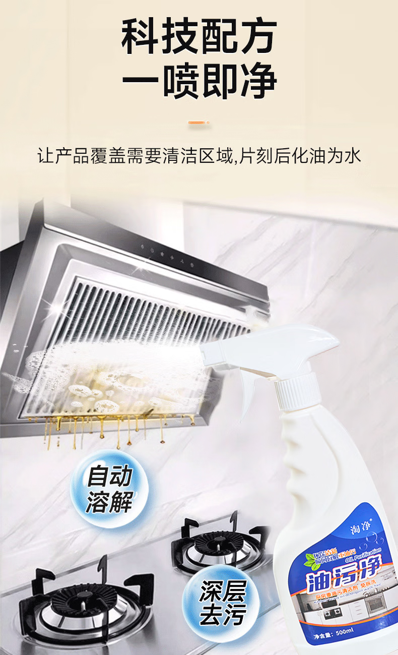 Oil stain kitchen degreasing powerful cleaning agent range hood cleaning and heavy oil stain artifact pot bottom foam version two bottles