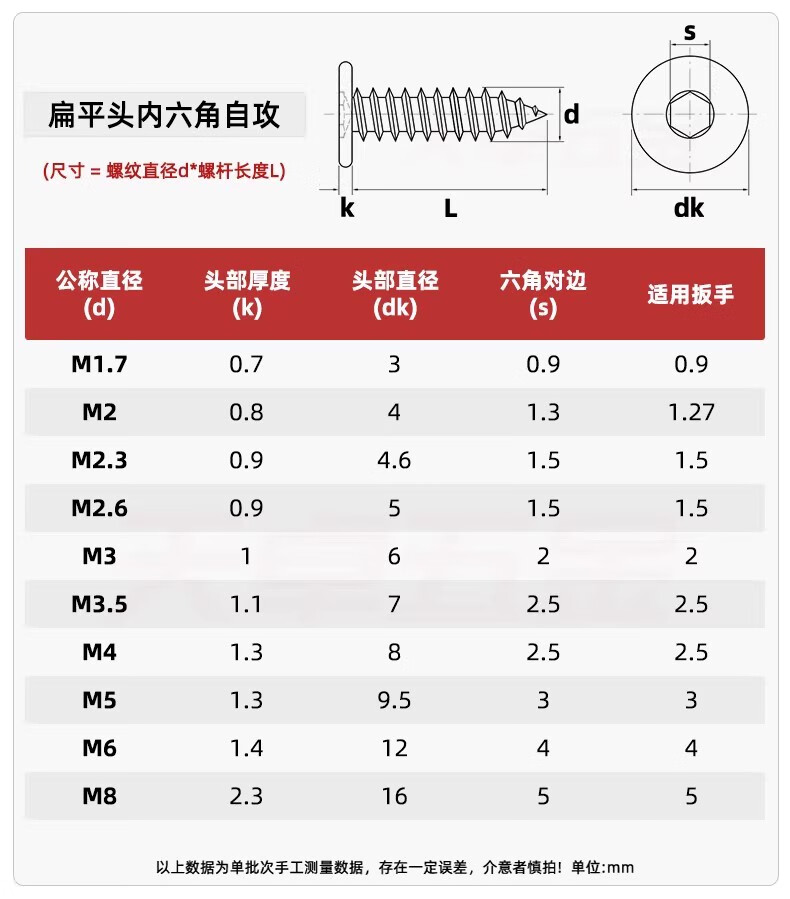 Tianzhuo Hardware black 304 stainless steel flat head hexagonal self-tapping screws large flat head ultra-thin head screws round head self-tapping screws black 304-M4*16 50 pcs