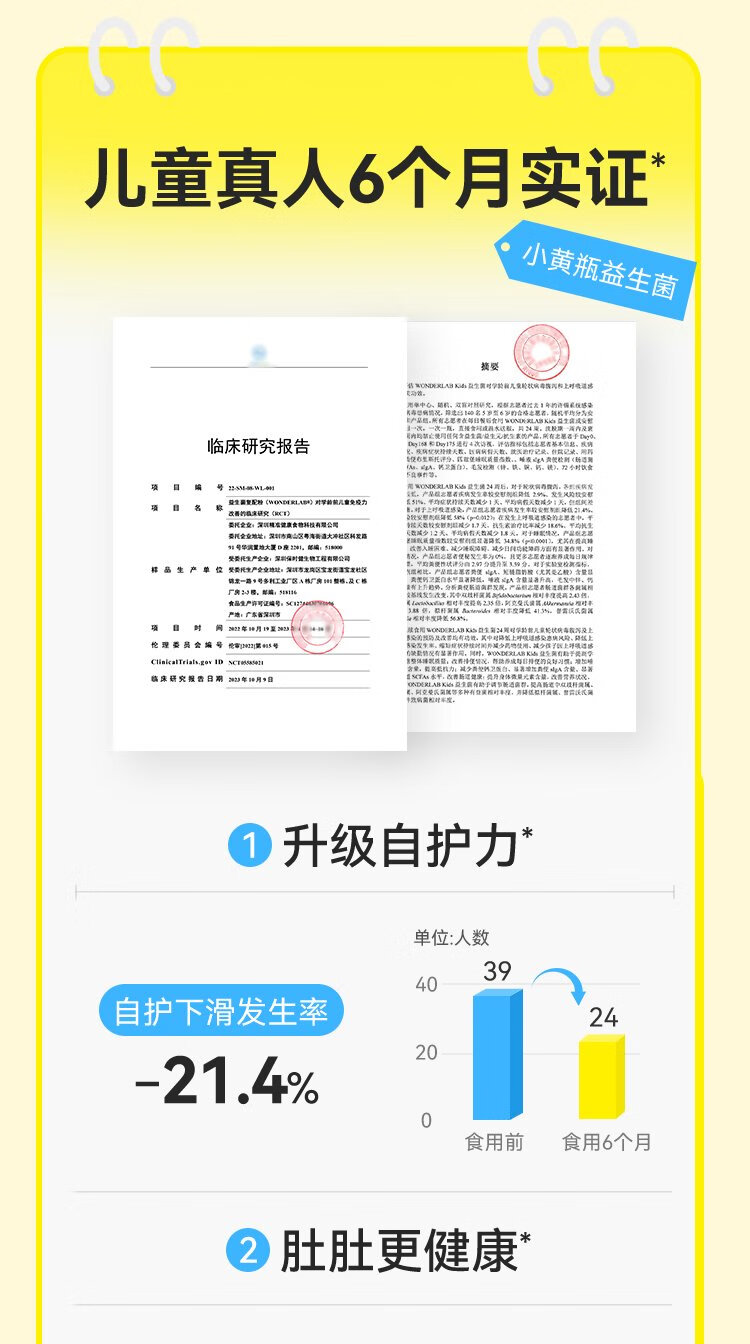 WonderLab Children's Probiotics, Small Yellow Bottle Probiotics, Lactobacilli, Children's Probiotics, scratch code delivery, 2g*10 bottles/box
