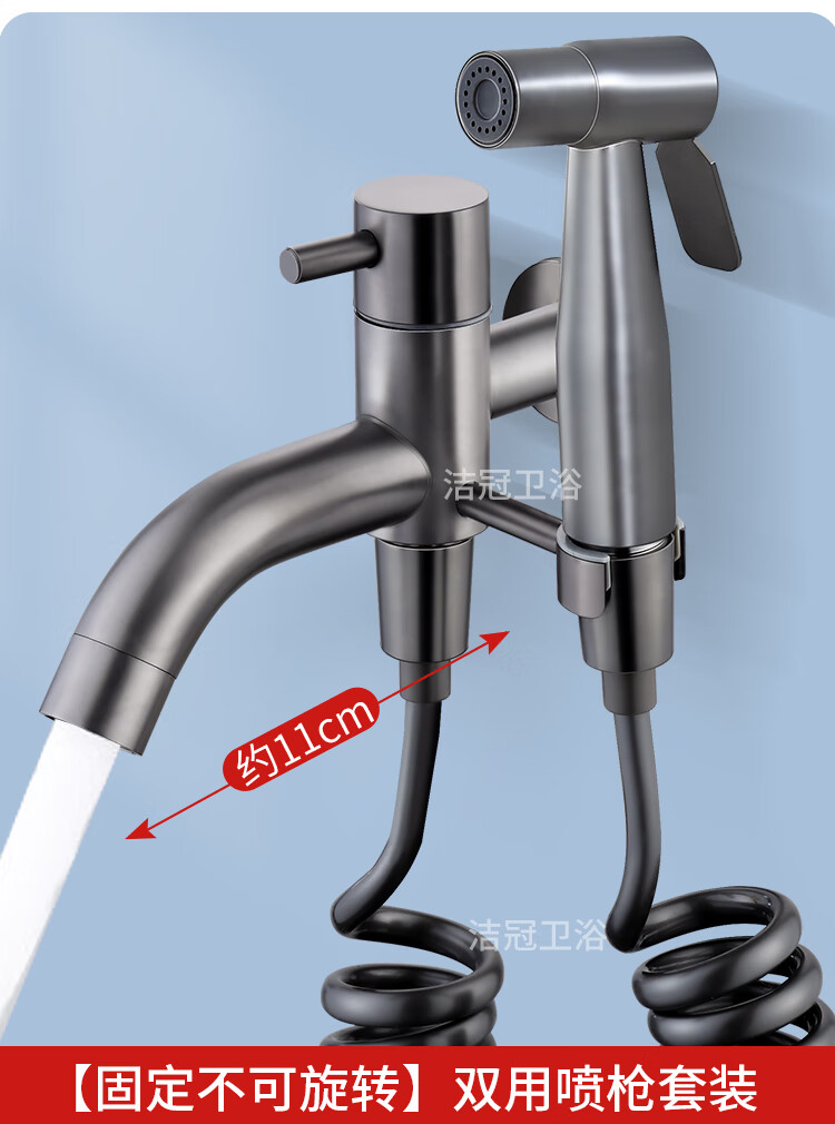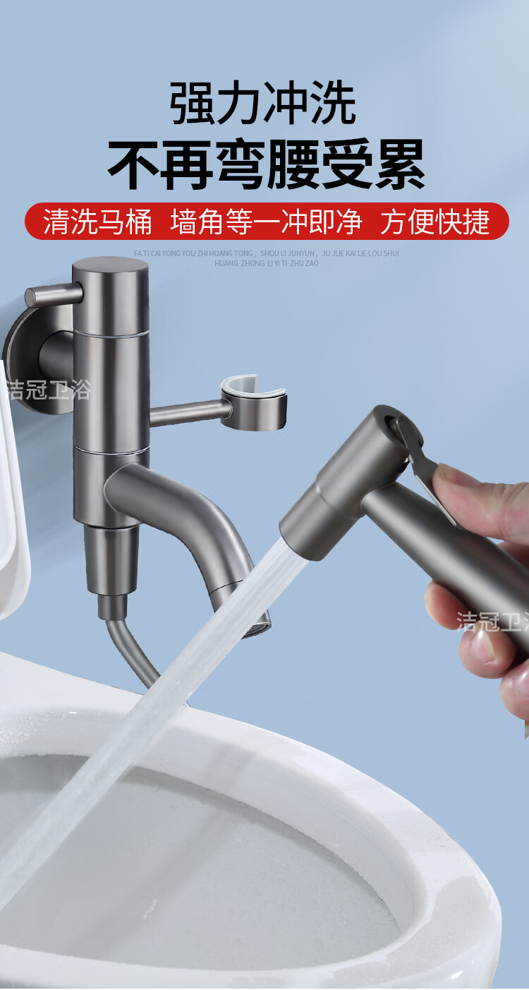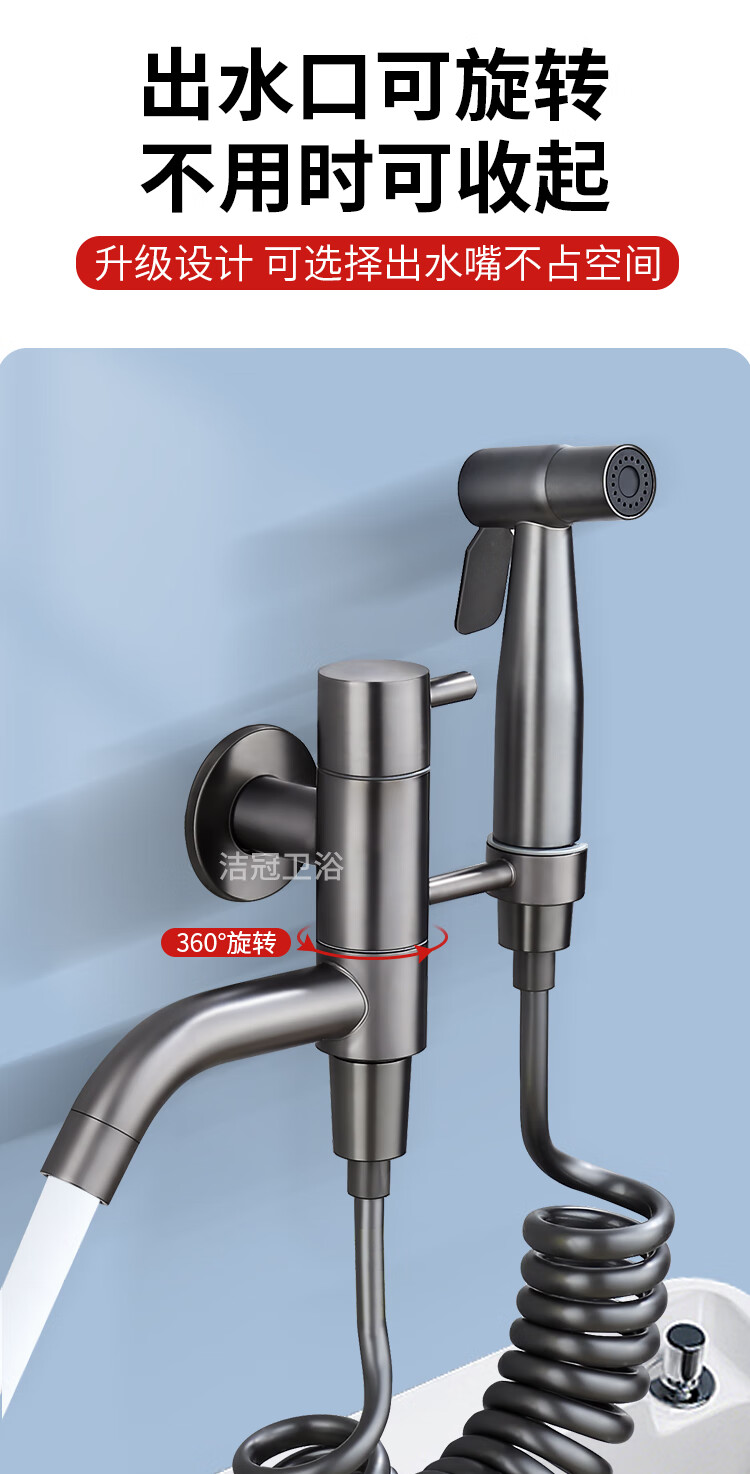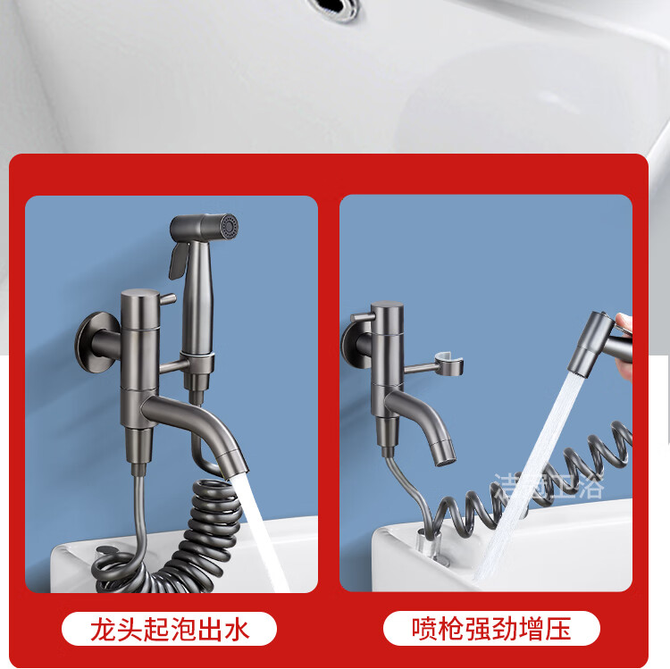 Jieguan bathroom wall two-in-one wall one-in-two-out mop pool special faucet with spray gun balcony washing mop, the water outlet can be rotated, dual-use spray gun set