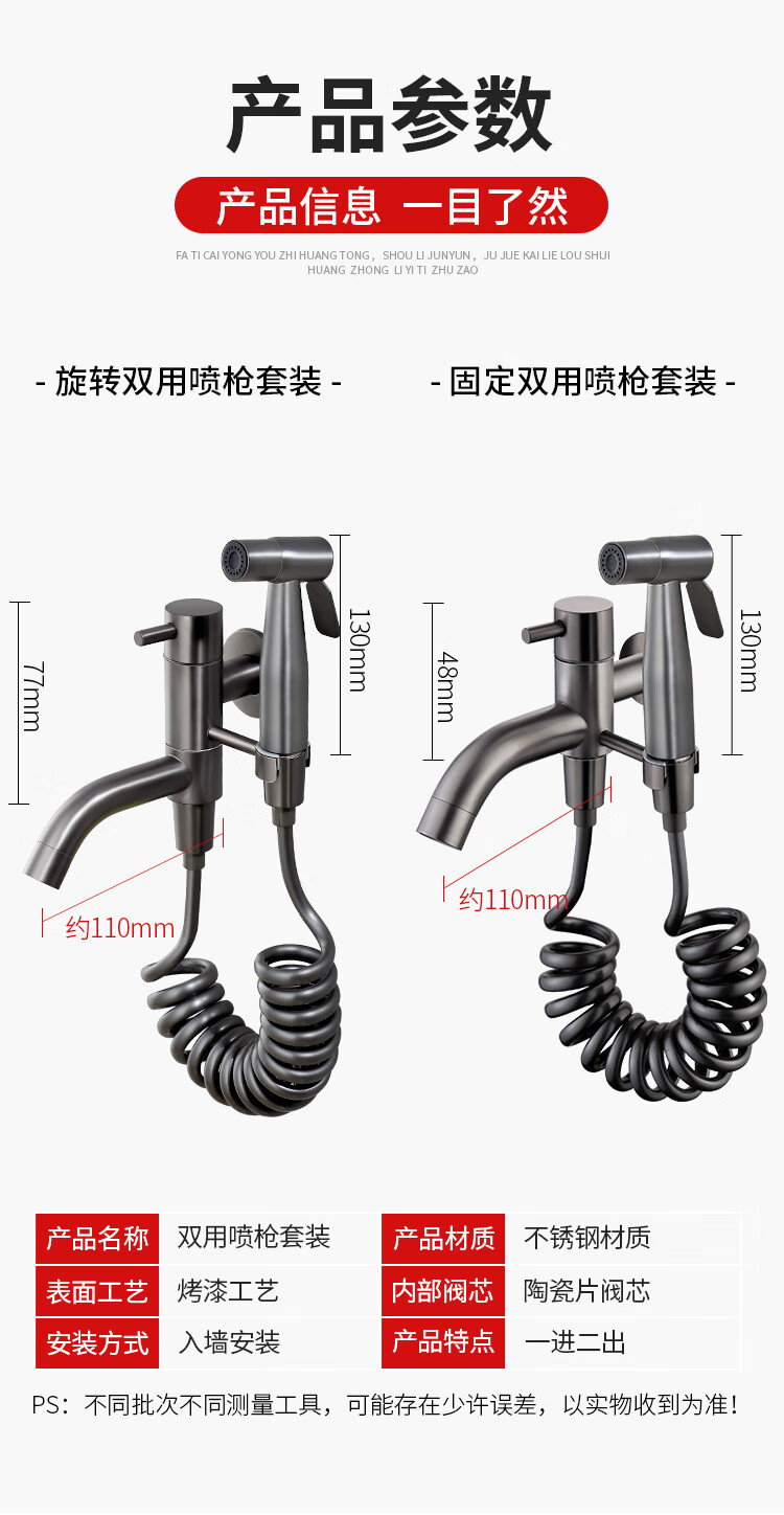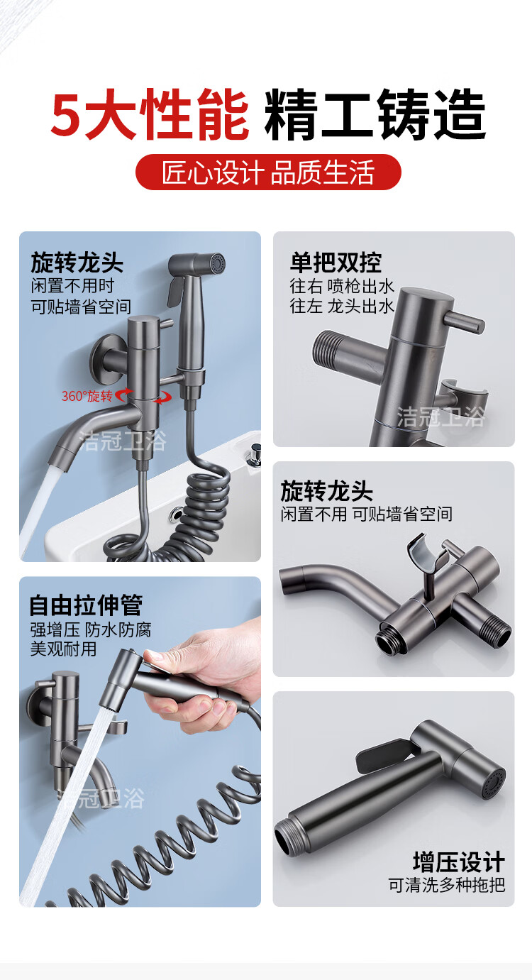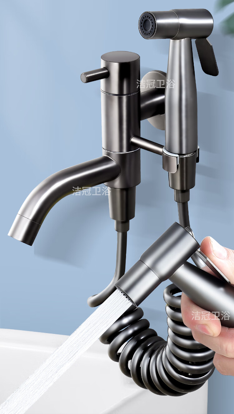 Jieguan bathroom wall two-in-one wall one-in-two-out mop pool special faucet with spray gun balcony washing mop, the water outlet can be rotated, dual-use spray gun set