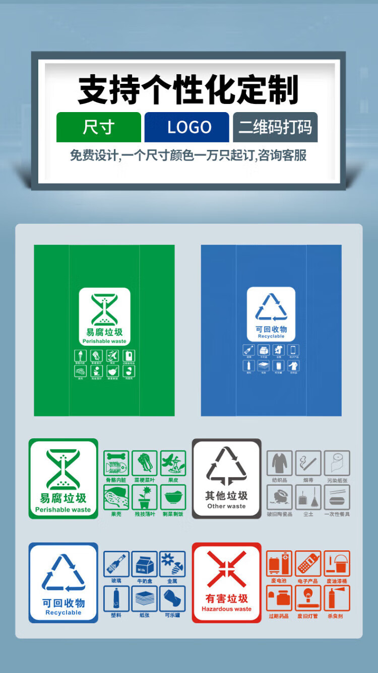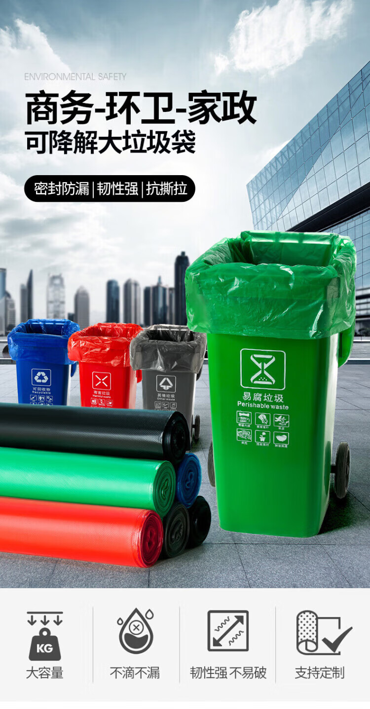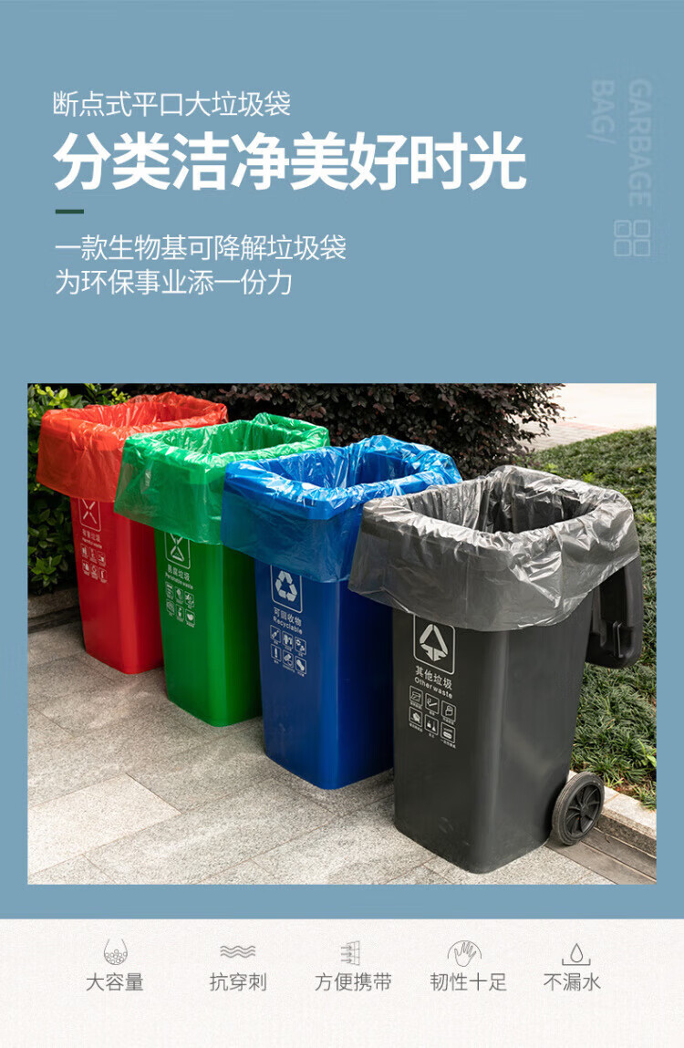 Biodegradable garbage classification large garbage bag large 60 sanitation extra large commercial kitchen waste bag thickened 90*110 gray 3 rolls 30 pieces