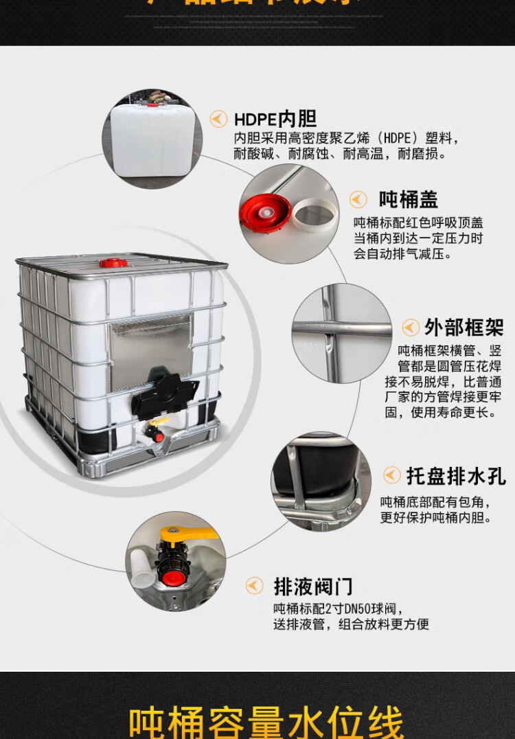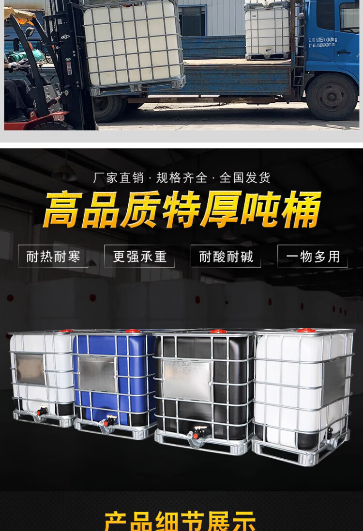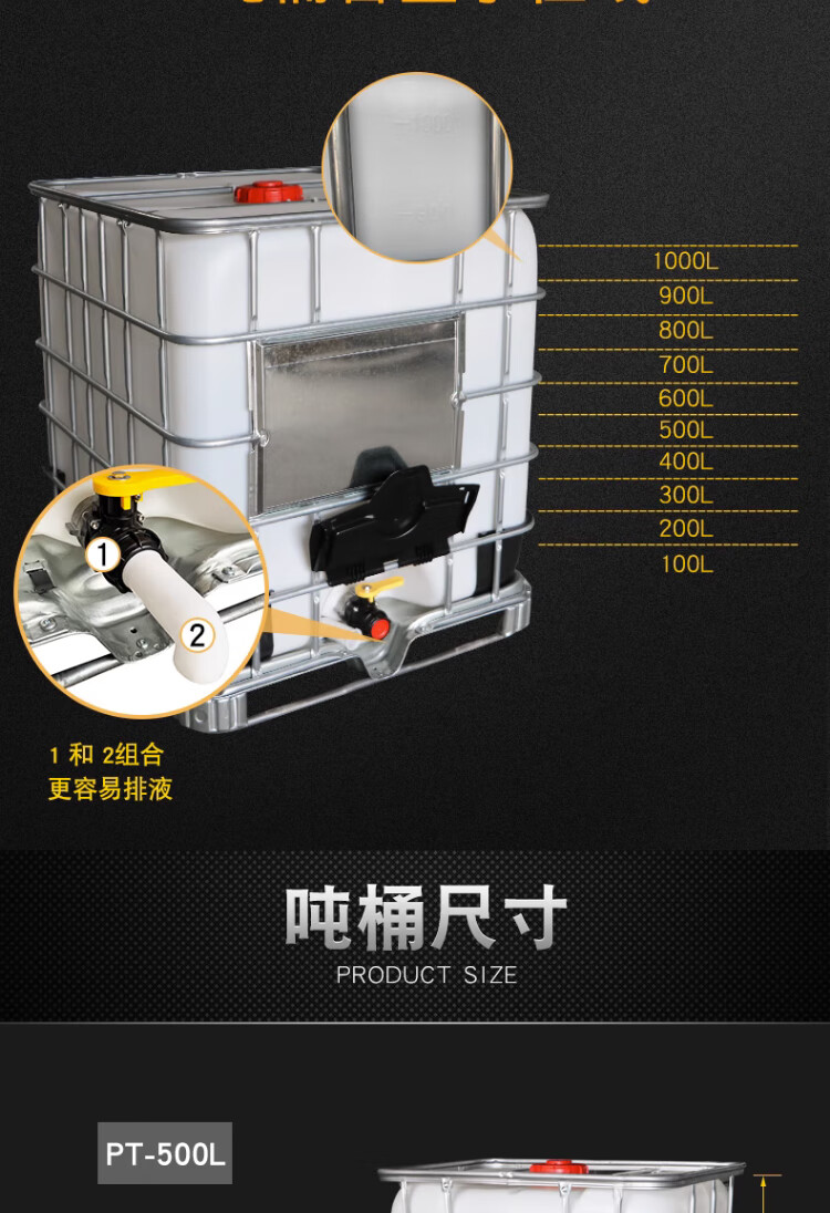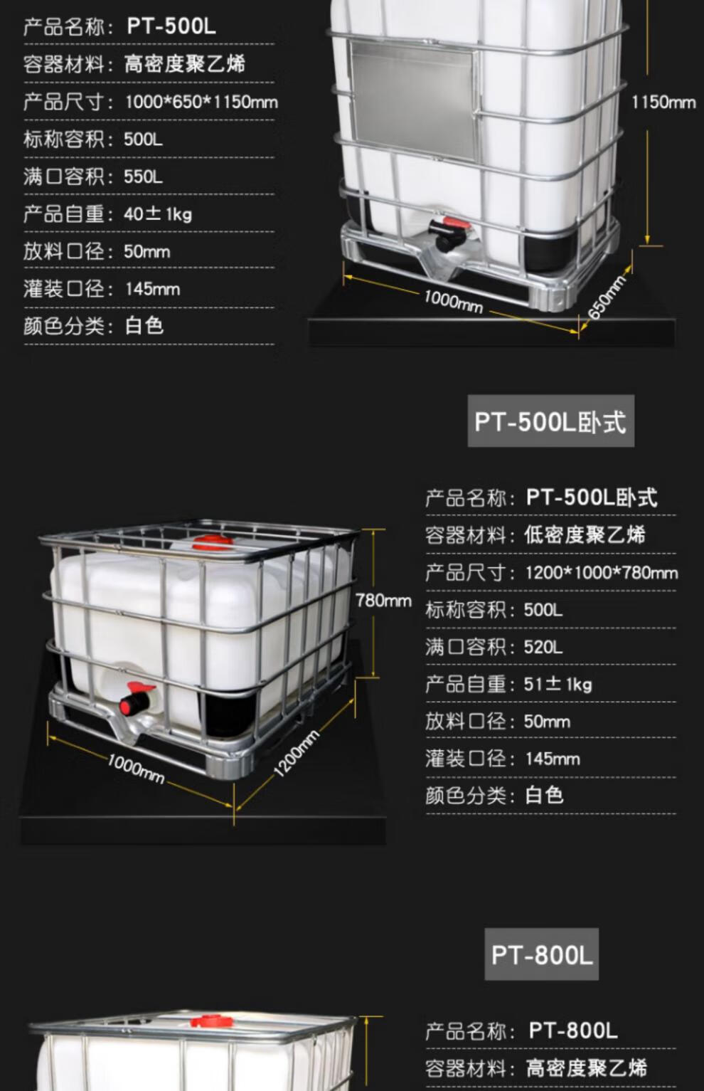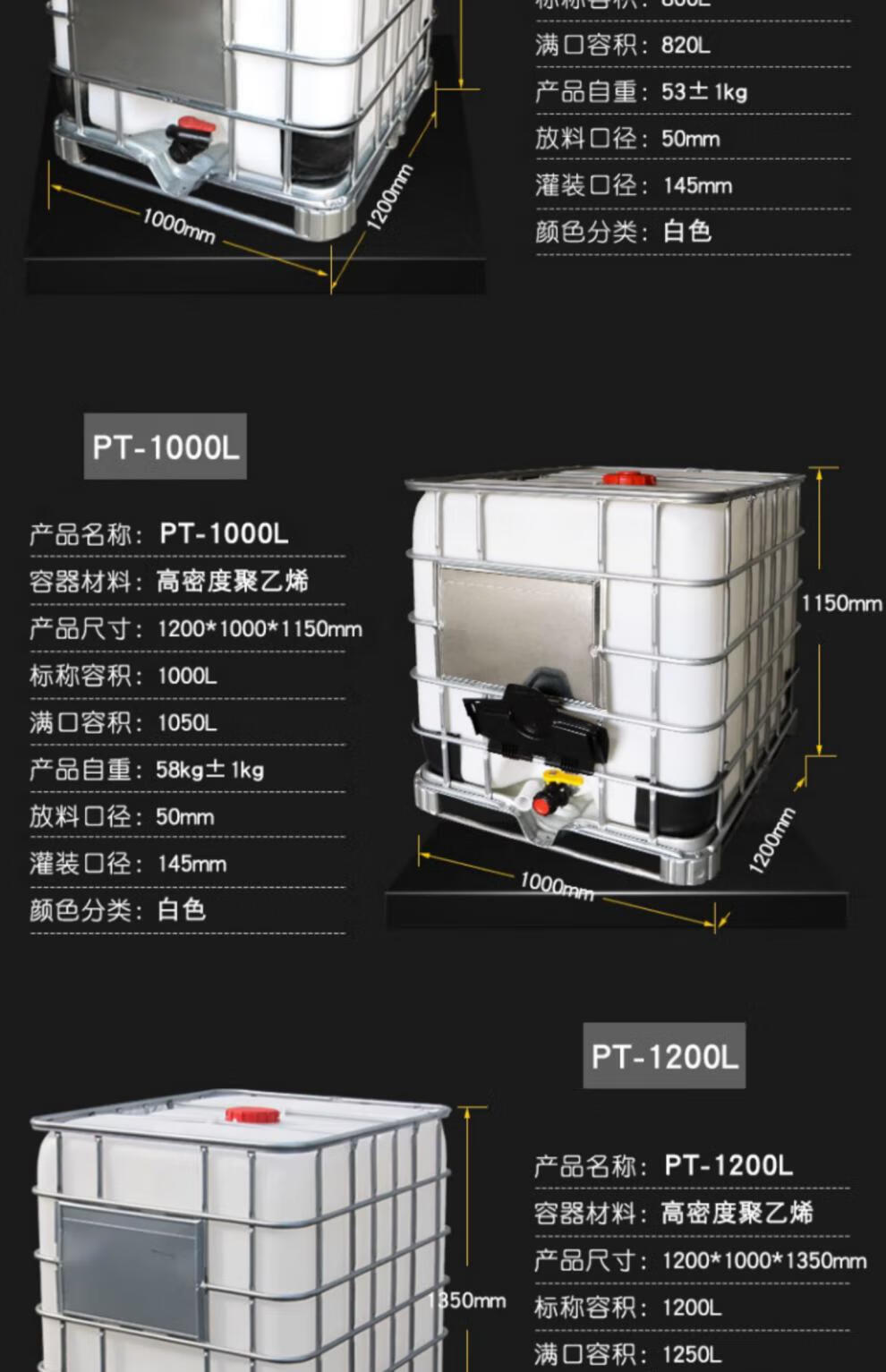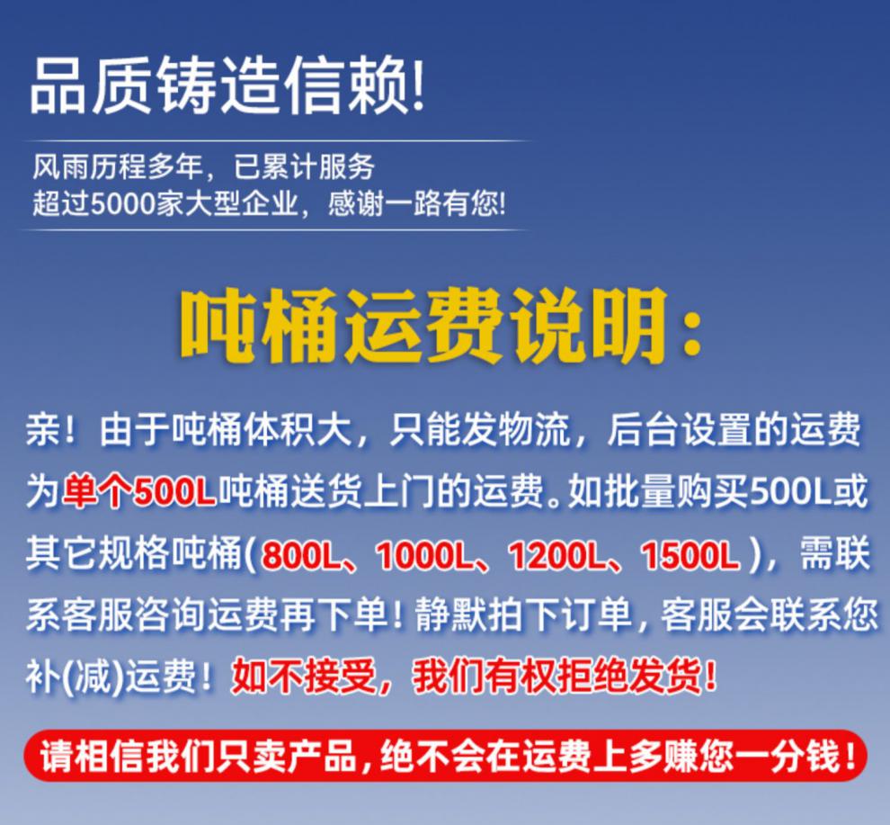 FHJQB explosion-proof ton plastic square 1000 liter 1 ton 500L counterweight water tank waste oil sewage collection diesel barrel ton box new 1000L white (standard model)