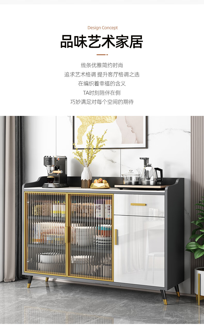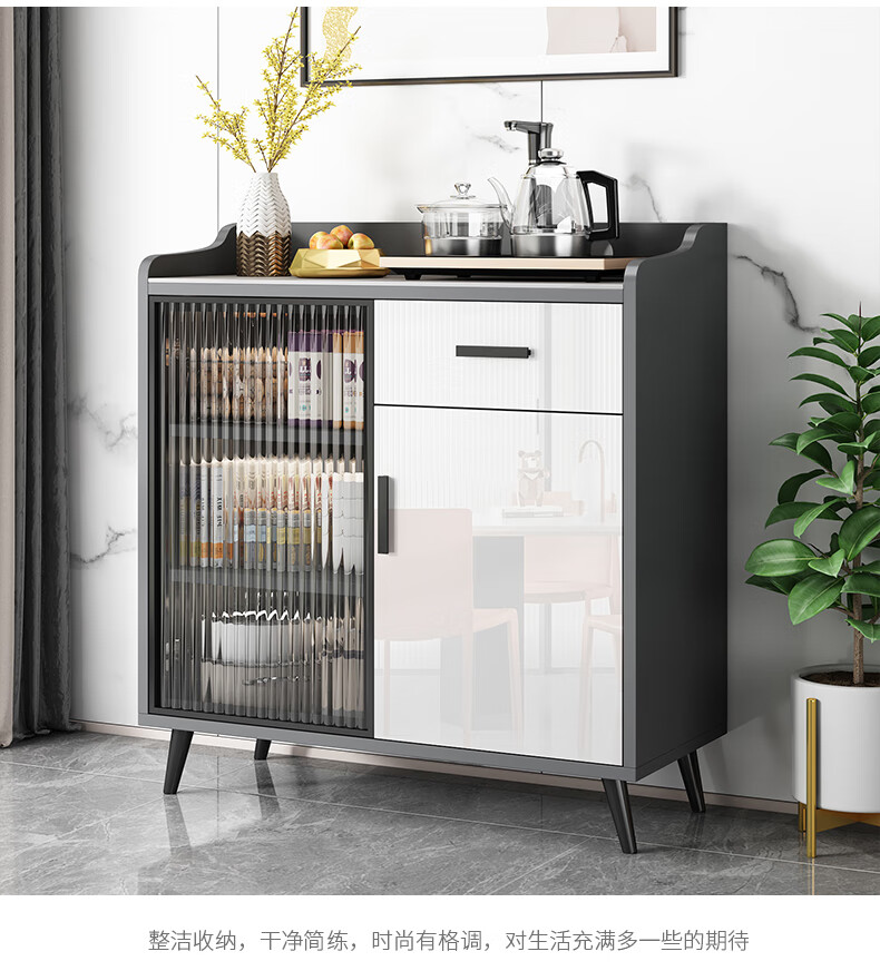 Weiwang slate sideboard modern minimalist living room small apartment storage storage glass door solid wood restaurant entrance tea cabinet Mani gray slate + glass length 68 width 32